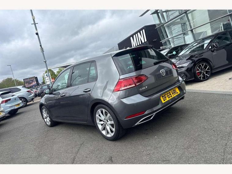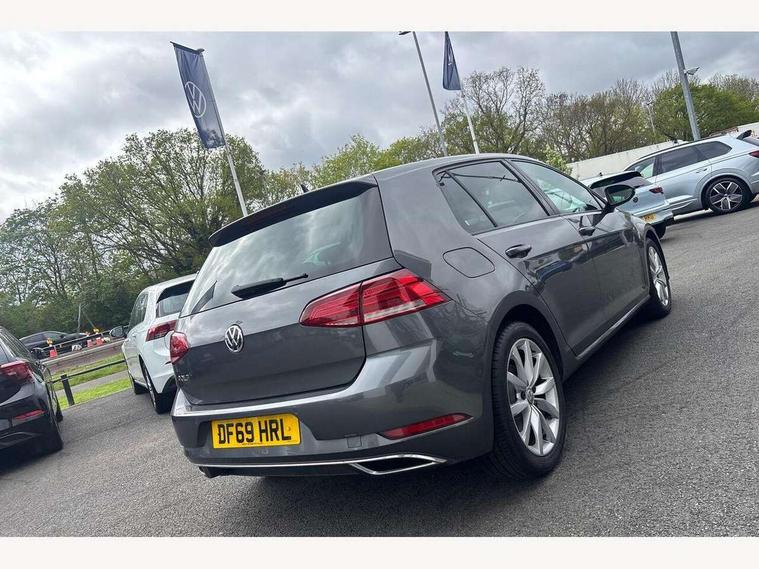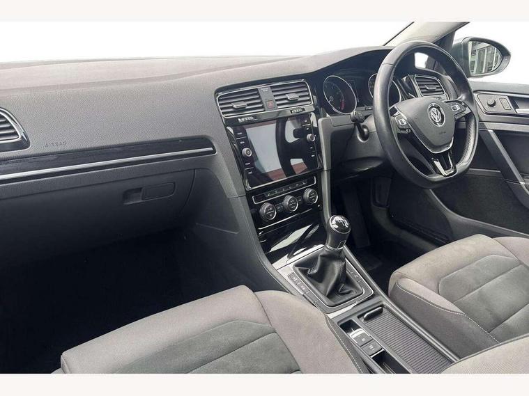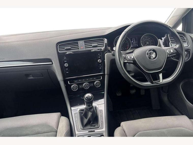 'Lights On' Reminder warning buzzer, ACC - Adaptive cruise control with front assist, forward collision warning, distance monitoring, city emergency brake and speed limiter, Bluetooth telephone and audio connection for compatible devices, Brake pad wear indicator warning light, Driver alert system, Driving Mode Selection with four preset modes - Eco, normal, sport or individual modes, Multifunction computer with visual gear change recommendation for fuel consumption, Power assisted speed sensitive electro-mechanical steering, Push tank flap, Speed limit display, Speedo, rev counter, electronic odometer, trip, service interval display, exterior temperature and fuel gauge, Stop/start system, Think blue trainer driver tips and journey analysis, Warning buzzer and light for front seatbelts unfastened, Battery regeneration during braking, XDS electronic differential lock, Composition media system, DAB Digital radio receiver, Driver Personalisation profile selection, MP3/WMA compatability, Multi device interface (MDI) via USB connection, Premium USB cable in choice of either Apple or Android smartphone compatibility, SMS Functionality, Title and cover art display, USB and SD card connectivity, Volkswagen media control, Black front air intake and radiator grille with chrome insert, Black rear diffuser, Body colour bumpers, Body colour door handles, Body colour door mirrors with integrated indicators, Chrome trimmed front air intake surrounds, Dusk sensor + automatic driving lights, Electric front windows, Electric rear windows, Electrically adjustable and heated door mirrors, Fully galvanised body, Heated rear windscreen, High level 3rd brake light incorporating LED Technology, LED front fog lights with static cornering light function, Range adjustable headlights via infotainment system with LED daytime running lights, Rear fog lamp, Rear number plate lights incorporating LED technology, Rear tinted glass 65% light absorbing from B pillar backwards, Rear window aerial, Rear window wash/wipe with intermittent wipe, Reflectors in all doors, Tailgate with integrated rear roof spoiler, Windscreen wipers/ intermittent wipe + 4 position delay, 12V socket in luggage compartment, 3 rear headrests, 4 load lashing points in luggage compartment, 60/40 split folding rear seat backrest, Bag hook in luggage compartment x 2, Climate control - 2 zone electronic air conditioning with automatic air recirculation and allergy filter, Cooled glovebox, Cover for storage compartment in centre, Dust/pollen filter, Front + rear carpet mats, Front centre armrest with storage compartment and two rear air vents, Front seat back storage pockets, Grab handles front x 2, rear x 2 with integrated coat hooks, Height and reach adjustable steering wheel, Illuminated vanity mirrors, Instrument lighting white adjustable panel illumination, Interior light delay, Isofix preparation for 2 rear child seats, Load through provision with rear centre armrest and cupholders x2, Luggage compartment lighting, Overhead storage box, Pearl grey headlining, Storage box in luggage compartment, Storage compartment in roof console with cover, Storage compartments in centre console, Storage compartments in front doors, Storage compartments in rear doors, Stowable luggage compartment cover, Sun visors, Variable boot floor, height adjustable and removable, Ambient lighting pack - Golf, Convenience Pack - Golf, Mirror pack - Golf, Winter pack - Golf, 3 rear three point seatbelts, Airbags - Driver's and front passenger's, curtain airbag, Driver's knee, front side impact and passenger's airbag deactivation switch, Anti-lock Braking System (ABS) with Hydraulic Brake Assist (HBA), Automatic post collision braking system, Child locks on rear doors, Driver/Passenger optimised head restraints, Electronic parking brake with auto hold, Electronic stability control (ESC) including Electronic differential lock (EDL) and ASR (Traction control) with deactivation via infotainment system, Front ventilated disc brakes and rear disc brakes, Pre crash preventive occupant protection, Three point height adjustable front seatbelts with tensioners, Tyre pressure loss indicator, Alarm with interior protection and deactivation via infotainment system, Electronic engine immobiliser, Chrome plated air vent surround, Chrome plated electric mirror adjustment switch surround, Chrome-plated light switch surround, Piano black decorative inserts in centre console, Tumbler decorative inserts, Steel space saver spare wheel,