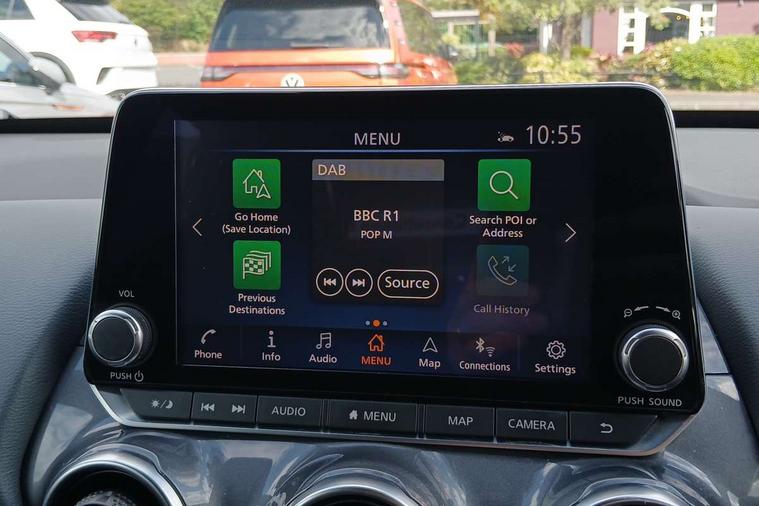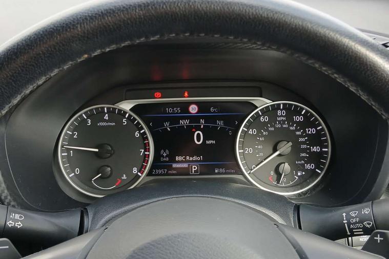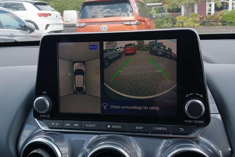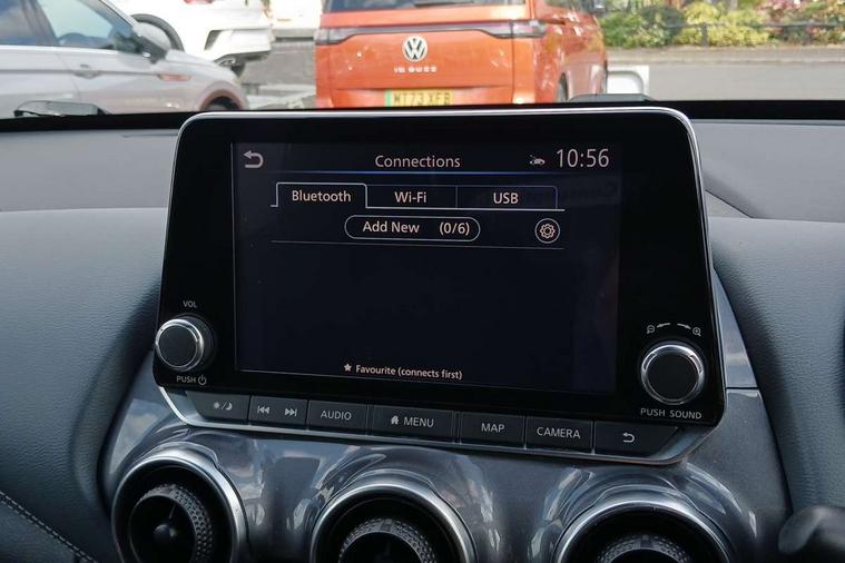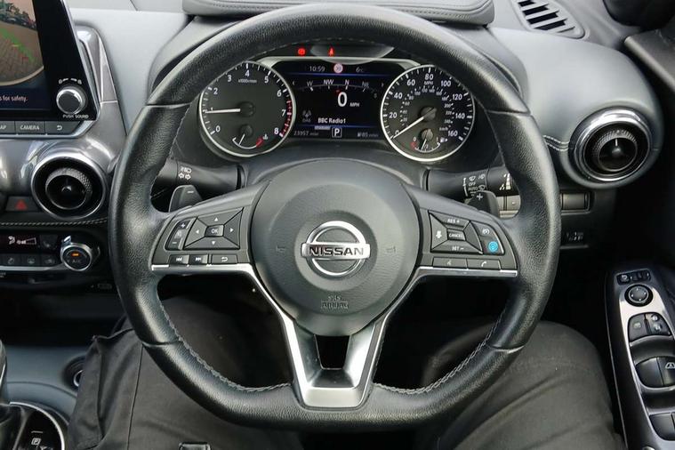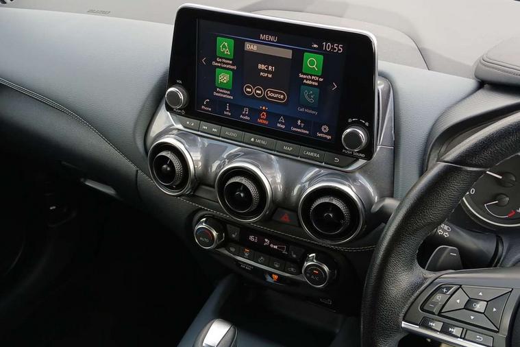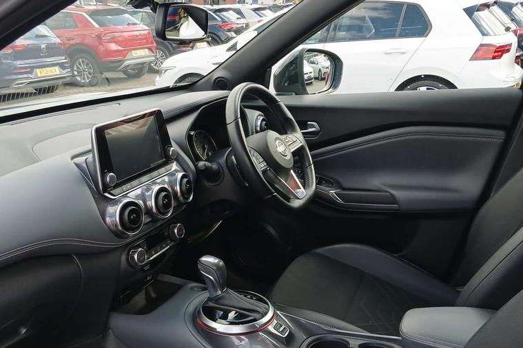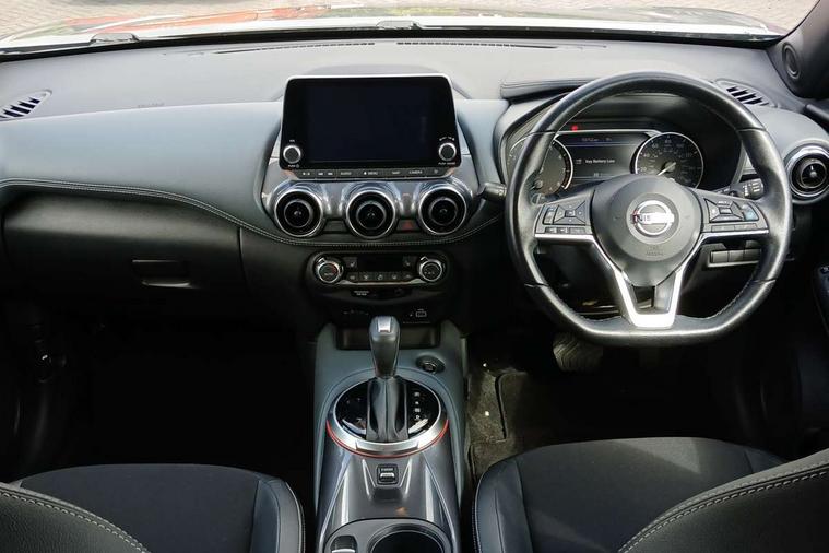 7" full colour TFT screen combimeter, Apple CarPlay and Google Android auto, Drive modes select (Eco, normal and sport), eCall emergency call system, Emergency and breakdown call, Front parking sensor, Idle start/stop system, Intelligent lane intervention, Lane departure warning system, Nissan connect 8" touch screen entertainment system, Nissan connect nav with TomTom traffic, Nissan connect services and Wifi connection, Outside temperature sensor, Power Steering, Rear parking sensor, Traffic sign recognition, Trip computer, Voice recognition, Gasoline particulate filter, Bluetooth system, USB, Aux-in and 12V socket, Bose personal plus audio system with 8 speakers(4 speakers and 2 headrest speaker for driver and passenger seats), Bose personal sound stage control, DAB Digital radio, Rear console USB port, Auto dimming interior rear view mirror, Auto headlights, Automatic hazard signal with emergency stop signal, Body colour bumpers, Body colour door handles, Electrically adjustable door mirrors with integrated indicators, Follow me home headlights, Front and rear electric window with one touch driver window, Heated and auto folding door mirrors, High beam assist, LED daytime running lights, LED front fog lights, LED headlamps, LED rear fog lamp, LED rear lamps, Rain sensor windscreen wipers, Rear privacy glass, Rear side wing doors, Rear wiper, Thermaclear heated windscreen, Three blink turn signal, 3 height adjustable rear headrests, 3 seat bench in 2nd row, 60/40 split folding rear seat, Automatic climate control, Card holder on driver sunvisor, Cloth/Synthetic leather upholstery, Door ambient lighting, Driver and passenger sliding and reclining seats, Driver seat back pocket, Driver side rear coat hanger, Driver/passenger sunvisors and vanity mirrors, Front and rear cabin lights, Front armrest, Front door pockets with bottle holders, Front head restraints, Front passenger isofix child seat anchorage point, Front/rear passenger grab handles, Gear console ambient circle lighting, Grey synthetic leather kneepad, Heated front seats, Height adjustable driver's seat, Height adjustable passenger seat, Internal chrome door handles, Leather gearshift knob, Leather steering wheel, Luggage board, Luggage space lighting, Monoform sporty seats, Multifunction steering wheel, Passenger seat back pocket, Rear door bottle holders, Single front passenger seat, Steering wheel mounted gearshift paddles, Telescopic steering wheel adjustment, Two cupholders in front centre console, Two rear isofix child seat anchorage points with top tether, Welcome light and console tray ambient lighting, ProPilot pack - Juke, ABS with EBD and brake assist, Active ride control, Active Trace Control, Driver and passenger airbags, Driver and passenger side airbags, Electric handbrake with auto hold function, Electronic Stability Programme (ESP), Front and rear curtain airbags, Height adjustable seatbelts, Hill start assist, Intelligent emergency braking with pedestrian and cyclist recognition, Rear door child safety locks, Seatbelt reminder for driver/front passenger and rear seats, Single tone horn, Three 3 point rear seatbelts, Traction control, Tyre pressure monitoring system, VDC Dynamic Vehicle Control, Ventilated rear brake discs, Alarm, Immobiliser, Intelligent Key with push button starter, Remote central locking,