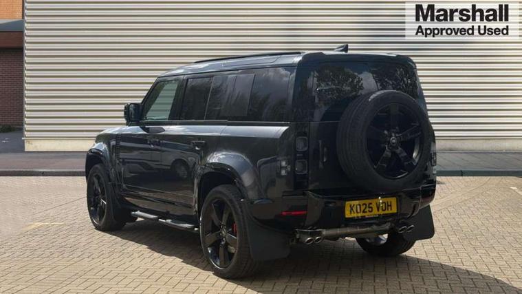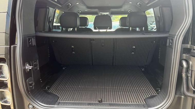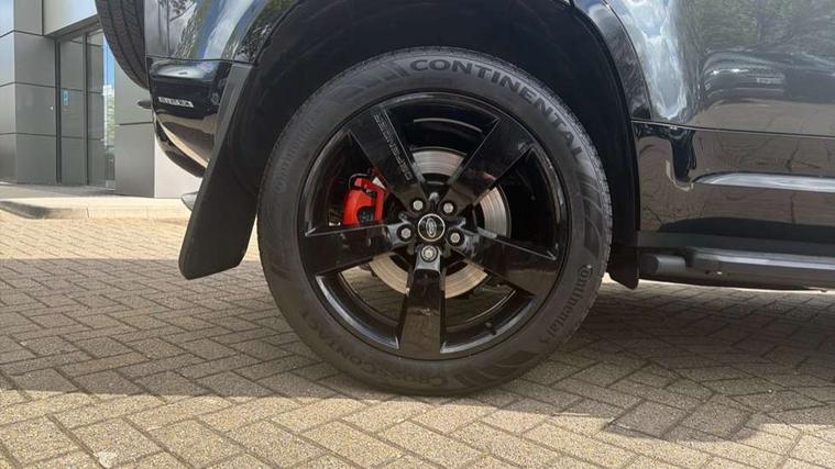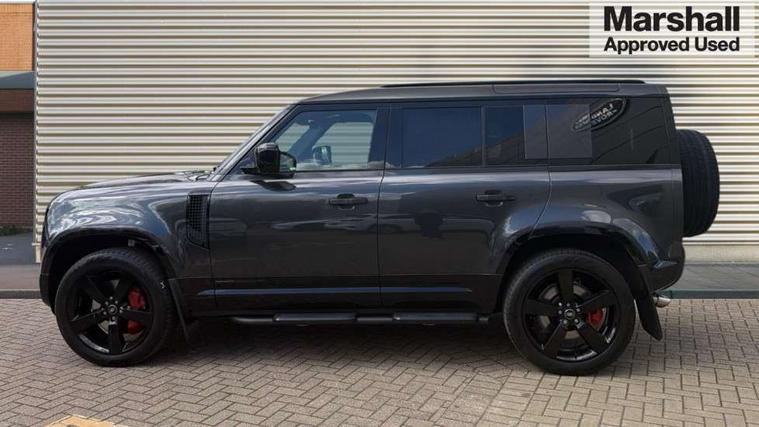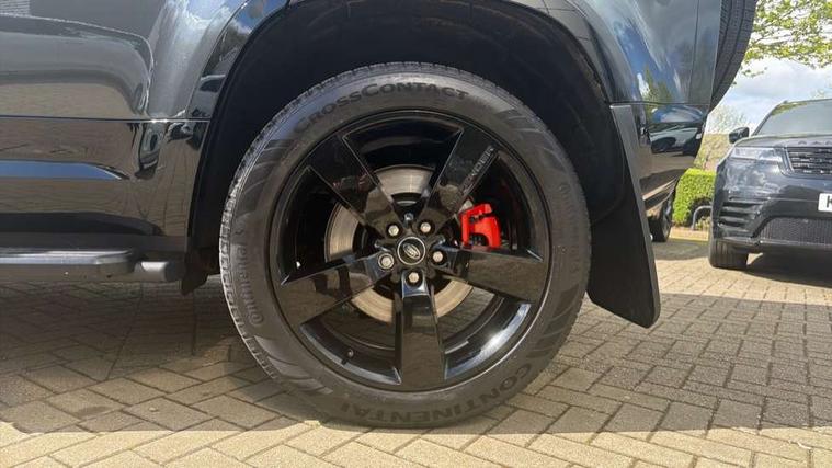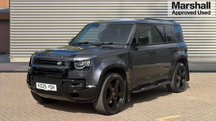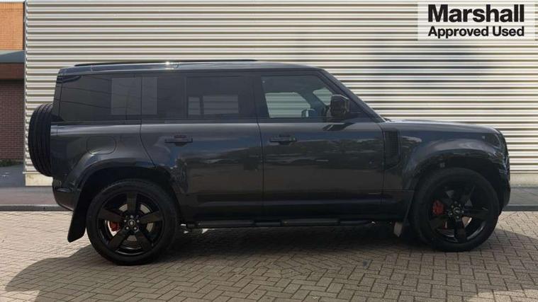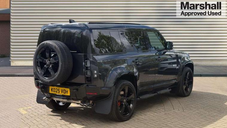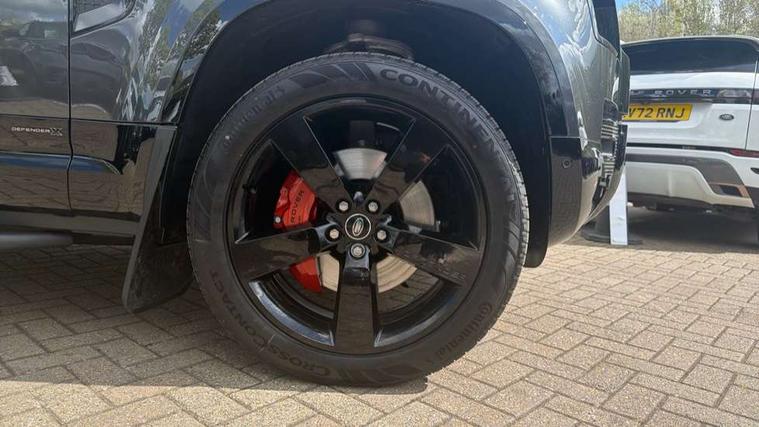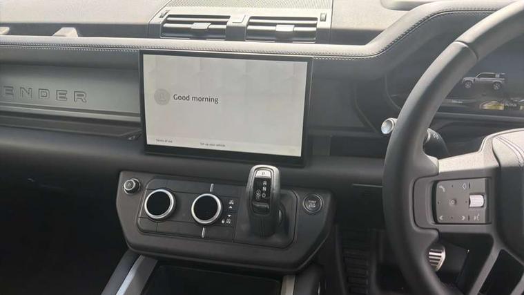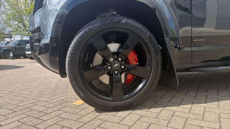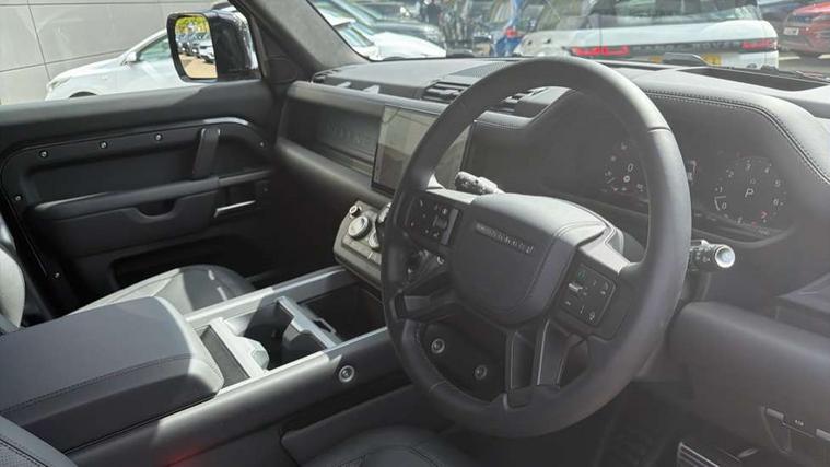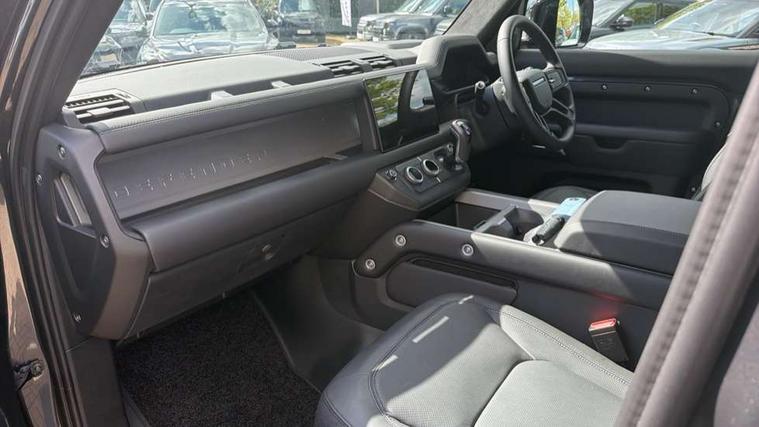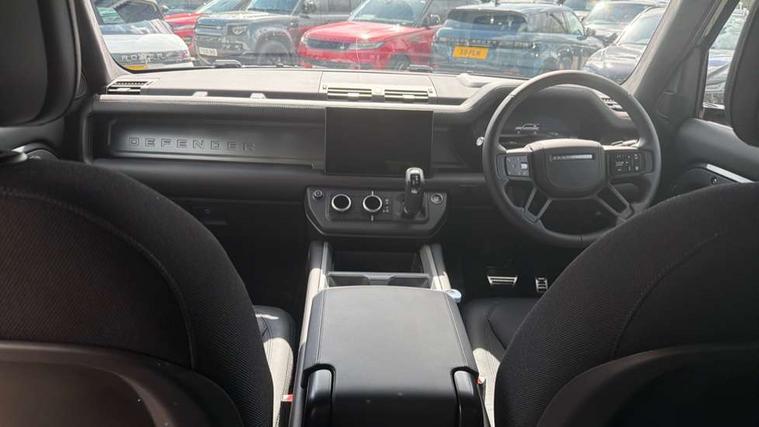 1 x USB-C (power only) & 1 x USB-C (power & data) in Row 1, 2 x USB-C in Row 2, 11.4" touchscreen, 360 degree parking aid, 3D Surround Camera with 360 View, 180 Rear View, Front Traffic Detection, Forward Vehicle Guidance, Tow Hitch Assist and clear sight Ground View, Adaptive cruise control, Android Auto, Apple CarPlay, Blind spot assist, Bluetooth system, Brake pad wear indicator, Clear exit monitor, Connected navigation pro, Driver condition monitor, Electric power assisted steering (EPAS), Head up Display, Interactive driver display, Lane keep assist, Push button start, Rear collision monitor, Rear traffic monitor, Traffic sign recognition with adaptive speed limiter, Trip computer, Wade Sensing, Wireless device charging, 8 speed automatic transmission, Adaptive dynamics, All terrain progress control, All wheel drive system, Configurable Terrain Response, Electronic active differential with brake torque vectoring, Electronic air suspension, Twin speed transfer box, DAB Radio (Digital Audio Broadcasting), Meridian 700w surround sound audio system with 15 speakers, Pivi pro connected, Automatic headlight levelling, Automatic headlights, Black roof rails, Centre high mounted stop light, ClearSight interior rear view mirror, Darkened LED tail lights, Electric heated/power fold door mirrors with approach lights and auto dimming driver side, Electric windows with one touch open/close and anti-trap, Follow me home lighting, Front fog lights, Headlamp power wash, Heated rear window with timer, Heated windscreen, Illuminated metal treadplates with brand name script, Matrix LED headlights with signature DRL, Privacy glass, Puddle lights, Quad outboard mounted exhaust pipes, Rain sensing windscreen wipers, Rear fog lights, Rear side wing doors, Rear wiper, Side hinged tailgate, Sliding panoramic roof, Standard tail door, Trailer stability assist, X badge, 12V power socket in loadspace, 14 way heated and cooled electric memory front seats with 4 way manual winged headrests, 3 seat bench in 2nd row, 40:20:40 folding, heated rear seats with winged headrests and centre armrest, Alpine lights, Bright metal pedals, Configurable cabin lighting, Domestic plug socket, Durable rubber cabin flooring, Durable rubber loadspace flooring, Electric cabin pre conditioning, Electric reach + rake adjustable steering column, Electrically adjustable steering column, Footwell lights, Front head restraints, Front passenger isofix child seat attachment, Heated steering wheel, Loadspace cover, Loadspace Hook, Multifunction steering wheel, No flat load floor storage, Overhead stowage for sunglasses, Rear headrests, Rear ISOFIX, Rear reading lights, Signature interior upgrade, Single front passenger seat, Soft close tail door, Standard seat configuration, Storage glovebox, Sunvisors with illuminated vanity mirrors, Twin front cupholders, Non-smoker package, Online pack with data plan - Defender, 5 x 3 point seatbelts, ABS, Brake hold function, Cornering brake control (CBC), Cross car beam in metallic grey powder coat brushed finish, Customer configurable autolock, Driver and passenger airbags, DSC - Dynamic Stability Control, EBD - Electronic brakeforce distribution, Electric parking brake (EPB), Emergency brake assist, Emergency braking, ESP + traction control, Front airbags with passenger seat occupant detector, HDC - Hill descent control, Hill launch assist, Low traction launch, Orange brake calipers, Power operated child locks, Remote for (e-Call, Optimised assistance call, InControl app, Climate, beep and flash and door), RSC - Roll stability control, Seat belt reminder, TPMS (Tyre pressure monitoring system), Alarm, Immobiliser, Intrusion sensor, Keyless entry, Locking wheel nuts, Secure tracker pro,