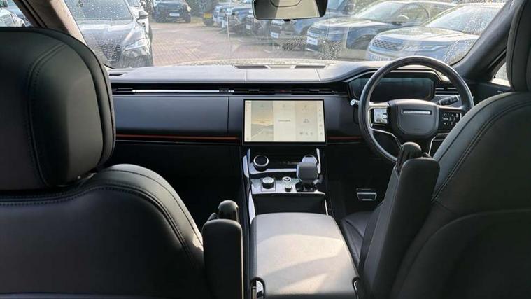 13.1" Touchscreen, 3D 360 degree surround camera with wade sensing, Adaptive cruise control with steering assist, Android Auto, Apple car play, Blind spot assist, Bluetooth connectivity streaming, Driver condition response, Eco mode, Electric power assisted steering (EPAS), Front and rear parking aid, Head up Display, Interactive Driver display instrument cluster, Lane departure warning system, Lane keep assist, Park assist, Push button start, Rear collision monitor, Rear traffic monitor, Remote, Traffic sign recognition with adaptive speed limiter, Trip computer, Wireless device charging with phone signal booster, 8 speed automatic transmission, Adaptive dynamics, All wheel drive system, Automatic access height, Terrain Response 2, DAB Radio (Digital Audio Broadcasting), Incontrol protect - SOS emergency call with automatic collision detection, optimised assistance call and Incontrol remote app essential, Pivi pro connected, USB/aux input socket, Adaptive brake lights, Automatic headlight levelling, Automatic headlights, Centre high mounted stop light, ClearSight interior rear view mirror, Digital LED headlights with signature DRL and image projection, Electric heated/power fold memory door mirrors with approach lights and auto dimming driver side, Electric windows with one touch open/close and anti trap, Flush deployable exterior door handles, Follow me home lighting, Front and rear recovery eyes, Headlight power wash, Heated rear window, Heated washer jets, Heated windscreen, Illuminated metal treadplates with Autobiography script, LED tail lights, Metal load space scuff plates, Rain sensing windscreen wipers, Rear animated directional indicators, Rear fog lights, Rear side wing doors, Rear wash/wipe, Remote window closing, Side repeater indicators in mirror, Sliding panoramic roof with electric sunblind, Trailer stability assist, Winter wiper park position, 22 way heated and ventilated front and power recline rear seats, massage electric memory front seats and front and rear winged headrests, 3 seat bench in 2nd row, 60:40 seats with power recline and loadthrough, Air quality sensor, Automatic air recirculation system, Bright metal foot pedals, Centre console with armrest, Customer configurable single point entry, Driver's footrest, Easy boot loading, Ebony console door armrests and seatbelts, Electric adjustable steering column, Four zone climate control, Front and rear cupholders, Front door storage space, Front map lights, Front seat back map pockets, Front stowage pocket, Front/rear passenger grab handles, Gearshift paddles, Heated steering wheel, Isofix child seat preparation, Loadspace cover, Loadspace floor partition, Loadspace Hook, Loadspace light, Loadspace mounting provisions, Lockable glovebox, Luggage tie-downs in loadspace, Multifunction steering wheel, Pollen filter, Power socket, Premium cabin lighting, Rear centre armrest, Rear ISOFIX, Single front passenger seat, Soft close doors, SV bespoke carpet mats, Three 12V accessory power outlets, Twin blade sunvisors with Illuminated vanity mirrors, Upper secondary glovebox, Online pack with data plan - Range Rover Sport, 3 point seatbelts on all seats, Anti-lock braking system (ABS), Brake pre-fill technology, Configurable autolock, Cornering brake control (CBC), DSC - Dynamic Stability Control, EBD - Electronic brakeforce distribution, Electric parking brake, Electronic traction control, Emergency braking, Front seatbelt pretensioners, Front side airbags, Height adjustable front seatbelts, Hill descent control, Hill launch assist, Illuminated seat belt buckles, Low traction launch, Occupant protection assist, Passenger seat occupant detector with front airbags, Power operated child locks, Roll stability control, Seatbelt warning, TPMS (Tyre pressure monitoring system), Immobiliser, Intrusion sensor, Keyless entry, Locking wheel nuts, Perimetric and volumetric anti theft alarm, Remote locking, Moonlight noble chrome interior finishers,
