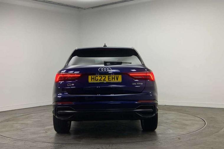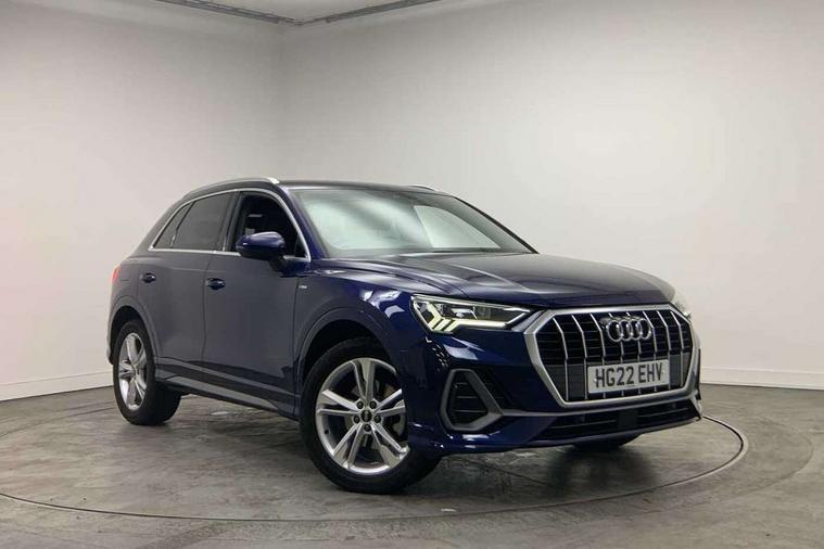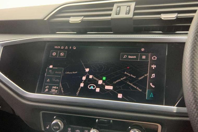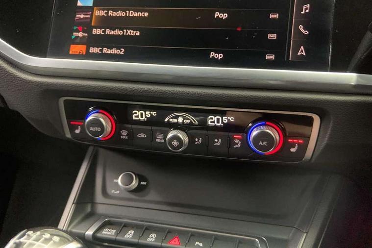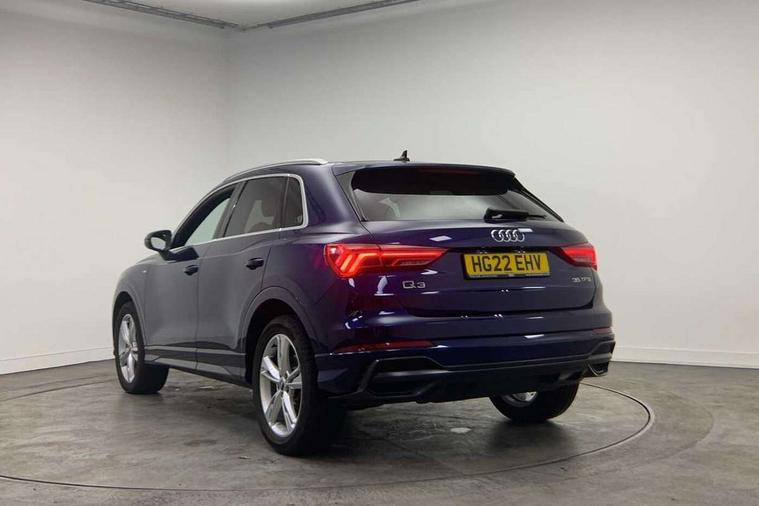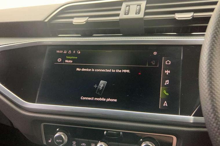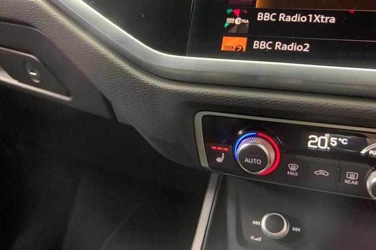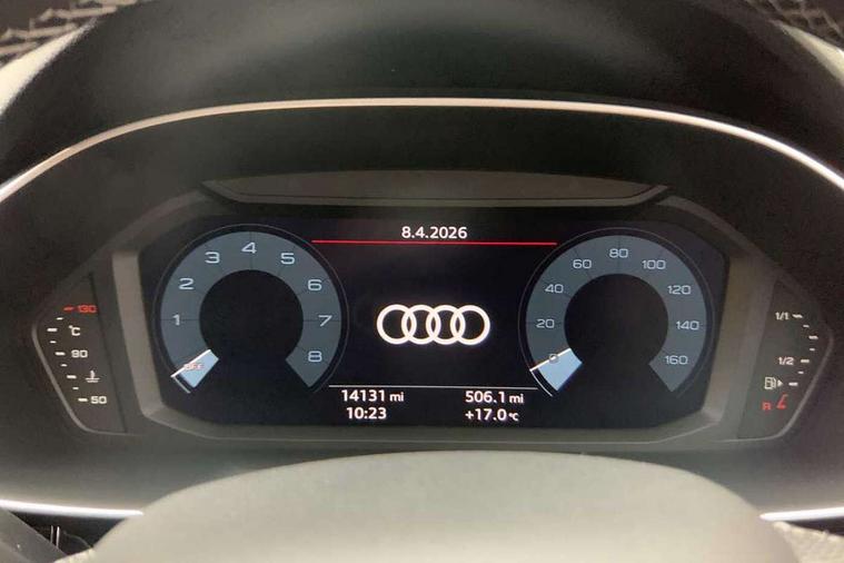 Amazon alexa Integration, Audi drive select, Audi lane departure warning, Audi Virtual Cockpit - 10.25" display, Bluetooth interface, Camera based traffic sign recognition, Cruise control + speed limiter, Legal emergency call, MMI Navigation Plus with high resolution 10.1 inch touchscreen colour display, Power operated tailgate, Progressive steering, Rear parking sensors, Service interval indicator, Smartphone interface includes wireless Apple carplay/Android Auto, Start stop system with recuperation, Voice control system with natural language interaction, Sports suspension, 2 USB-C ports with charge and data functions, 6 passive loudspeakers, DAB digital radio module, Acoustic windscreen, Aluminium roof rails, Aluminium window trim, Auto dimming frameless rear view mirror, Body coloured bumpers, Electrically folding, adjustable and heated door mirrors with integrated LED side indicators and kerb view function for passenger side, Front and rear electric windows, Front fog lights, Front side air inlets in matt platinum grey, Front spoiler blade in matt platinum grey, Grille vertical bars in aluminium silver/Matt, High gloss black finish B and C pillars, LED headlights with LED daytime running lights, LED rear lights, LED third brake light, Privacy glass dark tinted rear and rear-side windows (from B-pillar backwards), Rain and light sensors, Rear diffuser grille in grained matt black, Rear diffuser strip in matt titanium black, Rear side wing doors, Rear wiper, S line badges on front wings, S Line front and rear bumpers, Side skirt insert in matt Platinium grey, Titanium black radiator grille, Variable front intermittent wipers, 12V socket in rear centre console, 3 seat bench in 2nd row, 40:20:40 folding with manual adjustment for 60:40 forwards/backwards position and backrest angle, Adjustable rear seat bench/backrest with centre armrest and cupholder, Black cloth headlining, Dual zone electronic climate control, Front and rear black floor mats with contrast stitching in rock grey, Front and rear headrests, Front and rear roof module including reading lights, Front centre armrest, Glove compartment lighting, Height and reach adjustable steering wheel, Illuminated door sill trims with S logo, ISOFIX child seat mounting for front passenger with airbag deactivation and outer rear seat including top tether attachment point for outer rear seats, Luggage compartment light, Manual front seats with height adjustment, Perforated leather gearknob, Single front passenger seat, Stainless steel luggage compartment sill finisher, Stainless steel pedals, Non smoking pack - Q3, 3x3 point rear seatbelts, 6 airbags - Driver, front passenger, curtain and side windows, Audi pre-sense front with pedestrain and cyclist recognition, Electromechanical parking brake, Electronic stabilisation control including ABS, ASR and EDL, Front seatbelt reminder, Hill descent control, Hill hold assist, Manual child lock in rear doors, Pre sense basic, Seatbelt monitoring, Tyre pressure warning, Warning triangle and first aid kit, Anti theft alarm, Anti theft wheel bolts, Immobiliser, Remote central locking, Dark matt brushed aluminium inlay, Detail dashboard around MMI touch colour display in glass look, black with surround in aluminium look, Leatherette door armrest,