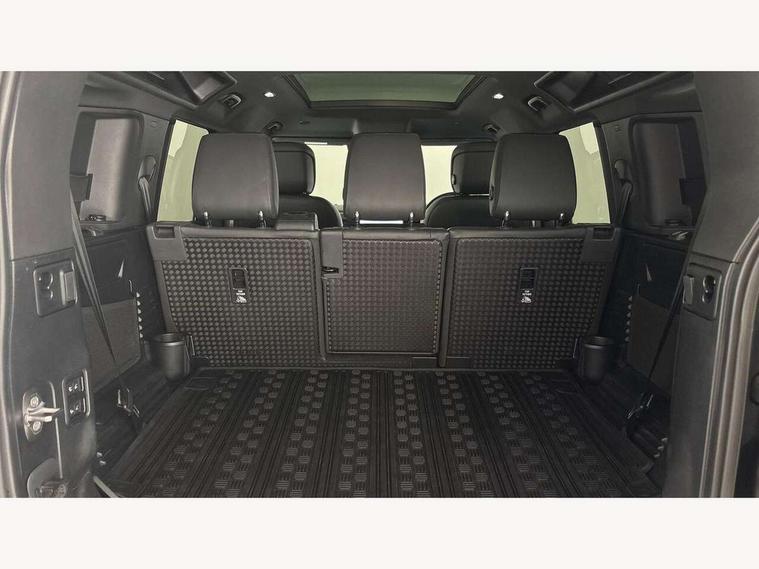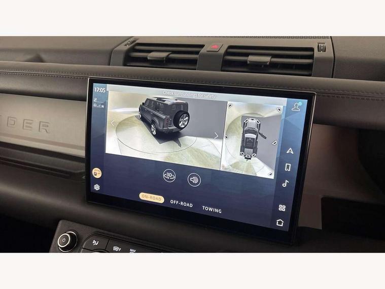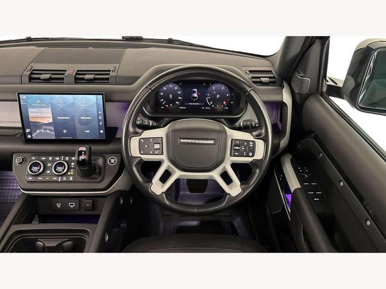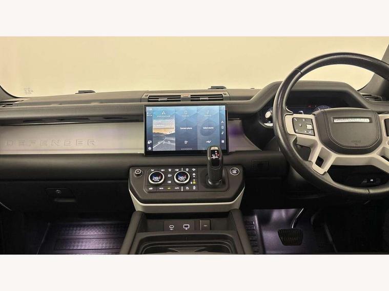 11.4" touchscreen, 360 degree parking aid, 3D Surround Camera with 360 View, 180 Rear View, Front Traffic Detection, Forward Vehicle Guidance, Tow Hitch Assist and clear sight Ground View, Adaptive cruise control, Android Auto, Apple CarPlay, Assisted tailgate with soft close, Blind spot assist, Bluetooth system, Brake pad wear indicator, Clear exit monitor, Connected navigation pro, Driver condition monitor, Electric power assisted steering (EPAS), Lane keep assist, Push button start, Rear collision monitor, Rear traffic monitor, Traffic sign recognition with adaptive speed limiter, Trip computer, Wade Sensing, 8 speed automatic transmission, All wheel drive system, Twin speed transfer box, DAB Radio (Digital Audio Broadcasting), Meridian 700w surround sound audio system with 15 speakers, Pivi pro connected, Automatic headlight levelling, Automatic headlights, Centre high mounted stop light, ClearSight interior rear view mirror, Electric heated/power fold door mirrors with approach lights and auto dimming driver side, Electric windows with one touch open/close and anti-trap, Follow me home lighting, Front fog lights, Heated rear window with timer, Heated windscreen, LED tail lights, Privacy glass, Puddle lights, Rain sensing windscreen wipers, Rear fog lights, Rear side wing doors, Rear wiper, Side hinged tailgate, Trailer stability assist, X-Dynamic badge, 12V power socket in loadspace, 14 way heated and cooled electric adjustable memory front seats with 4 way manual headrests, 2 seat bench in 3rd row, 3 seat bench in 2nd row, Air quality sensor, Alpine lights, Cabin Air Purification plus, Durable rubber cabin flooring, Durable rubber loadspace flooring, Electric reach + rake adjustable steering column, Extended leather upgrade, Footwell lights, Front passenger isofix child seat attachment, Heated steering wheel, Loadspace cover, Loadspace Hook, Multifunction steering wheel, Overhead stowage for sunglasses, Premium cabin lighting, Rear headrests, Rear ISOFIX, Rear reading lights, Single front passenger seat, Storage glovebox, Sunvisors with illuminated vanity mirrors, Twin front cupholders with cover, Online pack with data plan - Defender, 7 three point seatbelts, ABS, Brake hold function, Cornering brake control (CBC), Customer configurable autolock, DSC - Dynamic Stability Control, EBD - Electronic brakeforce distribution, Electric parking brake (EPB), Emergency brake assist, Emergency braking, ESP + traction control, Front airbags with passenger seat occupant detector, HDC - Hill descent control, Hill launch assist, Low traction launch, Power operated child locks, Remote for (e-Call, Optimised assistance call, InControl app, Climate, beep and flash and door), RSC - Roll stability control, Seat belt reminder, TPMS (Tyre pressure monitoring system), Alarm, Immobiliser, Intrusion sensor, Keyless entry, Locking wheel nuts,