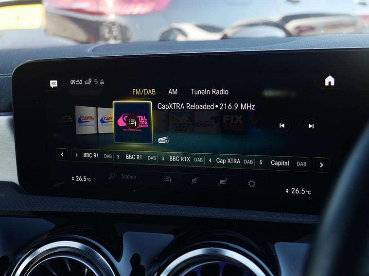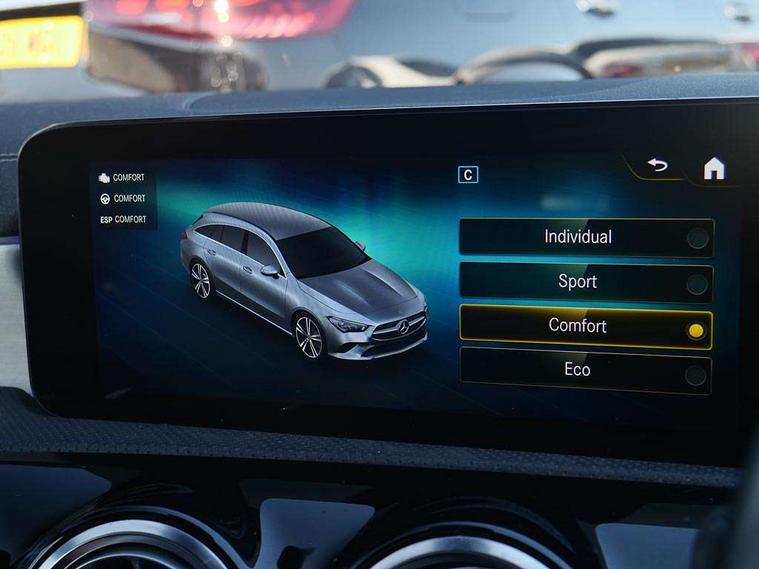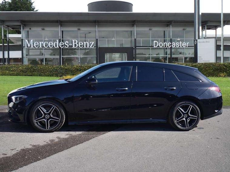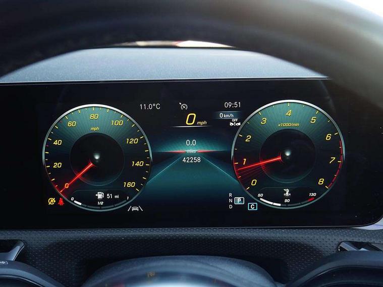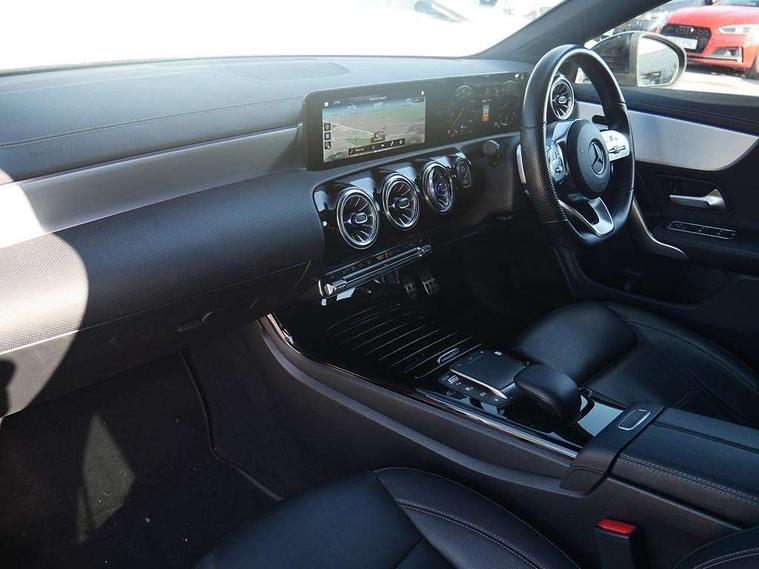 10.25 inch Instrument display with digital cockpit, 10.25 inch touchscreen central media display, Active lane keeping assist, Attention assist - Monitors steering behaviour and long journey fatigue, Bluetooth connection, Car wash mode, Cruise control with limiter, Direct steer system with speed sensitive power steering, DYNAMIC SELECT with a choice of driving modes (ECO, Comfort, Sport and Individual), ECO start/stop function, Fluid level warning indicator for fuel, oil, coolant and washer fluid, Hard-disk navigation, Hey Mercedes Voice activation, Lamp failure indicator, Mercedes me connect including emergency call system, accident recovery, breakdown management and maintenance, Mercedes me remote services, Outside temperature gauge, Owners manual and service booklet in English, Pre-installation of private car share, Preinstallation for Mercedes Benz link, Radio aerial integrated into front and rear windshields, Service indicator (ASSYST), Smartphone integration with Apple CarPlay and Android auto, Speed limit assist, Trip computer in multifunction display with current consumption indicator, Lowered comfort suspension, Rear axle multi-link, DAB digital radio tuner, MBUX multimedia system, Mid-range sound system, USB (type C) ports (2) in stowage compartment and 1 in front of centre console, Adaptive brake lights, AMG body styling with AMG front apron and rear apron and visible exhaust tailpipe in chrome trim elements, AMG bodystyling side skirts, Body colour bumpers, Body colour door handles, Chrome beltline strips, Diamond radiator grille pins in chrome, Electric windows, Electrically adjustable and heated door mirrors with integrated LED indicators, Exhaust system with 2 Visible tailpipe trim elements and rear apron with trim in chrome, Headlamp assist automatic headlamp activation, Heated glass rear windscreen + timer control, High level LED third brake light, Interior mirror with black reading lamps and frameless, LED high performance headlamps with integrated LED daytime running lights, LED tail lamp, Privacy glass with dark tinting on rear side windows and rear window, Rain sensing windscreen wipers with two sensitivity settings, Rear fog lamp, Rear side wing doors, Rear wiper, Window line trim strip in chrome, 3 seat bench in 2nd row, 3 spoke flattened bottom nappa leather multifunction steering wheel with perforated leather in grip area, 40:20:40 split folding rear seats with backrest, Air conditioning - Two zone thermotronic luxury automatic climate control with display, Air vents with surround in silver chrome, Automatic child seat recognition sensor, Black roof lining, Brushed stainless steel sports pedals with rubber studs, Floor mats with stitched AMG lettering, Front centre armrest with stowage, Galvanished gear shift paddles on steering wheel, Heated front seats, Illuminated front door sills with changeable cover, Illuminated glove compartment stowage, Interior lighting - 64 colour Ambient lighting, Luggage net on driver/front passenger seat backrest, Manually adjustable front seats, Manually height and reach adjustable steering column, Rear armrest with two integral cup holders for drinks, Rear head restraints, Single front passenger seat, Sport seats with fixed head restraints, Stowage compartment in centre console with retractable cover, Sunvisors with illuminated vanity mirrors, Touchpad on center console, Twin front cupholders, Two outer rear seat isofix and top tether child seat fixing points, Keyless go pack - CLA, Light and sight pack - CLA, Mirror pack - CLA, Night package - CLA, Parking package - CLA, Seat comfort pack - CLA, Active bonnet pedestrain safety measure which detects an impact and raises bonnet by 65mm, Active brake assist includes forward collision warning system with autonomous braking, Adaptive brake assist with hold function and hill start assist, Anti lock braking system (ABS) with brake assist, Black seat belts, Bonnet with power domes, Brake pad wear warning indicator, Childproof locks manually operated for rear doors and electrically operated for rear power windows, Crash responsive emergency lighting, Driver and front passenger head and sidebags, Driver and front passenger windowbags, Drivers knee airbag, Dual stage driver and front passenger airbags, Electric parking brake, Electronic stability programme with acceleration skid control, ESP curve dynamic assist, Front and rear seatbelt reminder, Front passenger seat occupancy sensor, Three point rear seat belts, Tyre pressure monitoring system, Warning triangle and first aid kit, Remote central locking and crash sensor with emergency opening function, Urban guard vehicle protection system with immobiliser and interior protection, Light aluminium with longitudinal grain interior trim, 18" AMG 5 twin spoke light alloy wheels painted in black with high sheen finish, Summer tyres, Tirefit tyre sealant kit,