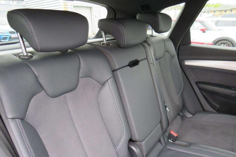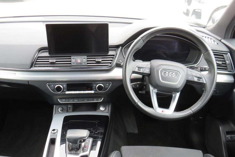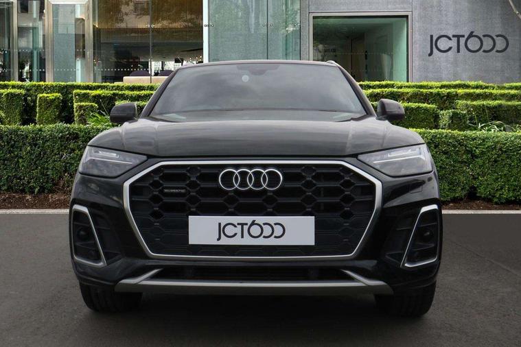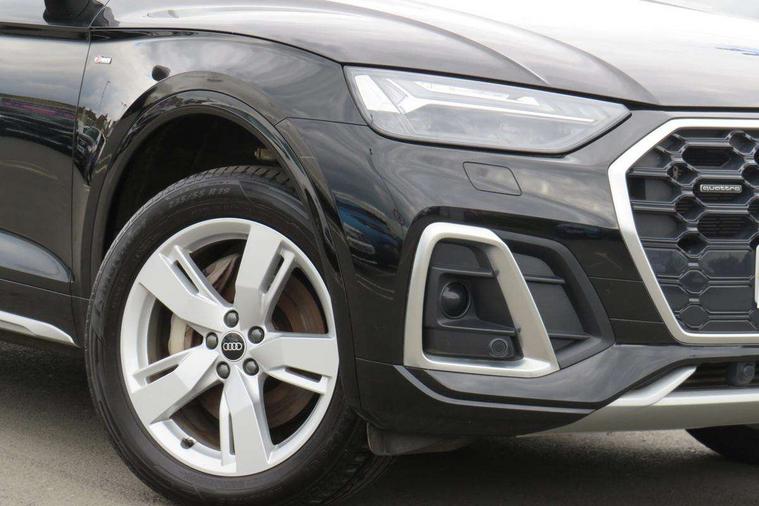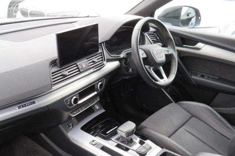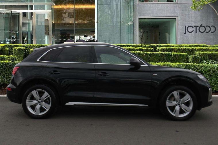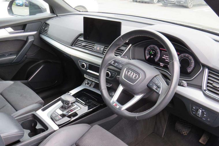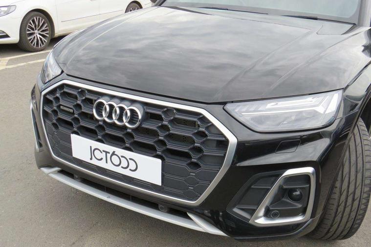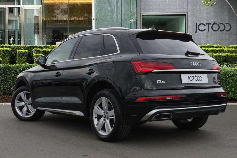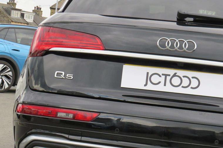 Audi connect safety and service (e-call), Audi connect with Amazon Alexa Integration, Audi drive select, Audi virtual cockpit plus with 12.3" screen and three different layout designs, Audi wireless smartphone interface, Automatic start-stop system with coasting functionality and efficiency programme, Bluetooth interface, Electro - mechanical power assisted steering, MMI navigation plus with 10.1" touch screen, Power tailgate, Reversing camera, Service interval indicator, Voice control system with Audi hotword activation "Hey Audi", 3 pin 10 amp domestic charging cable, 7.4 kW onboard charger, Dynamic suspension, Quattro on demand, Type 2 mode 3 22kW 32 amp charging cable, Type 2 socket for AC charging, 2 x USB charging port with aux input socket, DAB Digital radio, 3rd brake light, Acoustic windscreen, Aluminium roof rails, Audi matrix LED headlights with dynamic front and rear indicators, Auto dimming rear view mirror, Automatic headlights and windscreen wipers, Body colour bumpers, Body colour door mirrors, Body colour rear diffuser with matt aluminium silver surrounds, Body colour underbody protection, Chrome plated exhaust trims, Daytime running lights, Door sills in Selenite silver, Electric adjustable/heated/folding door mirrors, Front air inlet surrounds in aluminium, Front and rear electric windows, Front radiator grille in honeycomb design, Headlight washers, Lower bumpers painted in contrast Manhattan grey, Rear chrome trim strip below lights, Rear privacy glass and rear side windows, Rear side wing doors, Rear spoiler, Rear wiper, Roof bars, S Line badges on the front wings, S Line front and rear bumpers, S Line side skirts, 3 rear headrests, 40:20:40 split folding 3 rear bench seat in 2nd row with rear centre armrest, Black cloth headlining, Comfort front centre armrest, Contrast stitching on seats, steering wheel and gear lever gaiter, Deluxe 3 zone electronic climate control, Front/rear floor mats, Gear lever in black leather, Heated front seats, Height adjustable front head restraints, Height/reach adjustable steering column, Illuminated door sill trims with S logo, ISOFIX child seat mounting and top tether, Manual seat adjustment with 4-way electric lumbar support, Rear seat bench plus, Single front passenger seat, Sunvisors with vanity mirrors, Trunk roller cover, High gloss pack - Q5, LED interior light pack - Q5, 3 point seatbelts on all seats, 6 airbags - Driver, front passenger, curtain and side airbags, Electrically operated child locks on rear doors, Electromechanical parking brake, Electronic stabilisation control including ABS, ASR and EDL, Front passenger airbag deactivation, Hill descent control, Hill hold assist, Multi collision brake assist, Pop-up bonnet for pedestrian protection, Pre sense city, Seat belt force limiter, Seatbelt monitoring, Tyre pressure warning, Warning triangle and first aid kit, Anti theft alarm, Anti-theft wheel bolts, Keyless Go access/ignition system, Matt brushed aluminium inlays, Tool kit, Tyre repair kit,