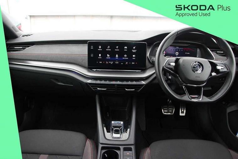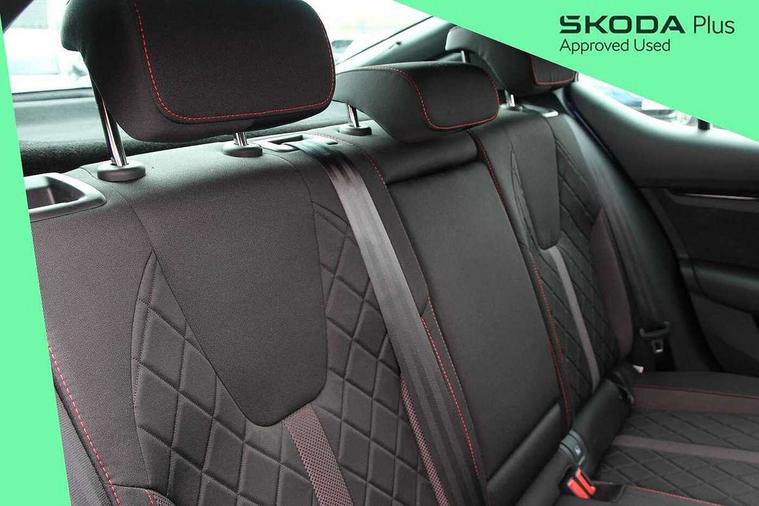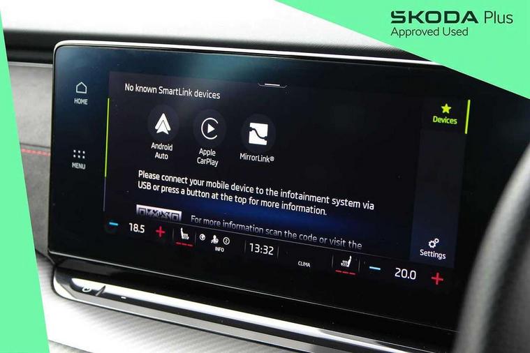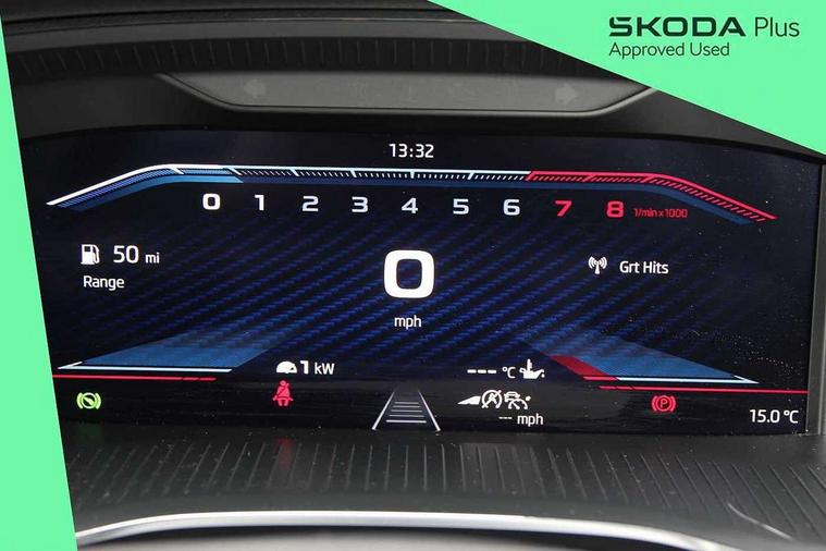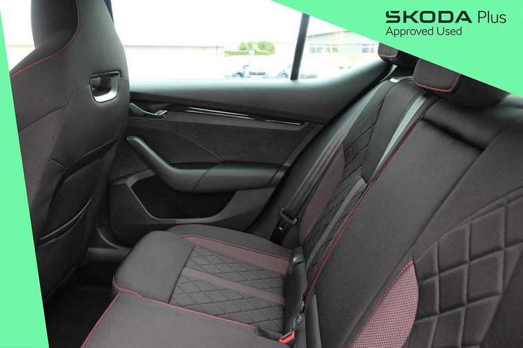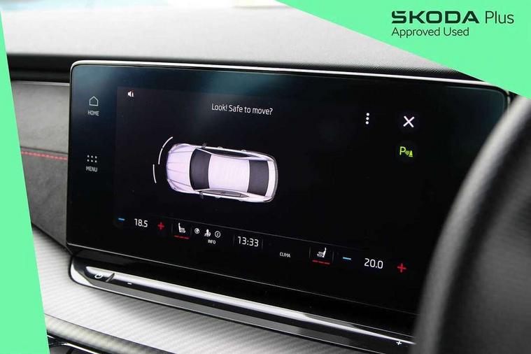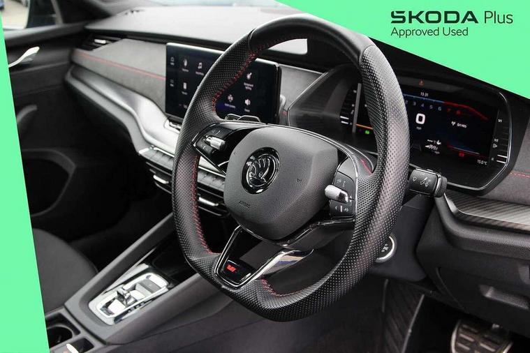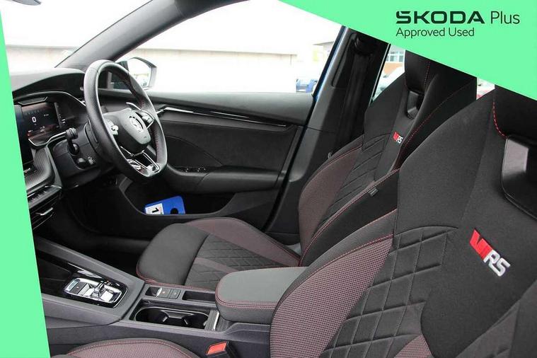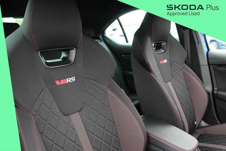 1x USB Type C port in rear view mirror (charging only), 2x USB Type C ports in rear of front centre armrest (charging only), Bluetooth system, Columbus satellite navigation with 10" touchscreen display, Driver fatigue sensor, eCall emergency system, Front and rear parking sensors with manoeuvre assist, Front assist system, Progressive dynamic steering, Smartlink (includes android auto and mirrorlink), Speed limiter, Turn Assist, Virtual Cockpit - 10.25" digital display, Voice control system, Wireless SmartLink for Apple Car Play, Electronically controlled limited slip differential, Front and rear stabilizers, 2x USB Type C ports (for charging and data transfer), 8 Speakers, DAB Digital radio, Aero front windscreen wipers with intermittent function, Auto dimming rear view mirror, Body colour door handles, Chrome exhaust tailpipes, Door sills with vRS logo, Electric front and rear windows, Exterior gloss black sports styling including front grille, side strip, window surrounds, door mirror and badging, Full LED Matrix headlights with AFS and cornering front fog lights, Headlight washers, Heated rear windscreen, High level third brake light, Ice scraper in fuel cap, LED daytime running lights, Rain and light sensors, Rear fog light on one side, Rear privacy glass, Rear side wing doors, vRS bumpers and lip spoiler, 3 rear headrests, 3 seat bench in 2nd row, 4 foldable roof handles, Aluminium pedals, Black headlining, Black microsuede padded dash panel with red contrast stitching, Chrome inner door handles, Front centre armrest, Front head restraints, Heated front seats, Illuminated glovebox, Leather trimmed gearshift lever, Luggage compartment lighting x1 light, Mechanical rear seat release, Parcel shelf - folding, Single front passenger seat, Sunglasses storage, Textile floor mat set, Three spoke leather sports multifunction steering wheel with paddles, Ticket holder, Umbrella in door panel, Unsplit rear bench seat and split folding backrest, LED interior light pack - Octavia, 3 point front/outer rear seatbelts+pre-tensioners, Alarm with interior monitoring, tilt sensor and back up horn, Automatic door unlocking in case of crash, Automatic fuel cut off in case of crash, Automatic warning lights in case of emergency braking, Curtain airbags and front side airbags, Driver and front passenger airbags, Drivers knee airbag, Electronic parking brake, Emergency call and proactive services, ESC including ABS, EBV, MSR, ASR, EDS, HBA, DSR, Front and rear disc brakes, Front central airbag, Hill hold control, Hill start assist, ISOFIX on front passenger seat and outer rear seats, Manual rear child locks, Passenger airbag deactivate switch, Red brake calipers, Two tone horn, Tyre pressure monitor, Visual and acoustic seat belt reminder, Warning reflectors in front door, Door locks with immobiliser, Keyless entry and start/stop including rear doors, Remote central locking, Carbon optic decorative inserts, Gloss black air vent surrounds, 19" Altair anthracite alloy wheels,