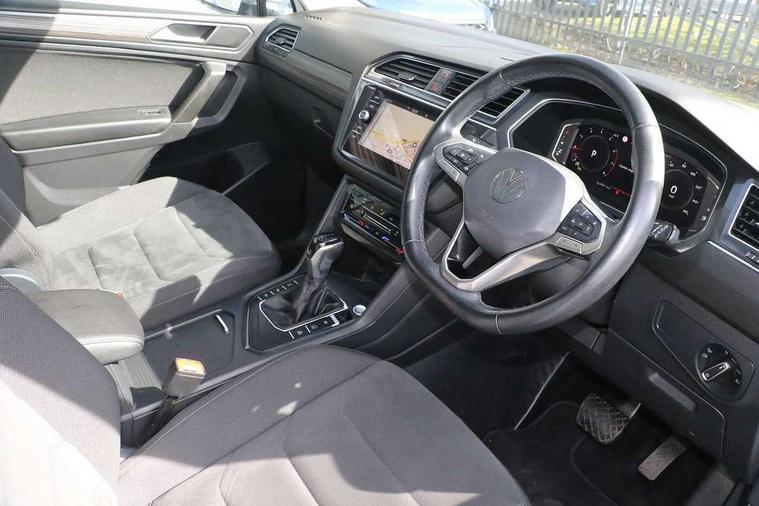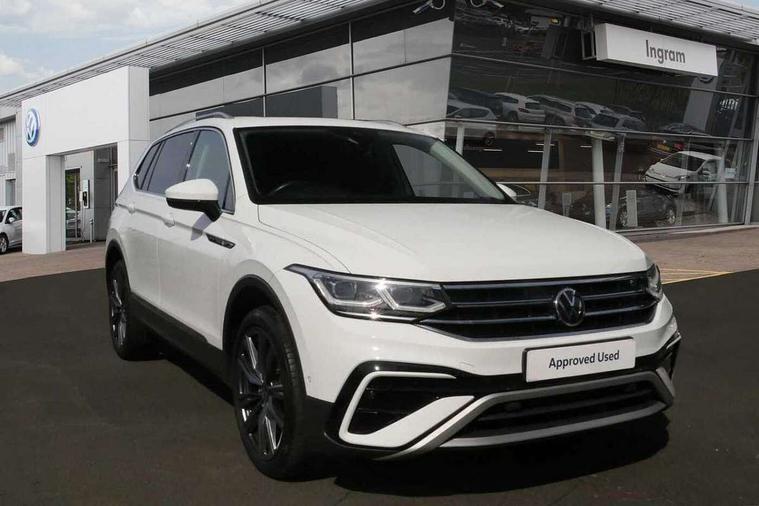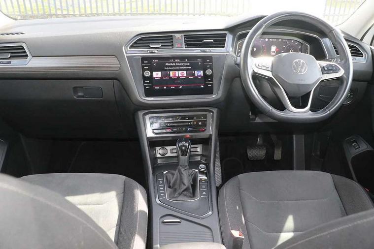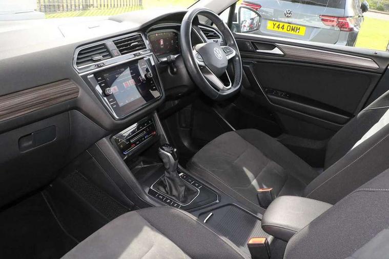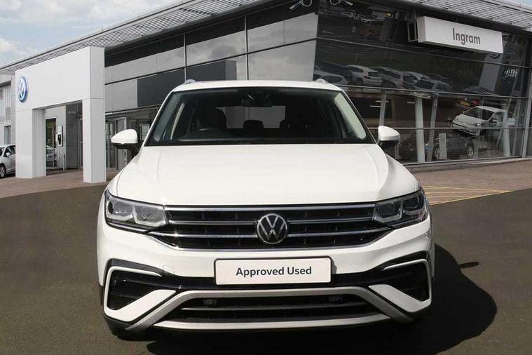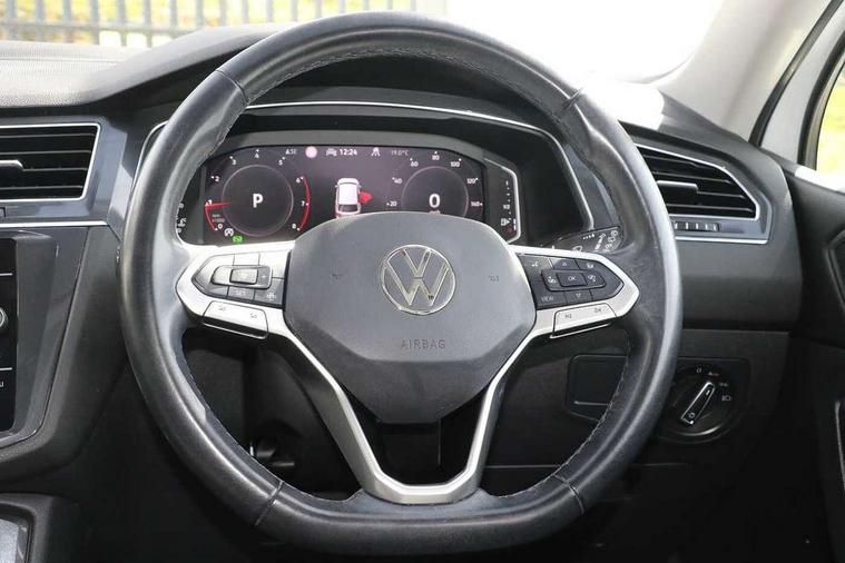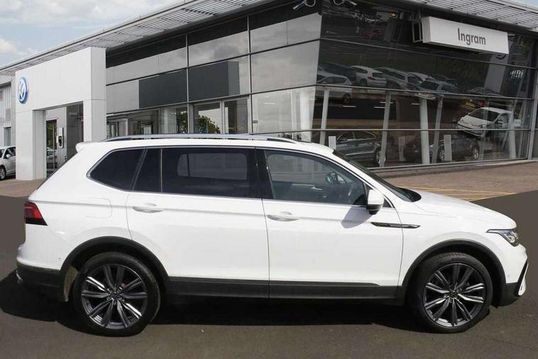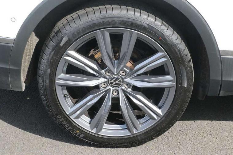 Adaptive cruise control, App-Connect, Digital cockpit pro, Driver alert system, Driver profile selection, Dynamic road sign display, eCall emergency call service, Electric boot lid, Lane change system side assist and rear traffic alert, Lane keeping system Lane Assist, Mobile phone interface comfort with inductive charging feature, Multifunction front facing camera, Power assisted speed sensitive steering, Speedo and rev counter, electronic odometer, trip, service interval display and exterior temperature gauge, Front wheel drive, Start-stop system with battery regeneration (recuperation - energy recovery during braking), 2 USB-C ports in the front, 1 USB-C charging socket on the center console in the rear, DAB Digital radio, Diversity antenna for FM reception, Radio, Auto dimming interior rear view mirror, Automatic headlight control system, Body coloured comfort bumpers, Chrome mouldings on side window, Coming/leaving home lighting function, Exterior badge deletion, Exterior mirror housings painted in silver, Heated windscreen washer jets, IQ light adv HBC, dyn light assist LED matrix headlamps, DH range, dark red LED rear combo light, poor weather, CL, LED headlamp with LED DRL and DCL - PXC, Privacy glass, Rain sensor, Rear fog light, Rear side wing doors, Rear wiper, Silver roof rails, Third brake light, Tilting and sliding panoramic sunroof, 12-volt outlet in centre console rear and luggage compartment, 12V socket in centre console, 3 head restraints in rear, 3 individual folding 2nd row seats, 3rd row 2 individual seats, Air Care Climatronic 3 zone automatic climate control with enhanced air filter and controls in the rear, Door and side trim panel, Drawers under front seats, Driver and front passenger seat height adjustment, Foldable front passenger seat backrest, Front + rear carpet mats, Front centre armrest, Front footwell illumination, Heated front seats, Illuminated scuff plates, ISOFIX anchorage points for mounting 2 child seats on rear seats and i-Size child seats, Leather gearshift handle, Leather-wrapped heated multi-function steering wheel with paddle shift, LED interior light with switch off delay/dimmer and 2 front/rear LED reading lights, Sun visors with illuminated vanity mirrors, Ambience pack - Tiguan Allspace, Easy open and close pack with safelock - Tiguan Allspace, Park assist pack - Tiguan Allspace, 3 point seat belt for centre rear seat, 3 rear three point seatbelts, ABS+EBD+Brake assist, Driver and front passenger safety-optimised head restraints, Driver's and front passenger's airbag with front passenger's airbag deactivation switch, Electronic parking brake, Electronic Stability Control (ESC) inc EDL (Electronic Differential Lock) and ASR (Traction Control), Height adjustable front 3 point seatbelts + pretensioners, Manual rear child locks, Pedestrian monitoring, PreCrash preventive occupant protection Front and rear, Rear disc brakes, Side airbag in front and rear with curtain airbag, Two tone horn, Warning buzzer for seatbelts if unfastened, Anti theft alarm system with interior monitoring, backup horn and towing protection, Anti-theft wheel bolts, Electronic steering lock, Remote central locking with 2 remote folding keys, Chequered flag tinanium decorative inserts,