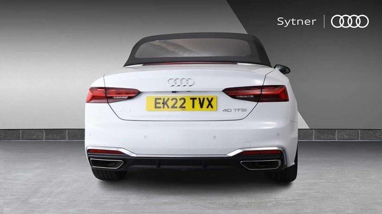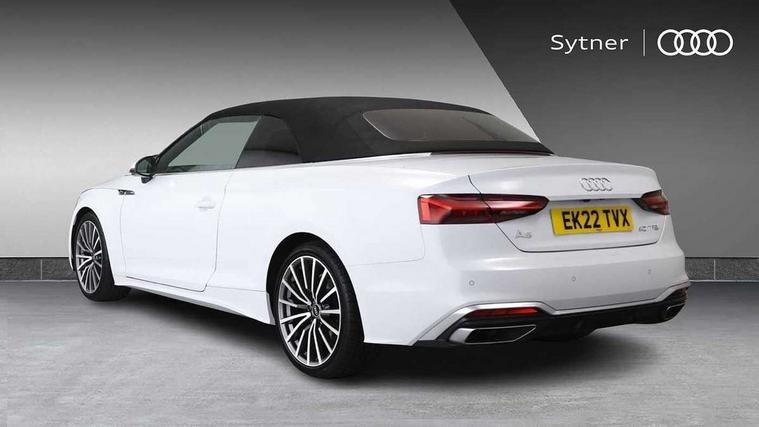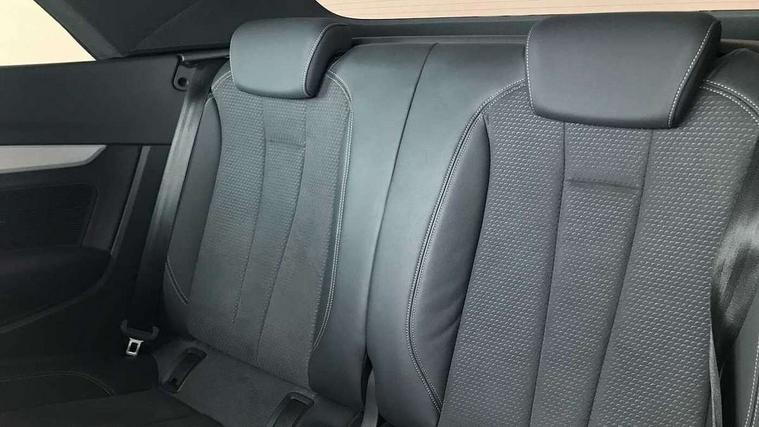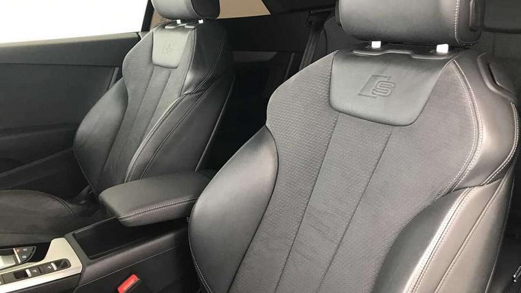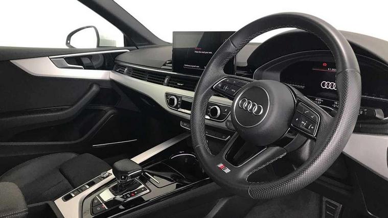 Matt brushed aluminium inlays, LED interior light pack - A5/RS5, Tyre repair kit, Anti theft alarm system, Anti theft wheel bolts, Immobiliser, Keyless Go, Remote central locking, 8 passive loudspeakers, CD player, DAB digital radio reception, Two additional USB ports for rear passenger in rear centre console, Two SDXC card slots, 2 x 3-point rear seat belts, 6 airbags - Driver, front passenger, curtain and side airbags, Electromechanical parking brake, Electronic Stabilisation Control (ESC) including ABS, ASR and EDL, Front passenger airbag deactivation, Height adjustable front seatbelts, Hill hold assist, Multi collision brake assist, Pop-up bonnet for pedestrian protection, Pre sense city, Seatbelt monitoring, Tyre pressure warning, Variable restraint system, Warning triangle and first aid kit, Audi matrix LED headlights with LED rear lights + dynamic front and rear indicators, Auto dimming rear view mirror, Body colour bumpers, Body colour door handles, Body colour front spoiler lip, Body colour side sill trim, Body coloured door mirrors, Electric adjustable heated door mirrors, Electric folding door mirrors, Electric front windows, Front fog lights, Honeycomb structure radiator grille in grained matt black, LED daytime running lights, LED third brake light, Matt aluminium silver tailpipe trim, Rain and light sensors, Rear side wing doors, S line badges on front wings, S line front and rear bumpers with side skirts, S Line rear diffuser in matt titanium black with trim strip in matt aluminium silver, Side air inlets in grained matt black with matt aluminium silver inlay, Variable front intermittent wipers, Windscreen with acoustic glazing, 4 way electric lumbar support for driver and front passenger, 50/50 split folding 2 seater rear bench seat, Adjustable steering column, Black cloth headlining, Black perforated leather gearknob, Contrast stitching on seats, steering wheel and gear lever gaiter, Deluxe 3 zone electronic climate control, Front centre armrest, Front head restraints, Front/rear floor mats, Heated front seats, Illuminated door sill trim with S logo, ISOFIX child seat mounting and top tether, Luggage compartment mat, Manual seat adjustment, Rear headrests, Single front passenger seat, Stainless steel pedals, Sunvisors with vanity mirrors, Tool kit, Audi connect safety and service (e-call), Audi connect with Amazon Alexa Integration, Audi drive select (Auto, Comfort, Dynamic, Efficiency and Individual), Audi parking system plus with front and rear sensors, Audi smartphone interface, Audi virtual cockpit - 12.3" full colour digital instrument cluster, vehicle/engine speed, Radio/media information+Driver assistance systems, Automatic start-stop system with coasting functionality and efficiency programme, Bluetooth interface, Electric boot lid release, Electro-mechanical power steering, Email, calendar and text messages displayed via MMI, MMI nav+ with MMI touch - 10.1" high resolution MMI display, touch sensitive, 3D map, route/country info, dynamic route guide, personal route assist, Rear view camera, Service interval indicator, Voice control system, Sports suspension lowered by 23mm,