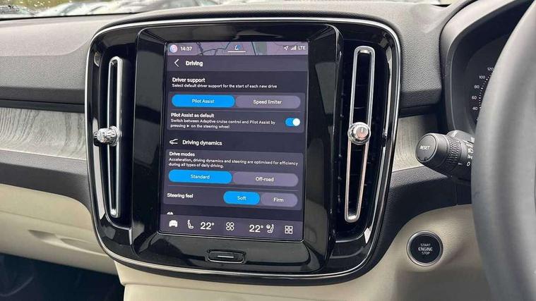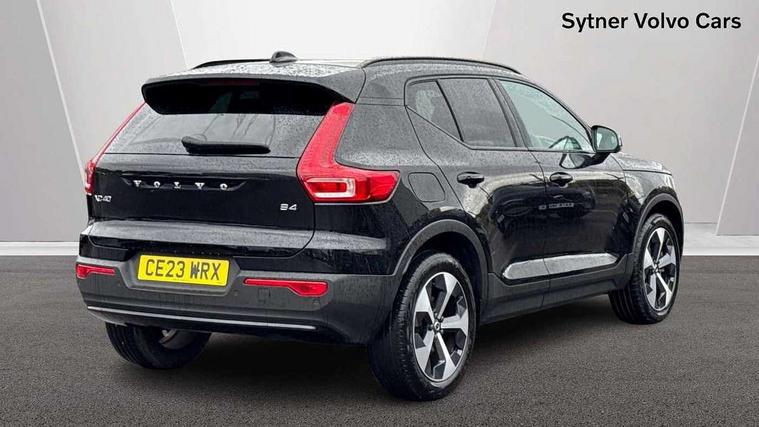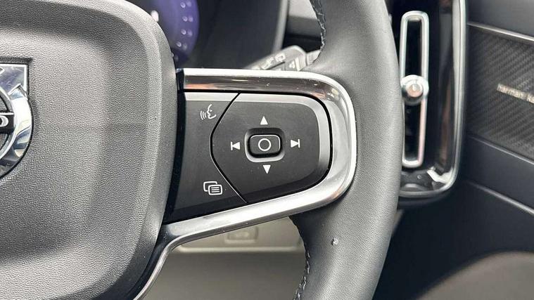 12.3" Progressive Driver Display, 360 degree surround view parking camera with side proximity sensors, 9" centre console portrait touch screen, Adjustable steering wheel force, Bluetooth hands free telephone kit, E-call, Front park assist, Google automatic services - Nav with google maps, apple carplay/android auto, voice recognition with google assistant, Hands free power tailgate, Lane keep assist with driver alert control, Oncoming Lane Mitigation, Rear park assist, Speed limiter, Speed sensitive steering, Wireless/Inductive Mobile Phone Charging, Dynamic chassis, DAB Digital radio, Premium Sound by Harman Kardon, Dolby Pro Logic II Surround Sound, Dirac Unison, 12 speakers/600W and subwoofer, Steering wheel mounted remote controls, Active bending pixel LED headlights with adaptive shadow technology, Active high beam incorporating daytime running lights, Adaptive brake lights with high level LED brake lights, Auto dimming interior mirror, Automatic headlamp levelling, Dark tinted windows for rear door side windows and cargo compartment, Front aluminium tread plates, Front and rear electric windows, Headlight cleaning system, High gloss black front and rear skid plate, High gloss black mesh front grille with high gloss black surround, High gloss black window trim, Home safe and approach lighting, Integrated roof rails in high gloss black, LED front fog lights, Power glass tilt and slide panoramic sunroof with sun curtain, Puddle lights, Rain sensor with automatic windscreen wiper activation, Rear side wing doors, Rear wiper, Roof antenna, Roof spoiler, Visible VIN plate, 12V socket in front tunnel console and luggage compartment, 2-Zone electronic climate control with CleanZone air quality system and pollen filter, 3 seat bench in 2nd row, 3 Spoke tailored steering wheel with chrome trim, 60/40 versatile split folding rear seat, A-pillar parking ticket holder, Ambient front door and instrumental panel lighting, Centre console cupholders and storage, Flexible load floor and grocery bag holder, Floor mats, Front door pocket and front cupholder illumination, Front footwell illumination, Front headrests, Front reading light and theatre lighting, Front seat cushion extensions, Front tunnel pocket, Glovebox bag hook, Heated front seats, Height adjustable passenger seat, Height/reach adjustable steering column, High gloss centre tunnel deco, Illuminated glovebox, Illuminated luggage compartment, Illuminated tailgate, Illuminated vanity mirrors, Integrated waste bin, Isofix attachments on outer rear seats, Load protection net, Multi directional lumbar support, Power driver seat with memory + exterior mirrors memory, Power folding rear headrests, Power passenger seat, Rear armrest / integral cup holders / storage tray, Rear reading and courtesy lights, Single front passenger seat, Underfloor cargo storage, Climate pack without heated front seats - XC40, Driver assist pack - XC40, 3x3 point rear seatbelts, City safety with steering support with Pedestrian + cyclist + front collision warning with full auto brake and rear auto brake, Drivers knee airbag, Dual stage driver/passenger airbags, Electronic parking brake with auto hold, First aid kit, Front and outer rear seatbelt reminder and pretensioners, Front seats SIPS airbags, Hill descent control, Hill start assist, Inflatable curtain, Passenger airbag cut-off device, Power child locks on rear doors, Road sign information display, Run off Road Mitigation, Run off Road Protection, SIPS (Side Impact Protection System), Slippery road and hazard light alert, Stability and Traction Control with Spin control, Engine Drag Control and Corner Traction Control, Tyre pressure monitoring system, Vehicle deceleration control with Anti-lock Brake System, Electronic Brake Distribution and Emergency Brake Assist, Warning triangle, WHIPS whiplash protection system - front, Anti-theft alarm including immobiliser/volume sensor + level sensor, Key integrated remote control central locking + fuel flap with deadlocking system and auto open/close power windows, Keyless drive includes keyless entry and keyless start, Locking wheel nuts,