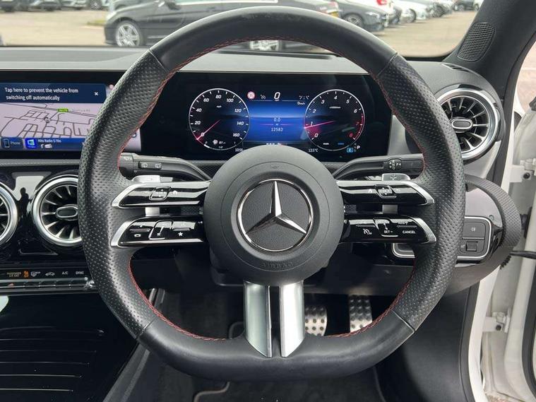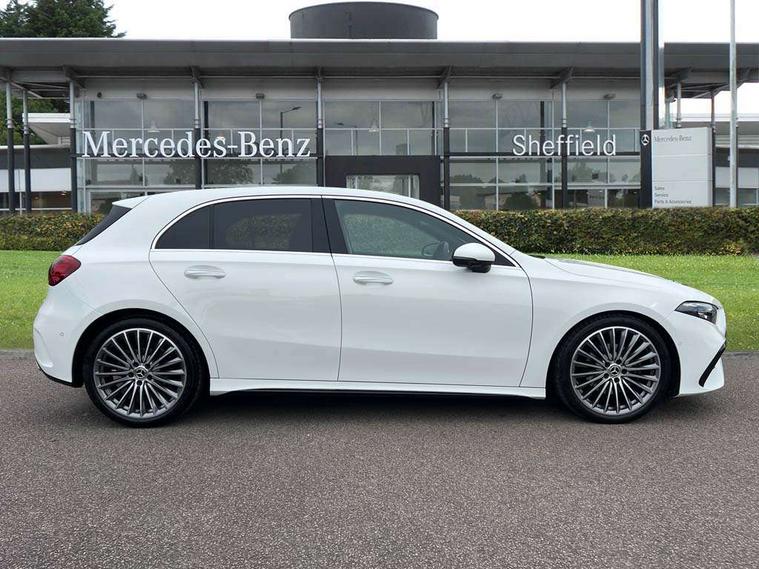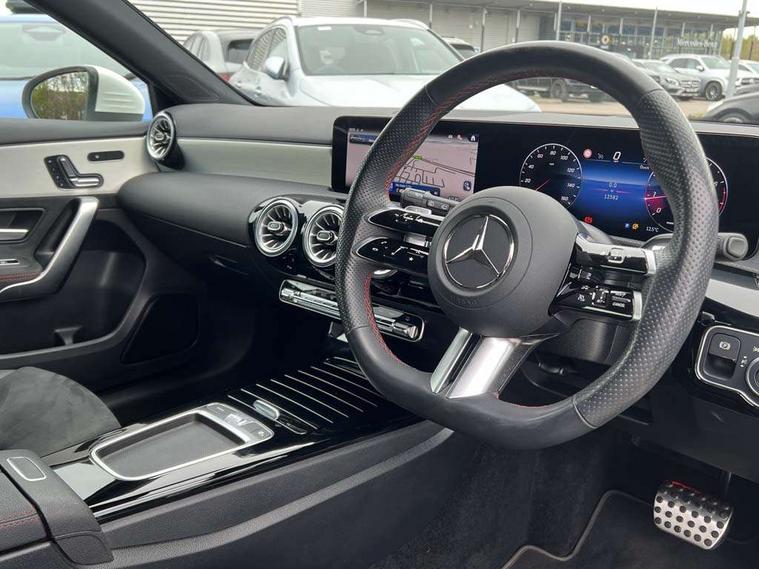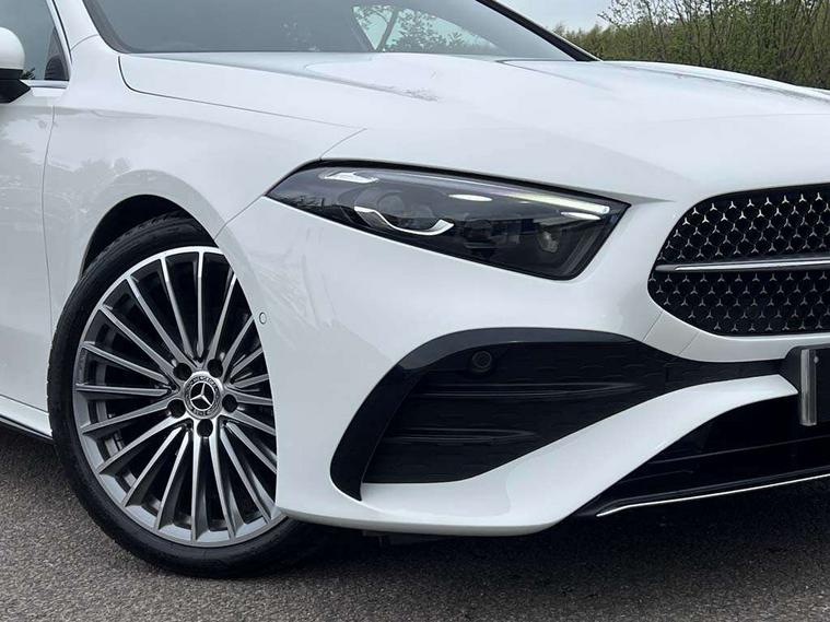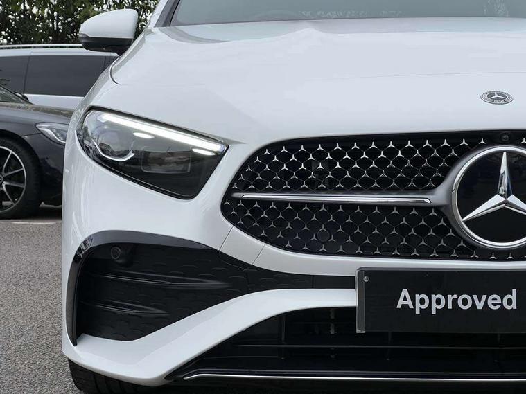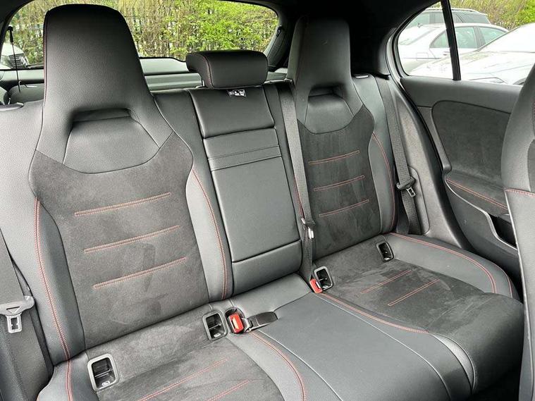 10.25 inch touchscreen central media display, 10.25" Digital instrument cluster display screen, Attention assist, Brake pad wear indicator warning light, Car wash mode, Direct steering, Direction indicators with lane change function, Dual bluetooth interfaces, DYNAMIC SELECT with a choice of driving modes (ECO, Comfort, Sport and Individual), Easy pack tailgate hands-free access, ECO start/stop function, Engine start/stop button, Fingerprint scanner, Fluid level warning indicator for fuel, oil, coolant and washer fluid, Fluorescent jacket for driver, Hard-disk navigation, Head up Display, Hey Mercedes Voice activation, Lamp failure indicator, Mercedes me connect including emergency call system, accident recovery, breakdown and maintenance management, Mercedes me remote services, Outside temperature gauge, Owners manual in English, Pre-installation of private car share, Preinstallation for Mercedes Benz link, Remote boot closing, Service indicator (ASSYST), Smartphone integration with Apple CarPlay and Android auto, Speed sensitive power steering, Tailgate, Traffic sign assist, Trip computer in multifunction display with current consumption indicator, Wireless charging, Lowered comfort suspension, DAB Digital radio, MBUX multimedia system, Mercedes Benz advanced sound system (225 W) with 10 speakers, 1 central speaker, speakers on doors, a tweeter on door, one sub woofer + boost amplifier, 4 Electric Front and Rear windows, Adaptive brake lights, AMG body styling - AMG front apron with front splitter and AMG rear apron and visible exhaust tailpipe trim elements, Body colour bumpers, Body colour door handles with chrome inserts, Body colour side skirt, Chrome beltline strips, Diamond radiator grille with pins in fine star pattern, Electric adjustable and heated door mirrors with integrated LED side indicators, Exhaust system with 2 visible tailpipe trim elements and rear apron, Headlamp assist automatic headlamp activation, Heat insulating dark tinted rear and rear side windows, Heated glass rear windscreen + timer control, LED daytime running lights, LED High level third brake light, LED tail lamp, Multibeam LED headlamps with adaptive highbeam assist and cornering function, Panoramic sliding sunroof, Privacy glass, Radio aerial, Rain sensing windscreen wipers with two sensitivity settings, Rear fog lights, Rear side wing doors, Rear windscreen wiper, 3 seat bench in 2nd row, 3 Spoke flat bottom leather multi function steering wheel with perforated leather in grip area, 40:20:40 split folding rear seats, Air conditioning - Two zone thermotronic luxury automatic climate control with display, AMG floor mats, Automatic child seat recognition sensor, Black air vents with surround in silver chrome, Black roof lining, Brushed stainless steel sports pedals with rubber studs, Electrically adjustable front memory seats including lumbar support and backrest inclination, Front centre armrest with stowage, Front seat backs luggage nets, Galvanished gear shift paddles on steering wheel, Height/reach adjustable steering column, Illuminated Mercedes Benz lettering front door sills with changeable cover, Interior lighting - 64 colour Ambient lighting, Interior mirror with reading lamps in black and frameless, Rear armrest with 2 cupholders, Seat occupancy sensor for front passenger seat, Single front passenger seat, Sports seats with integrated headrests, Stowage compartment in centre console with retractable cover, Sunvisors with illuminated vanity mirrors, Twin front cupholders, Light and sight package - A Class, Mirror package - A Class, Night pack - A Class Sport, Parking pack with 360 degree camera - A Class, Seat comfort pack - A Class, USB pack plus - A Class, Winter pack - A Class, 3 rear 3 point seatbelts, ABS with Brake Assist, Active bonnet, Adaptive brake assist with hold function and hill start assist, Bonnet with power domes, Childproof locks manually operated for rear doors and electrically operated for rear power windows, Crash responsive emergency lighting, Driver and passenger head and side airbags, Drivers knee airbag, Dual stage driver/passenger airbags, Electronic parking brake, ESP curve dynamic assist, ESP with ASR, Exit warning, Front and rear seatbelt reminder, ISOFIX and top tether child seat fixing points in two outer rear seats, Tyre pressure monitoring system, Warning triangle and first aid kit, Window airbags, Alarm system/interior protection/immobiliser, Guard 360 degree vehicle protection, Keyless entry lock/unlock, Keyless Go, Remote central locking and crash sensor with emergency opening function, Black seatbelts, Light longitudinal grain aluminium trim, 19" AMG multi-spoke light alloy wheels, aerodynamically optimised, painted in black with high sheen rim flange, Summer tyres, Tirefit sealant kit,