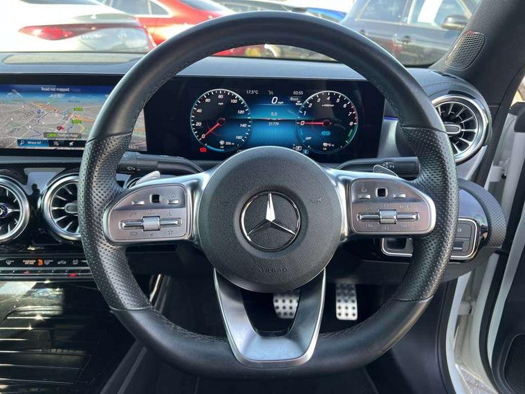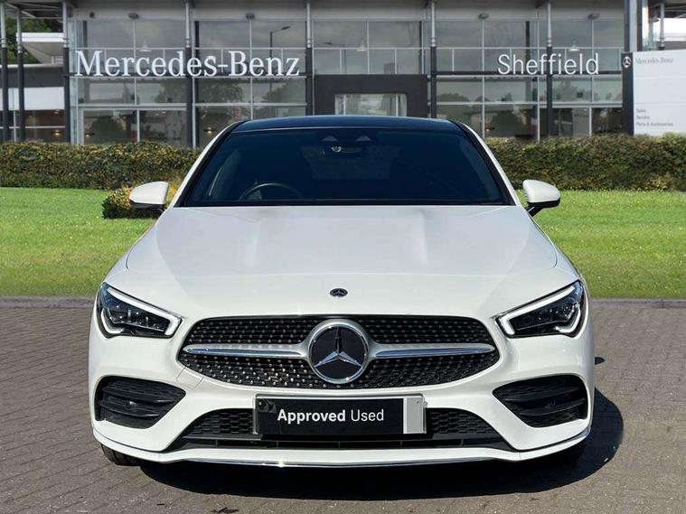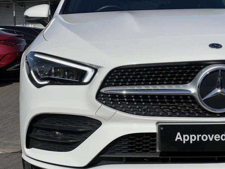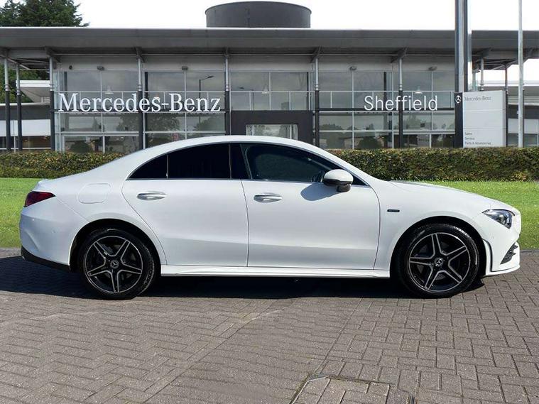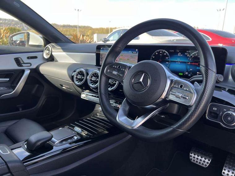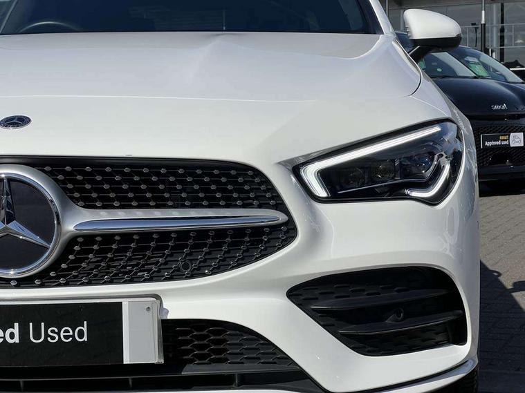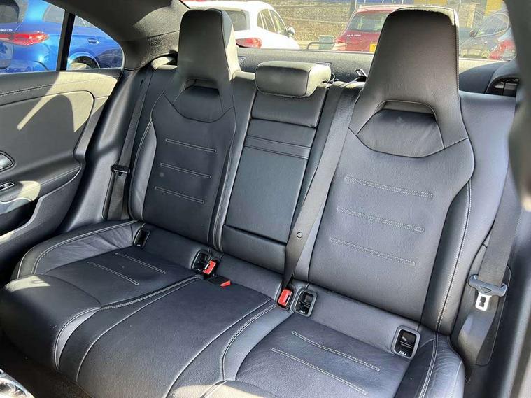 10.25 inch Instrument display with digital cockpit, 10.25 inch touchscreen central media display, Acoustic ambient protection, Attention assist - Monitors steering behaviour and long journey fatigue, Bluetooth connection, Car wash mode, DYNAMIC SELECT with a choice of driving modes (ECO, Comfort, Sport and Individual), ECO start/stop function, Fluid level warning indicator for fuel, oil, coolant and washer fluid, Hard-disk navigation, Hey Mercedes Voice activation, Lamp failure indicator, MBUX augmented reality for navigation, Mercedes me connect including emergency call system, accident recovery, breakdown management and maintenance, Mercedes me remote services, Outside temperature gauge, Owners manual and service booklet in English, Pre-installation for remote and navigation services, Pre-installation of private car share, Preinstallation for Mercedes Benz link, Radio aerial integrated into front and rear windshields, Remote and charging services plus, Service indicator (ASSYST), Smartphone integration with Apple CarPlay and Android auto, Traffic sign assist, Trip computer in multifunction display with current consumption indicator, Wireless charging, 4m charging cable for wall box/charging stations, 7.4 kW onboard charger, Comfort suspension, Lowered comfort suspension, Rear axle multi-link, DAB digital radio tuner, MBUX multimedia system with DAB digital radio and touchpad including satellite navigation, Mercedes Benz advanced sound system (225 W) with 10 speakers, 1 central speaker, speakers on doors, a tweeter on door, one sub woofer + boost amplifier, USB (type C) ports (2) in stowage compartment and 1 in front of centre console, Adaptive brake lights, AMG body styling with AMG front apron and rear apron and visible exhaust tailpipe in chrome trim elements, AMG bodystyling side skirts, Body colour bumpers, Body colour door handles, Chrome beltline strips, Chrome weather strip, Diamond radiator grille pins in chrome with silver painted louvres and chrome insert, Electric panoramic sliding sunroof, Electric windows, Electrically adjustable and heated door mirrors with integrated LED indicators, EQ badging, Exhaust system with 2 Visible tailpipe trim elements and rear apron with trim in chrome, Headlamp assist automatic headlamp activation, Heated glass rear windscreen + timer control, High level LED third brake light, Integrated LED daytime running lights, Interior mirror with black reading lamps and frameless, LED tail lamp, Multibeam LED headlamps with adaptive highbeam assist plus, Privacy glass with dark tinting on rear side windows and rear window, Rain sensing windscreen wipers with two sensitivity settings, Rear fog lamp, Window line trim strip in chrome, 3 Pin charging cable, 3 spoke flattened bottom nappa leather multifunction steering wheel with perforated leather in grip area, 40:20:40 split folding rear seats with backrest, Air conditioning - Two zone thermotronic luxury automatic climate control with display, Air vents with surround in silver chrome, Automatic child seat recognition sensor, Black roof lining, Brushed stainless steel sports pedals with rubber studs, Charging socket, Electrically adjustable front memory seats including lumbar support, Floor mats with stitched AMG lettering, Front centre armrest with stowage, Galvanished gear shift paddles on steering wheel, Heated front seats, Illuminated front door sills with changeable cover, Illuminated glove compartment stowage, Interior lighting - 64 colour Ambient lighting, Luggage net on driver/front passenger seat backrest, Manually height and reach adjustable steering column, Pre-entry climate control, Rear armrest with two integral cup holders for drinks, Rear head restraints, Sport seats with fixed head restraints, Stowage compartment in centre console with retractable cover, Sunvisors with illuminated vanity mirrors, Touchpad on center console, Twin front cupholders, Two outer rear seat isofix and top tether child seat fixing points, Keyless go pack - CLA, Light and sight pack - CLA, Mirror pack - CLA, Parking package - CLA, Seat comfort pack - CLA, Active bonnet pedestrain safety measure which detects an impact and raises bonnet by 65mm, Adaptive brake assist with hold function and hill start assist, Anti-lock braking system (ABS), Black seat belts, Bonnet with power domes, Brake pad wear warning indicator, Childproof locks manually operated for rear doors and electrically operated for rear power windows, Crash responsive emergency lighting, Driver and front passenger head and sidebags, Driver and front passenger windowbags, Drivers knee airbag, Dual stage driver and front passenger airbags, Electric parking brake, Electronic stability programme with acceleration skid control, ESP curve dynamic assist, Front and rear seatbelt reminder, Front passenger seat occupancy sensor, Perforated front brake discs, Radar-based recuperation, Three point rear seat belts, Tyre pressure monitoring system, Warning triangle and first aid kit, Remote central locking and crash sensor with emergency opening function, Urban guard vehicle protection system with immobiliser and interior protection, Light aluminium with longitudinal grain interior trim, 18" 5 twin spoke design alloy wheels painted in titanium grey with high sheen finish, Summer tyres, Tirefit tyre sealant kit,