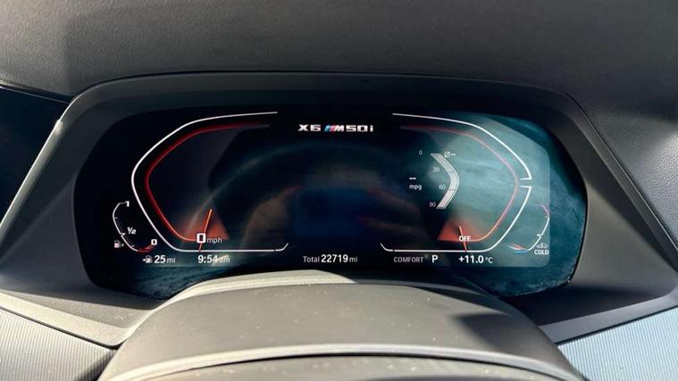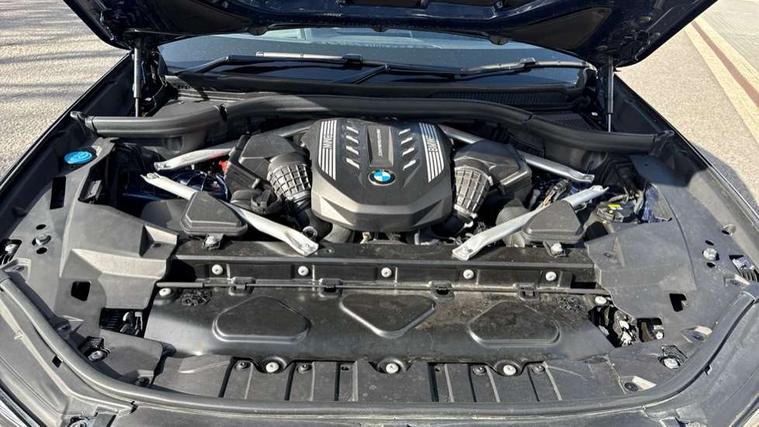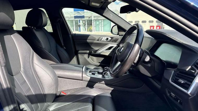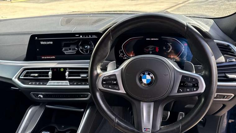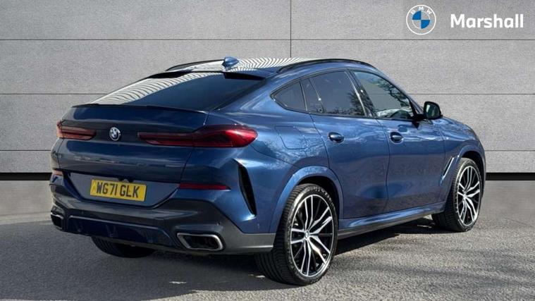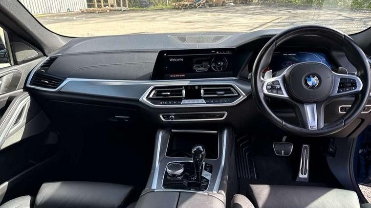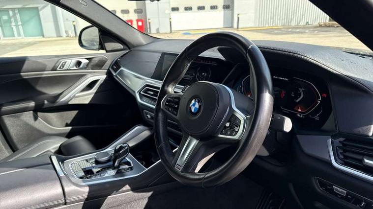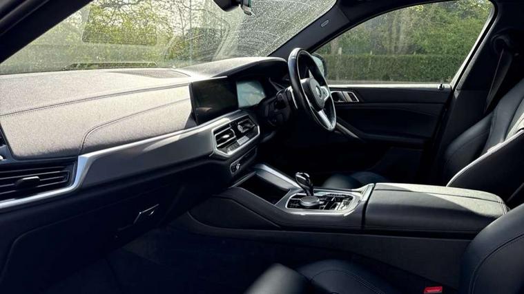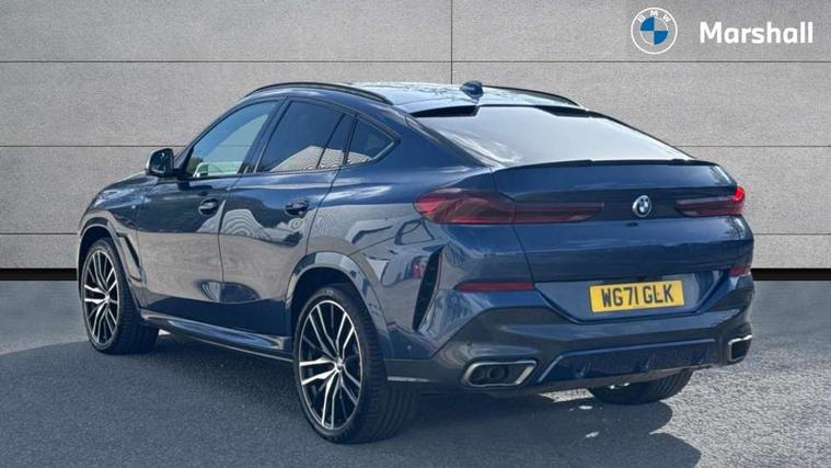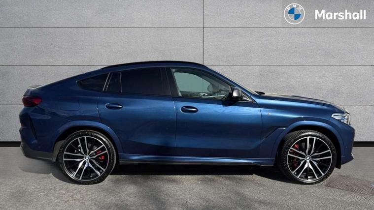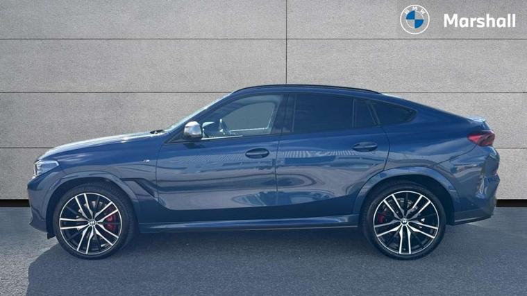 50GB hard disc drive (HDD) memory, Active guard plus, Attentiveness assist, Automatic tailgate two part with top hinged section open and manual bottom hinged section, BMW ConnectedDrive online services, BMW digital live cockpit professional - 12.3" digital instrument panel and 12.3" CID, with touch/voice command, BMW legal emergency call, BMW Teleservices, Brake force display, Brake pad wear indicator warning light, Enhanced bluetooth with wireless charging, Front/rear park distance control (PDC), iDrive touch controller with shortcut buttons, Lights on warning, Oil sensor for level and grade, On board computer inc. average speed, fuel consumption, liquid crystal Info display, journey computer, outside temperature display, personal profile, Service interval indicator, Speed limit info display, Speed limiting function, Wifi hotspot preparation, Double VANOS, Double wishbone front axle, Drive performance control with ECO PRO comfort + sport mode, Eight speed steptronic sport automatic transmission and gearshift paddles on the steering wheel, High precision injection, M Sport differential, Petrol Particulate Filter, Safety battery terminal clamp, Twin scroll turbocharger with Valvetronic, DAB Tuner enables digital radio reception, Favourite buttons, USB connection, USB type A 1.5A in cupholder, USB Type C 3A in centre armrest, Adaptive air flap control bar in high-gloss black, Automatically dimming rear view mirror, BMW individual exterior line aluminium satinated window frame and window guide rail in front door/pillar trim/door mirrors in high gloss black, Body colour bumpers, Body colour door handles, Cerium grey kidney grille, Cerium grey M badge on left and right side panels, Cerium grey M50i badge on right tailgate, Cerium grey side gill, Dynamic brake lights with LED technology, Exhaust tailpipes - single, left and right in Cerium Grey, Follow me home headlight function, Front and rear electric windows with open and close fingertip control, anti trap facility and comfort closing, Heated windscreen washer jets, High beam assistant, High gloss black outer and central air intakes on front bumper with pearlescent chrome finish, High gloss black Side elements, LED daytime running lights, LED rear lights, M aerodynamic body styling, M Sport exhaust system, Rain sensor with automatic headlight activation and windscreen wiper control, Satin aluminium side window graphic, Sun protection glazing, Third brake light in rear spoiler, Welcome light carpet, X6 on left tailgate, xDrive designation on right tailgate, 12V - Power sockets with 2x centre console and 1x luggage compartment, 40:20:40 split folding rear seats, Centre and rear interior light, Child seat ISOFIX attachment with rear outer seats includes top tether, Compartment in front of cupholder, Electrical steering column with adjustable height and length with activation and control on the steering column, Foldable rear centre armrest with 2 cupholders and storage compartment, Front and rear cupholders x 2, Front and rear door pockets, Front and rear door sill finishers with illuminated M50i designation, Front and rear side armrest integrated into door trim, Front reading lights, Light inside glove compartment, Lockable glove compartment, Luggage compartment floor panel with integral storage tray, Luggage compartment lighting, M specific key, M specific pedals, M specific velour floor mats, M sport leather steering wheel, Make-up mirror lights, Multifunction controls for leather steering wheel, Multifunctional hooks, Rear head restraints, Seat back with flap pocket, Storage tray and compartment with cover in centre console, Sunvisors with illuminated vanity mirrors, Toolkit located in luggage compartment, Ambient light interior pack - X6, Connected Package Professional - X6, Expanded exterior mirror pack with electric folding door mirror - X6, Non-smokers pack - X6, 3 rear seatbelts, Active protection, Airbags - driver/front passenger, rear and side, first and second row seats head airbags, front passenger seat airbag deactivation + knee airbag, Anti-lock braking system (ABS), Automatic Stability Control (ASC), Brake drying, Brake energy regeneration, Brake fade compensation, Braking pre-tensioning, Cornering brake control (CBC), Crash sensor activating central locking release, hazard warning lights, fuel cut off, interior lighting + activation of safety battery terminal clamp, Deformation zones - front and rear with door reinforcements and bumpers up to 2.5 mph, DSC - Dynamic Stability Control, Dynamic brake control, Dynamic Traction Control - DTC, Electromechanical parking brake with automatic drive away release and auto hold function, Electronic brake force distribution, Front and rear brake discs with interior ventilation, Front and rear seatbelts with seatbelt stopper, seatbelt tensioner for front and outer rear seats and belt force limiter, Front head restraints with anti-whiplash, Hill start assistant, Integrated brake system, M Sport braking system, M sport seatbelt, Mechanical child proof lock on rear doors, Passive protection for pedestrians, Seat occupancy detection for driver and passenger side, Side impact protection, Two tone horn, Tyre pressure monitoring system, Warning triangle and first aid kit, Closing system with central locking, Driver and front passenger door centre lock switch, Locking wheel bolts, Thatcham 1 alarm system with remote control and engine immobiliser, Start/stop toggle diamond shaped trim finisher in pearl chrome,