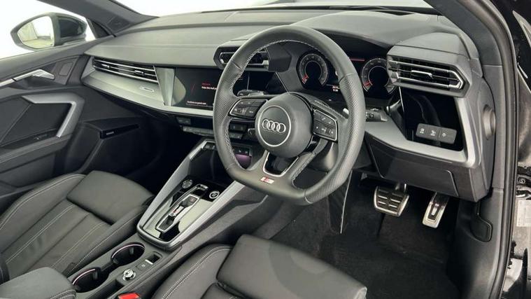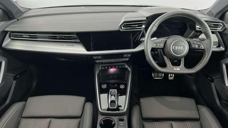 Adjustable speed limiter, Audi drive select, Audi smartphone interface with app store includes wireless Apple carplay, Android auto and Amazon alexa integration, Audi virtual cockpit plus - 12.3" full HD resolution dynamic digital instrument cluster, Automatic start/stop system with recuperation, Bluetooth interface, Camera based traffic sign recognition, Collision avoidance assistant, Cruise control, Distraction and Fatigue warning, e-Call (emergency call), Electromechanical power speed sensitive steering, Emergency assist, Lane departure warning system, MMI Navigation Plus with high resolution 10.1" colour touch screen display, Park Assist with parking system Plus, Service indicator, Trip computer, Voice control system with natural language interaction, Sports suspension, Audi Phonebox light with wireless charging, Audi sound system - 10 loudspeakers including centre loudspeaker and subwoofer, DAB Digital radio, USB ports with charging function in the rear, Acoustic glass windscreen, All weather light, Aluminium window trim, Auto dimming frameless rear view mirror, Automatic dynamic range control, Body colour exterior mirrors, Chrome exhaust tailpipes, Dipped beam, main beam, position light and turning light, Electrically adjustable/heated/folding/auto dimming door mirrors with integrated LED indications + kerb view function for passenger side, Exterior model badging, Front and rear side air inlets in grained matt black with dark liquid chrome frame, Front electric windows, Front radiator grill in high gloss dark chrome, Heat insulating glass windscreen, Illuminated door sills with aluminium inserts at the front with S logo, Intersection light, LED 3rd brake light, LED brake lights, LED daytime running x3, LED headlights with LED rear lights and dynamic rear indicators, LED rear number plate lights, LED reverse light, LED tail lights, Light and rain sensors, Manoeuvring light, Motorway light, Privacy glass - dark tinted rear window, rear door and side windows, Rear boot, Rear diffuser and grill in grained matt black with inlay in dark liquid chrome, Rear electric windows, Rear side wing doors, S line bumpers, Side S line emblems on front wings, Side sill trim in dark liquid chrome, Static cornering light, 12V socket and storage compartment in front centre console, 3 seat bench in 2nd row, 3 spoke flat bottomed leather multifunction sport steering wheel with gear shift paddles, 3-zone deluxe automatic air conditioning, 4 way electrically adjustable lumbar support for driver and front passenger, 40/20/40 split folding rear seat bench, Black cloth headlining, Black front and rear floor mats, Front and rear centre armrest in artificial leather with contrasting stitching on armrests and instrument panel, Front and rear headrests, Heated front seats, Height and reach adjustable steering wheel, Manual boot compartment lid, Manually adjustable front seats, Rear centre armrest with cupholder, S badging on the steering wheel, Seat side bolsters, Single front passenger seat, Stainless steel pedals and front footrest in black, Twin leather upholstery with front sports seats S embossed logo, Aluminium interior elements pack - A3, Multi-coloured LED interior lighting package with Multi-coloured contour lighting of instrument panel - A3, 3x3 point rear seat belts, Driver and front passenger airbag with passenger airbag deactivation, Electronic Stabilisation Control (ESC) including ABS, ASR and EDL, First aid kit with warning triangle and 2 safety vests, Front side airbags with head airbags and interaction airbag, Hill hold assist, Pre-sense front with pedestrian and cyclist detection, Seatbelt monitoring, Tyre pressure loss indicator, Anti theft alarm, Anti-theft wheel bolts, Electronically operated child locks, Immobiliser, Remote central locking with safelock, Black dashboard, Inlay in dark aluminium spectrum,