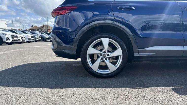 Adaptive cruise control, Advanced driver attention alert, Audi application store, Audi connect emergency call and service, Audi drive select, Audi smartphone interface, Audi virtual cockpit plus with 11.9" OLED colour display, Camera based traffic sign recognition, Fatigue monitor, Front cross traffic intersection assist, Lane departure warning system, MMI navigation plus with high resolution 14.5" OLED touchscreen colour display, Park assist plus, Parking system plus with 360 display, PAS, Reversing camera, Traffic sign based speed limiter, 2 USB-C ports in both the front and rear, Audi sound system impressive sound with 8 loudspeakers including centre speaker and subwoofer, 6-channel amplifier with a total output of 180 watts, DAB Digital radio, Smartphone compartment with wireless charging, Aluminium roof rails, Auto dimming rear view mirror, Body coloured door mirrors, Coming/leaving home lighting function, Electrically adjustable heated and folding + automatically dimming exterior mirrors, Front and rear electric windows, Front door sill trims with aluminium inlays, illuminated with 'S' logo, Grill frame, inlay and front air inlets in matt anthracite chrome, Headlight cleaning system, Heated rear window, High beam assist, High gloss window surrounds, LED headlights plus incl. digital DRL, dynamic coming and leaving home function with turning/all weather/motorway/manouevring and intersection lights, LED rear lights pro incl. dynamic rear indicators and illuminated light strip with animated coming and leaving home function, Logo projection light in exterior mirrors, Privacy glass, Projection third brake light for rear window in LED, Radiator grille in phantom black, Rear and side windows with heat insulating glass, Rear honeycombe grille in matt black with inlay in matt anthracite chrome, Rear side wing doors, Rear wash/wipe, S Line badge on the front wings, S line bumpers in contrasting Volcano grey metallic paint finish, Towbar preparation, Windscreen with acoustic glazing, 3 rear head restraints, 3 seat bench in 2nd row, 3 spoke leather steering wheel with multi-function buttons with touch control, flattened on top and bottom, with S badging and contrast stitching, Comfort centre armrest front, Deluxe 3 zone electronic climate control, Front and rear floor mats, Front sport seats with integrated head restraints, Headlining in black cloth, Heated front seats, i-Size child seat mounting on the front passenger side and outer rear seats, i-Size and top tether on the outer rear seats, Interior trim in aluminium look, Luggage compartment lid, electrically opening and closing, Manual steering column adjustment, S embossed logo on front sport seats, Single front passenger seat, Softwrap in leatherette, Stainless steel pedals and footrest, Steering wheel grips in perforated leather and shift paddles, Ambient lighting package plus - Q5, 3x3 point rear seatbelts, ABS, Acoustic vehicle alerting system, Convenience key with safelock, Driver and front passenger airbag with passenger airbag deactivation, Electric child safety locks, First aid kit with warning triangle and high visibility vests, Front emergency brake assist, Front side airbags with head airbag system and front interaction airbag, Hill hold assist, Rear seat occupant reminder, Tyre pressure loss indicator, Anti theft alarm, Anti-theft wheel bolts, Accent surfaces and control buttons in gloss black, Anthracite matt brushed aluminium inlays with linear embossing, Black dashboard with contrast stitching, Upper and lower interior elements in artificial leather, Tyre repair kit,
