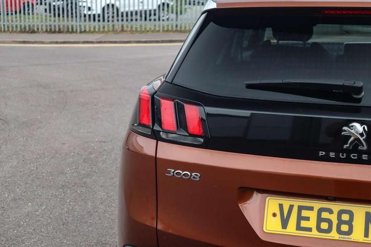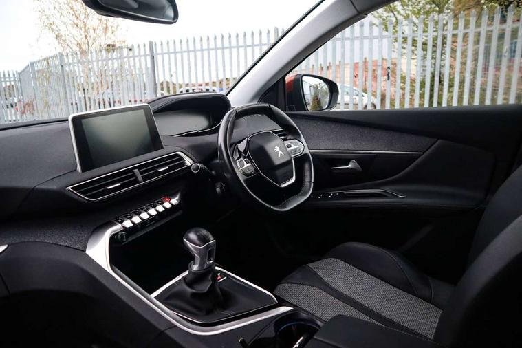 'Lights On' Reminder warning buzzer, 3D connected navigation + voice control + Peugeot connect SOS and assistance, Bluetooth telephone facility, Digital clock, Exterior temperature indicator with ice warning, Front and rear parking sensors, Lane departure warning system, Mirror screen with mirror link, apple carplay and android auto, Multi function trip computer, PEUGEOT i-Cockpit with 8.0" capacitive touchscreen in centre console, PEUGEOT i-Cockpit with compact sports steering wheel, PEUGEOT i-Cockpit with configurable 12.3" Head-up digital instrument panel, Speed limit recognition and recommendation, Dynamic stability control and electronic anti-skid system, DAB Digital radio, Steering column mounted multifunction controls, USB socket, 2 X Rear number plate lights, Aluminium longitudinal roof bars, Automatic hazard light activation upon heavy brake application, Automatic triggered rear windscreen wiper in reverse gear, Black and chrome front wing trim, Black bumper protection plate, Black rubber side window trim, Body colour door handles, Body colour door mirror shells, Body colour rear spoiler with stainless steel edging trim, Body coloured bumpers, Body protectors (bottom of front and rear bumpers + wheel arches + protection at bottom of doors) in black, Chrome bumper inserts, Chrome front fog light trim, Chrome radiator grille and surround, Chrome rear bumper facia, Dark tinted rear side windows + tailgate window, Door mirror mounted LED courtesy approach lights, Electric operated/heated door mirrors, Front windscreen wiper with magic wash cleaning system, Gloss black finish B and C pillar, Gloss black rear cluster connecting strip, Gloss black windscreen surround, Halogen headlights, Headlights left on audible warning, Heated rear windscreen with integrated antenna, LED daytime running lights, LED sequential scrolling front indicators, LED side indicator lights integrated into door mirrors, Lion grey front bumper scuff plate, One touch electric front/rear windows with pinch protection, Power folding door mirrors with blind spot detection indicator and auto dipping function in reverse gear, Radiator grille in chrome edge trim and facets, Rear LED Peugeot signature 'Claw Effect' lights, Stainless steel roof arches, 1/3 to 2/3 split folding rear seats, 12V Sockets in dashboard, rear cabin and load area, 2 cupholders in front centre console, 2 rear reading spotlights, 2x Rear coat hooks, 3x Isofix child seat fittings in the front passenger and outer rear seats, 4 Grab handles retractable and damped, 4 Lashing eyes in boot, Blue ambient lighting for connecting zone, Blue ambient lighting to front door panels, central storage and cupholders, Blue ambient lighting to head up instrument panel, Centre front armrest with butterfly wing opening and illuminated storage compartment, Driver and front passenger seat height adjustment, Driver seat manual adjustment, Dual zone automatic climate control, Electric power steering with reach and rake adjustable steering column, Fixing rings 4 in load compartment, Flocked glovebox interior, Fold flat front passenger seat with picnic table, Footwell illumination, Front headrests, Front interior light with 2 reading spotlights and rear interior light with timer, Front seat back map pockets, Gear shift indicator, Height adjustable headrests, Illuminated glovebox, Illuminated vanity mirrors, Mistral full grain leather steering wheel, Rear armrest with ski flap and two cup holders, Rear centre console ventilation system, Rear headrests, Reclining front seats, Roof LED interior lighting, Roof lining - Salin light grey, Satin chrome dashboard trim, Satin chrome digital instrument panel and touchscreen trim, Satin chrome front door panel recess trim, Satin chrome gear lever, Satin chrome interior door handles, Satin chrome scorpion's tail and toggle switch trim, Seatbelt not fastened audible and visual alert for front seats, Seatbelt unfastened on the move audible and visual alert for front and rear seats, Two position boot floor, Safety pack - 3008, Safety Plus Pack - 3008, Visibility pack - 3008, 3x Rear three-point retractable seatbelts with force limiters in the outer rear seats, Adaptive driver and front passenger airbags with passenger airbag deactivation function, Anti-lock braking system with electronic braking distribution and emergency braking assistance, Auto city emergency braking, Driver and front passenger side airbags, Driver SMART airbag, Electric child locking functionality on rear windows and doors, Electric parking brake, ESP with ASR, Front and rear curtain airbags, Front optimised safety headrests and 3 x rear retractable headrests with height adjustable, Front passenger SMART airbag with deactivate switch, Front three point retractable seatbelts with pre tensioners and force limiters, Front ventilated disc brakes and rear disc brakes, Height adjustable front seatbelts, Hill start assist, Tyre pressure sensor, Anti theft alarm, Automatic door lock/re-lock after 30 seconds, Central locking button on dash, Deadlocks, Electronic immobiliser, Locking wheel bolts, Remote control central locking with two plip keys, Brumeo fabric Dashboard, front and rear door panel finish, Satin chrome dash trim, Satin chrome instrument dial surrounds,