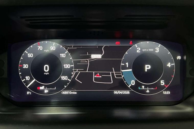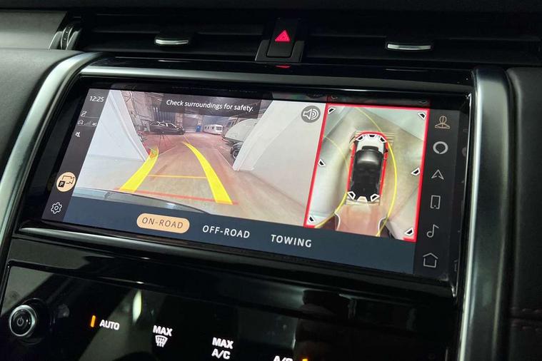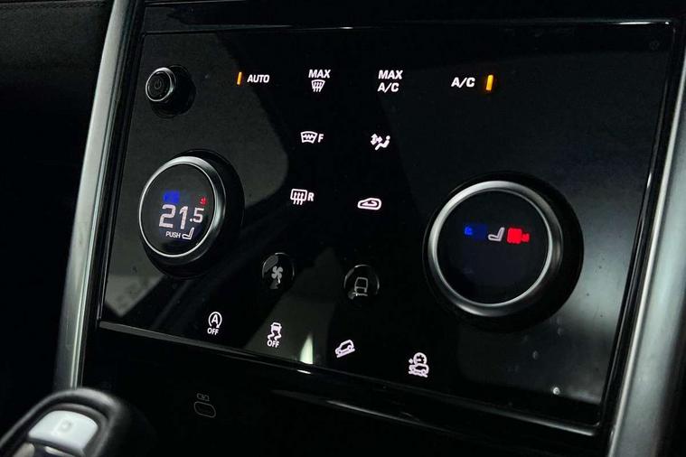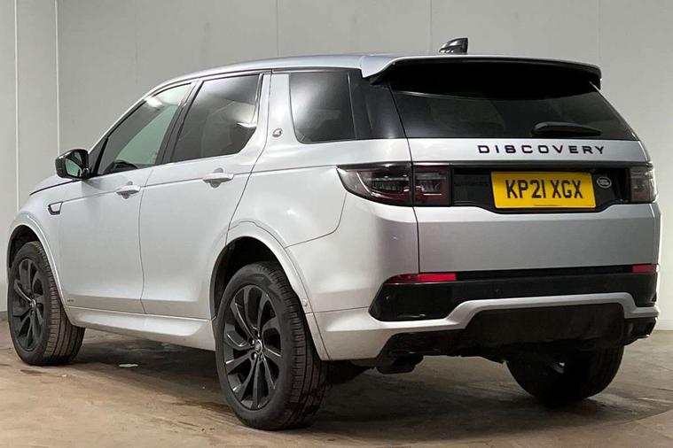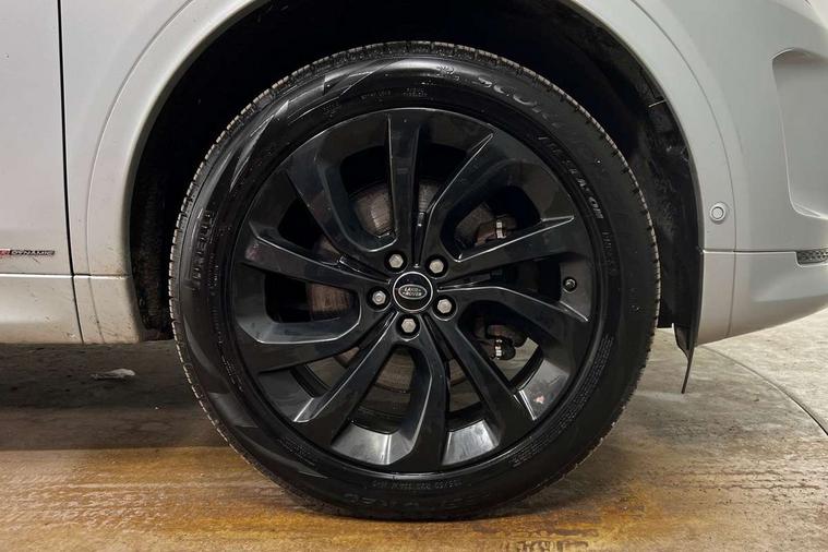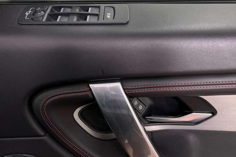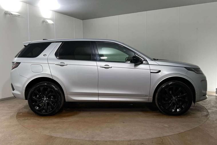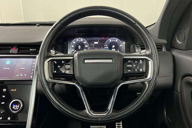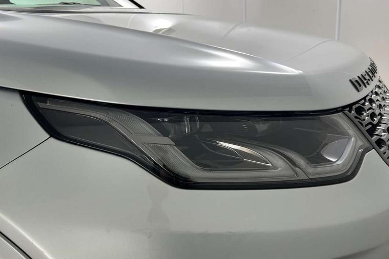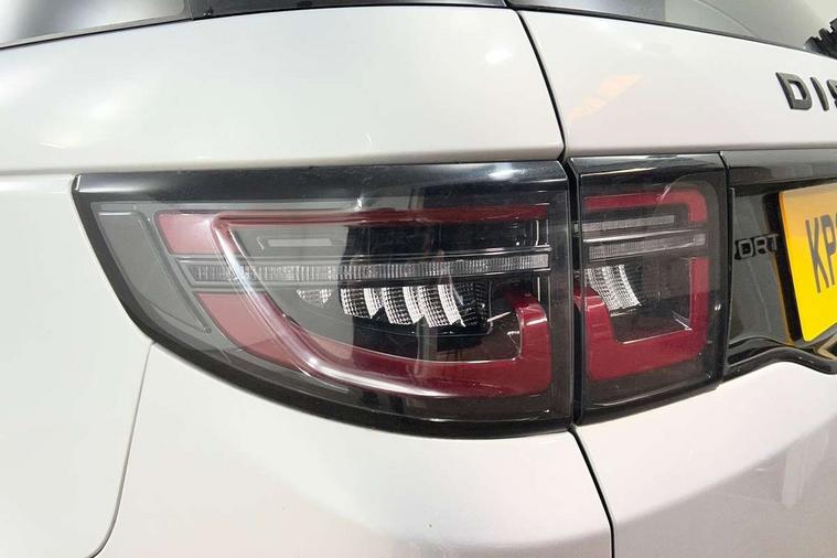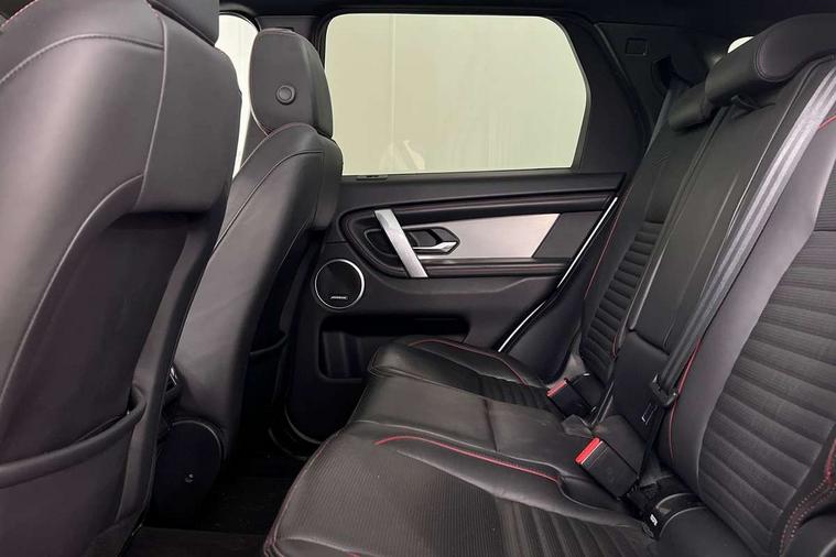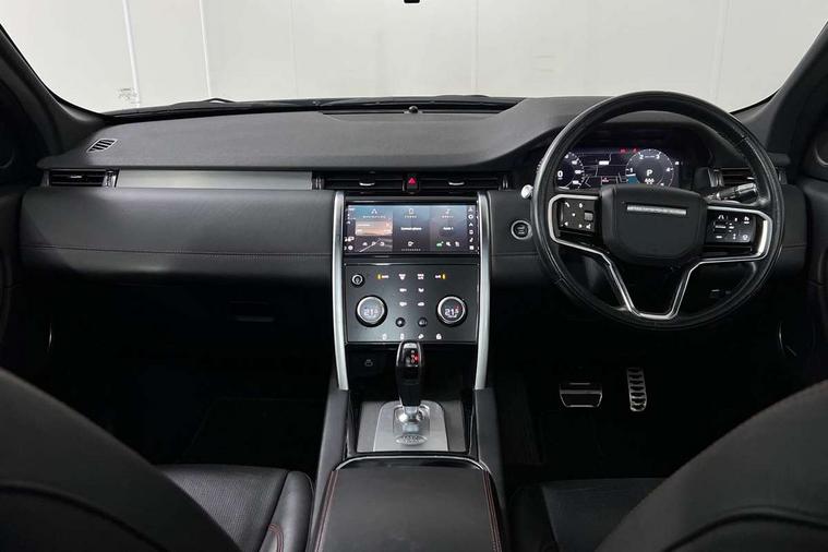 Centre stack rails in noble chrome, Black exterior pack - Discovery sport, Online pack - Discovery sport, Battery Back Up System (BBUS) with tilt sensor, Intrusion sensor, Keyless entry, Locking wheel nuts, Bluetooth connectivity including audio streaming, Digital Audio Broadcast radio-DAB, Steering wheel mounted audio controls, 3 point seatbelts on all seats, ABS, Brake hold function, CBC - (Cornering brake control), Collision mitigation braking system, Driver/Front Passenger airbags, Drivers knee airbag, Electronic brake force distribution, Electronic parking brake, Emergency brake assist, ESP + traction control, Hill descent control, Hill launch assist, Pedestrian airbag system, Rear seat ISOFIX, Side and curtain airbags for front and 2nd row seats, Trailer stability control, Tyre pressure monitoring system, Automatic headlight levelling, Automatic headlights, ClearSight interior rear view mirror, Door mirror memory, Electric front/rear windows, Fixed panoramic sunroof with powered sunblind, Illuminated metal front tread plates with R dynamic branding, Power fold, auto-dimming, heated door mirrors with approach lights, Rain sensing windscreen wipers, Rear fog lights, Rear side wing doors, Rear wiper, Bright metal pedals, Centre console with armrest, Front passenger isofix child seat attachment, Perforated full leather steering wheel, Rear headrests, Satin chrome gearshift paddles, Sunvisors with illuminated vanity mirrors, Third row dual adjustable individual seats, Tilt/reach adjustable steering wheel, 10" touch screen, 3D Surround Camera with 360 View, 180 Rear View, Front Traffic Detection, Forward Vehicle Guidance, Tow Hitch Assist and clear sight Ground View, Adaptive cruise control, Android Auto, Apple CarPlay, Blind spot assist, Clear exit monitor, Driver condition monitor, Front and rear parking aid, InControl remote premium, Interactive driver display, Lane keep assist, PAS, Pivi Pro connected navigation system with upgraded Infotainment, Powered tailgate/boot lid, Rear collision monitor, Rear traffic monitor, Rear view camera, Service interval indicator, Traffic sign recognition with adaptive speed limiter, Trip computer, Wade Sensing, All terrain progress control, Coil suspension system, Diesel particulate filter, Terrain Response 2,