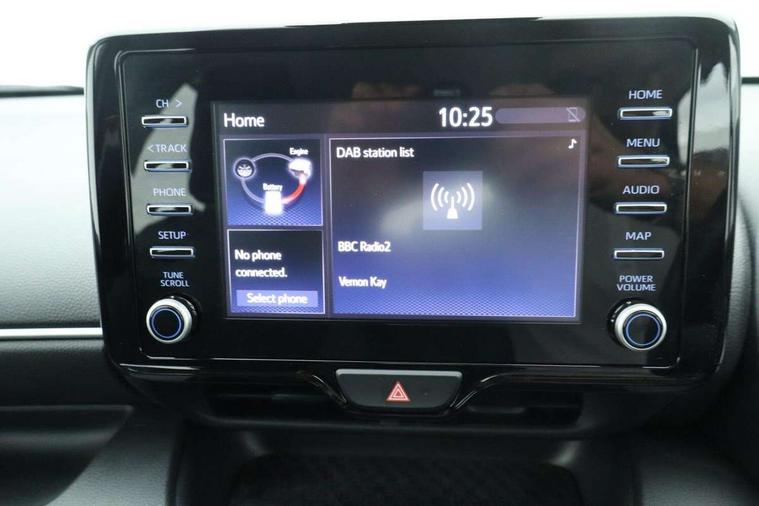 4.2" coloured TFT multi information display with analogue speedometer, Adaptive cruise control, Adjustable speed limit with speed warning, Bluetooth connectivity, E-call, Electric power steering, Hybrid energy display, Multi information display switches on steering wheel, Reversing camera, Smartphone integration with Apple CarPlay and Android auto, Tailgate, Voice recognition, Vehicle Stability Control (VSC), 4 speakers, 7" Multimedia display touch screen, Toyota Touch 2 with DAB, USB connection, Acoustic windscreen glass, Auto windscreen wipers, Automatic headlights, Body coloured door mirrors, Bulb indicators, Chequered front grille, Daytime running lights, Electric adjustable heated door mirrors, Follow me home headlights, Front auto power windows with anti jam protection, Halogen projector headlights, LED High mounted stop lamp, Manual headlight levelling, Rain sensor, Rear side wing doors, Rear spoiler, Rear wiper, Shark fin antenna, Turning signal integrated indicators in door mirrors, Variable front intermittent wipers, 3 adjustable rear headrests, 3 seat bench in 2nd row, 3 spoke leather steering wheel, 60/40 split folding rear seat, Active headrests, Adjustable boot height, Auto air conditioning, Coat hooks in rear grab handles, Cup holders (2 front & door), Data Communication Module (DCM) connected services, Fabric upholstery, Front armrest, Glovebox, Grey roof lining, Height adjustable driver's seat, Isofix seat fixing, Leather gearshift, Pollen filter, Shopping bag hooks, Single front passenger seat, Tilt/telescopic steering column, 3 point seatbelts on all rear seats, ABS+EBD+Brake assist, Electronic parking brake, Emergency brake light system (EBS), Front passenger airbag on/off switch, Front seatbelt reminder, Hill start assist control (HAC), Rear child proof door locks, Rear seat belt reminder, Supplemental Restraint System (SRS) 8 airbags: Driver & passenger's airbags, dual side curtain airbags, side impact airbags, front centre airbag, Toyota Safety Sense 2, Precollison + Night time Pedestrian & Cyclist Detection, Lane Trace Assist, Auto High Beam, Intelligent ACC & Road Sign Assist, Tyre pressure warning system, 2x Master key, Alarm/immobiliser, Remote powered central double locking doors, Soft touch instrument panel, Space saver spare wheel,