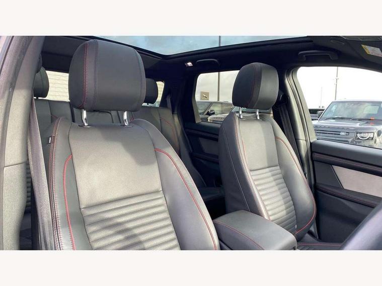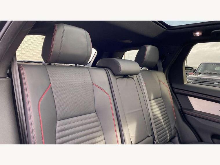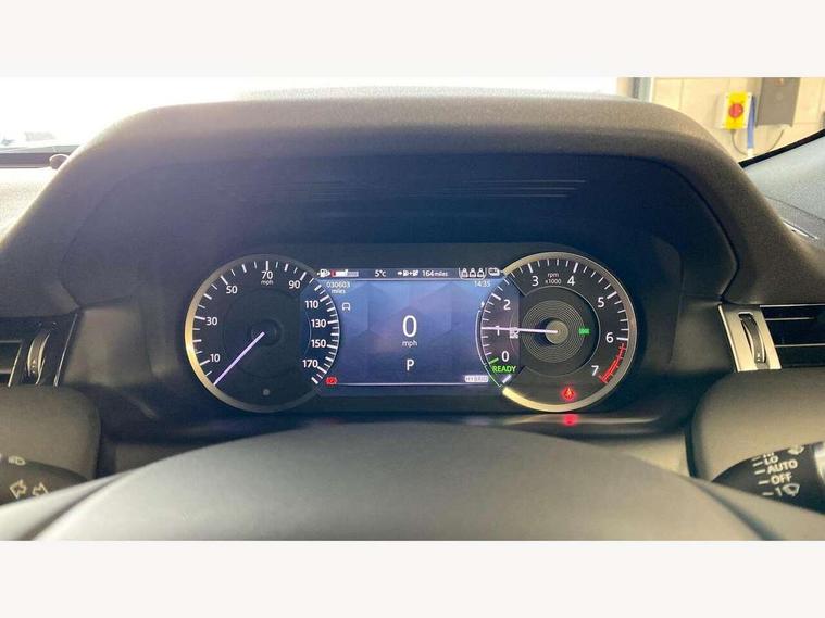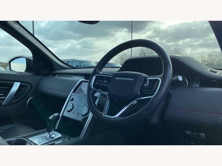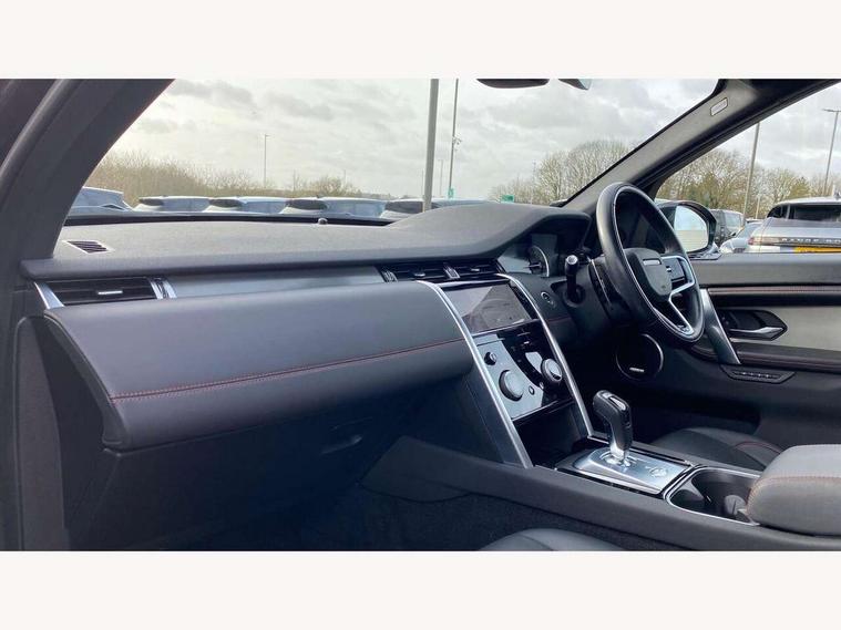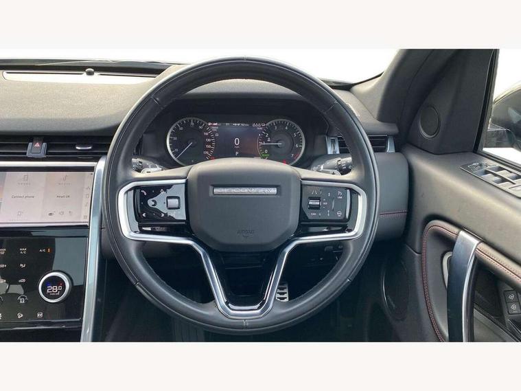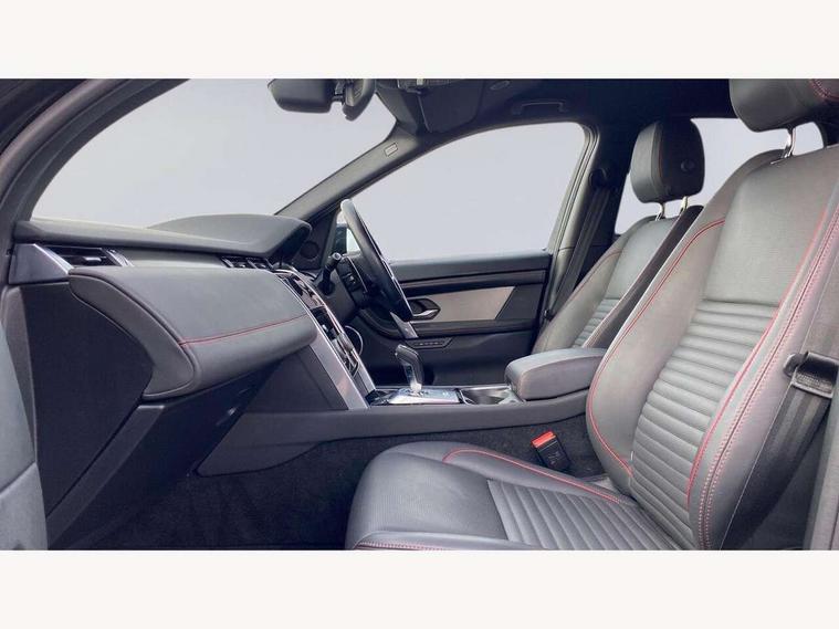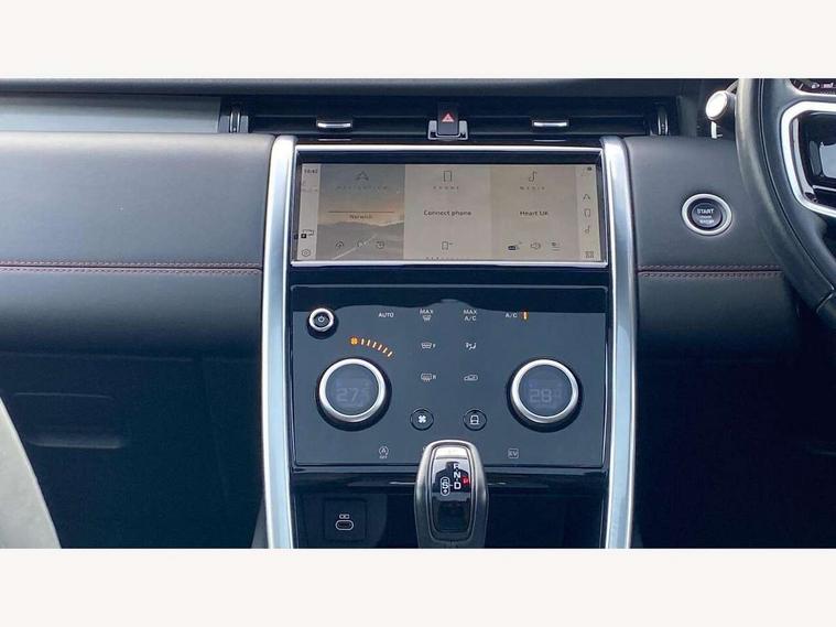 10" touch screen, Adaptive cruise control, Android Auto, Apple CarPlay, Blind spot assist, Clear exit monitor, Driver condition monitor, eCall emergency call system, Front and rear parking aid, InControl remote premium, Lane keep assist, Locking fuel flap, PAS, Pivi Pro connected navigation system with upgraded Infotainment, Powered tailgate/boot lid, Push button start, Rear collision monitor, Rear traffic monitor, Service interval indicator, Traffic sign recognition with adaptive speed limiter, Trip computer, Wade Sensing, 7 kW onboard charger, All terrain progress control, Coil suspension system, Configurable dynamics, Dynamic stability control, Home charging cable, Public charging cable, Terrain Response 2, Bluetooth connectivity including audio streaming, Digital Audio Broadcast radio-DAB, Steering wheel mounted audio controls, 3rd brake light, Automatic headlight levelling, Automatic headlights, Electric front/rear windows, Electric heated/power fold door mirrors with approach lights and auto dimming driver side, Front and rear recovery eyes, Front fog lights, Heated rear window, Heated windscreen including heated washer jets, Illuminated metal front treadplates with R dynamic branding, P300e badge, Privacy glass, R Dynamic badge, Rain sensing windscreen wipers, Rear fog lights, Rear side wing doors, Rear wing door, Rear wiper, 5 standard seating configuration, Bright metal pedals, Centre console with armrest, Configurable cabin lighting, Electrically adjustable steering column with memory, Footwell lights, Front and rear grab handles, Front passenger isofix child seat attachment, Heated steering wheel, Loadspace cover, Loadspace light, Overhead lighting console, Overhead stowage for sunglasses, Rear headrests, Satin chrome gearshift paddles, Sunvisors with illuminated vanity mirrors, Tilt/reach adjustable steering wheel, Black exterior pack - Discovery sport R-Dynamic SE/HSE, Online pack with data plan - Discovery, 3 point seatbelts on all seats, ABS, Brake hold function, Child locks on rear doors, Collision mitigation braking system, Cornering brake control (CBC), Driver/Front Passenger airbags, Drivers knee airbag, Electronic brake force distribution, Electronic parking brake, Emergency brake assist, ESP + traction control, Hill descent control, Hill launch assist, Pedestrian airbag system, Rear seat ISOFIX, Roll stability control, Side and curtain airbags for front and 2nd row seats, Trailer stability control, Tyre pressure monitoring system, Battery Back Up System (BBUS) with tilt sensor, Global lock and unlock switch on driver door, Intrusion sensor, Keyless entry, Locking wheel nuts, Centre stack rails in noble chrome,