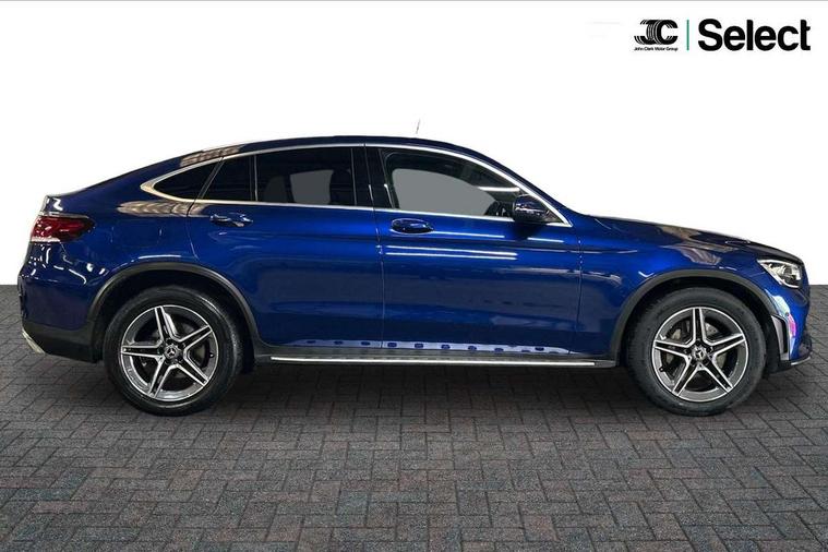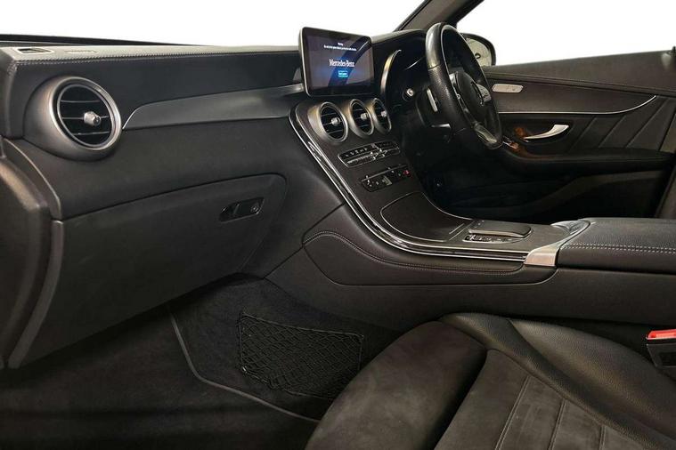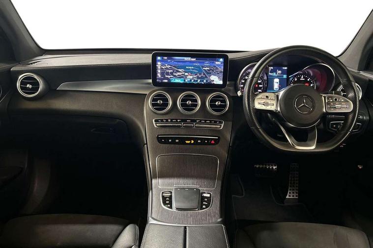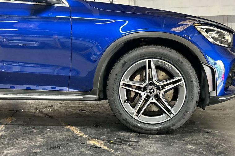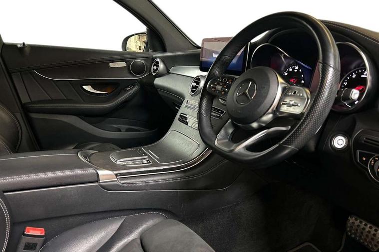 Active parking assist with parktronic system, Attention assist, Bluetooth interface for hands free telephone, Collision prevention assist plus, Cruise control with speedtronic variable speed limiter, Direct steer speed sensitive steering, DYNAMIC SELECT with a choice of driving modes (ECO, Comfort, Sport, Sport+ and Individual), Easy pack automatic powered tailgate, ECO start/stop function, Hard disk navigation, Hey Mercedes Voice activation, Instrument cluster with 5.5-inch TFT multi-function display, MBUX Interior assistant, Mercedes connect me with remote online services, Multi function trip computer, Outside temperature display, rear seatbelt status indicator, Remote boot release, Reversing camera, Service indicator (ASSYST), 4MATIC permanent four wheel drive, 50 litre fuel tank, 9G TRONIC plus automatic transmission with steering column gear selector, DIRECT SELECT steering wheel gearshift paddles, Diesel particulate filter, Sports suspension tuned for improved handling and driving dynamics, 5 speakers, DAB Digital radio, Frontbass loudspeakers, MBUX multimedia system with DAB digital radio and touchpad including satellite navigation, Media display 10.25-inch touchscreen display, Pre installation for Mercedes Benz Link, USB ports x 2 in centre console, Adaptive brake lights, AMG bodystyling - AMG front apron with sporty air intakes and chrome trim element, AMG diffuser-look rear apron with insert in black, Body colour door mirrors, Body coloured bumpers, Electric windows one touch open/close, Electrically adjustable and heated door mirrors, Front and rear exterior chrome trim, Headlamp assist automatic headlamp activation, LED high performance headlamps with integrated LED daytime running lights, LED tail lamp, Privacy glass with dark glass from B pillar backwards, Radiator diamond grille, Rain sensor windscreen wipers, Range adjustable headlights, Rear wiper, Tinted glass all round with single layer safety glass, Two chrome plated tailpipe trim elements, 2 way rear head restraints, 3-spoke multifunction AMG steering wheel in black nappa leather with flattened bottom section, chrome inserts and perforated leather in grip area, 40:20:40 split folding rear seats, AMG floor mats with edging and embroidered AMG lettering, AMG sports seats, Artico leather with Dinamica microfibre upholstery, Automatic child seat recognition sensor, Black roof lining, Dividing net - rear, Double cup holder in centre console, Front armrest with storage box, Front door sills with Mercedes Benz lettering, Front head restraints, Front seats with electric adjust (backrest, height and seat cushion inclination) with 4 way electric lumbar support and manual cushion depth adjust, Heated front seats, Height/reach adjustable steering column, Illuminated and lockable glove compartment, Rear top tether child seat ISOFIX attachment, Sports pedals with stainless steel surfaces and rubber studs, Steering wheel with touch control buttons, THERMATIC automatic climate control, Easy-pack load compartment cover, Interior lighting pack - GLC, Mirror pack - GLC, Storage pack - GLC, 3 rear 3 point seatbelts, Active bonnet, Adaptive brake system with HOLD function and brake drying in the wet, ASR, Black seat belts, Brake calipers with Mercedes-Benz lettering + perforated brake discs, Child proof door locks, Dual-stage airbags - driver and front passenger, driver knee bag and window bags for driver, front passenger and rear passengers, Electronic parking brake, Electronic stability programme (ESP) with curve dynamic assist and cross wind assist, Front and rear seatbelt reminder, Front passenger seat occupancy sensor, Hill hold function, Tyre pressure monitoring system, Warning triangle and first aid kit, Alarm system/interior protection/immobiliser, Automatic door locking, KEYLESS-GO starting function, Remote central locking, Open pore grey oak wood trim, 19" AMG 5 twin spoke alloy wheels painted tremolite grey with high sheen finish and tirefit,
