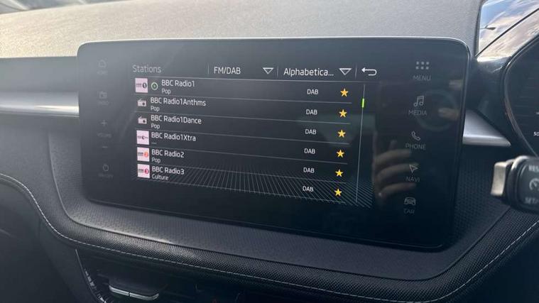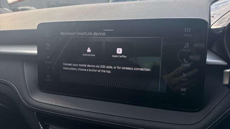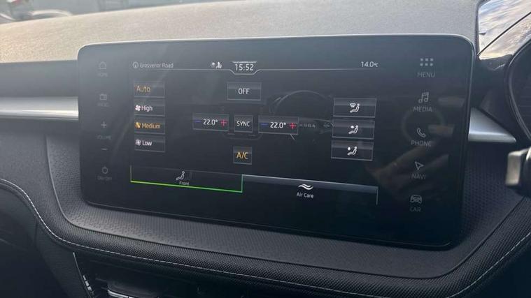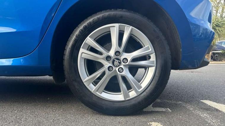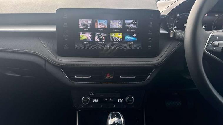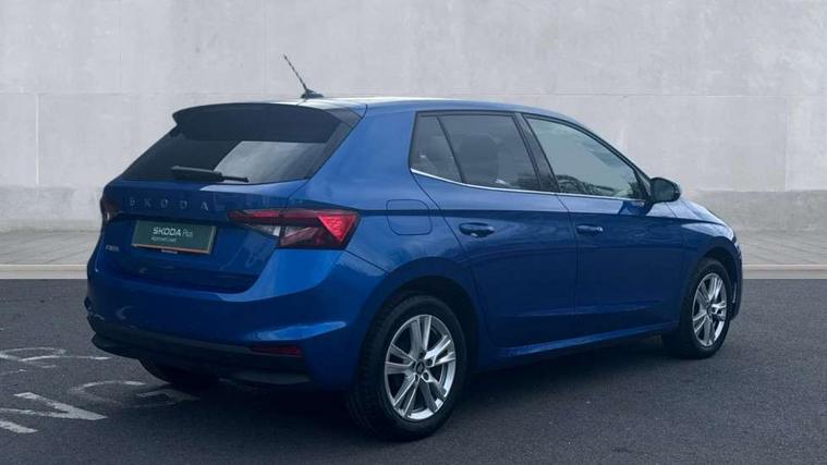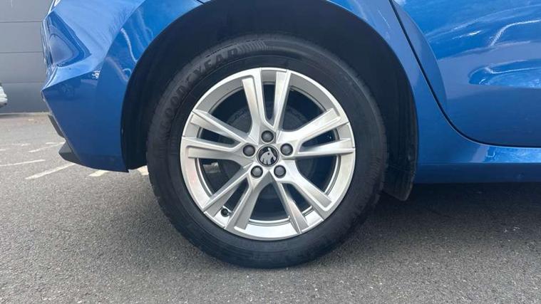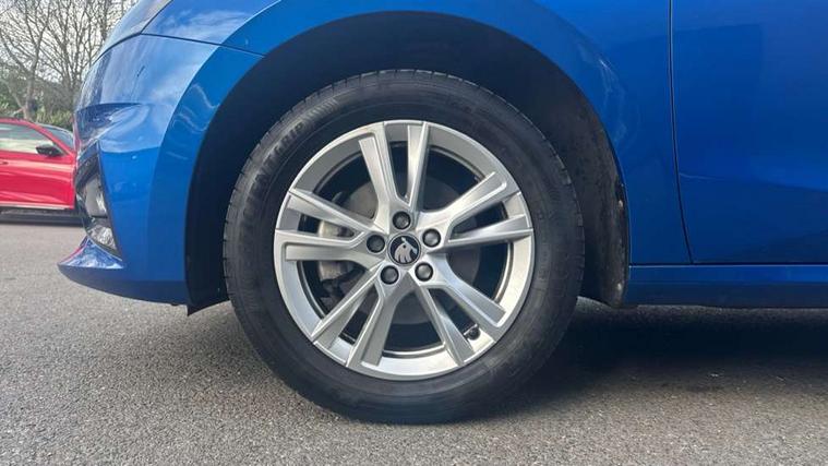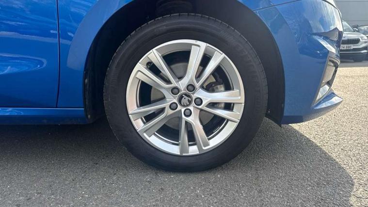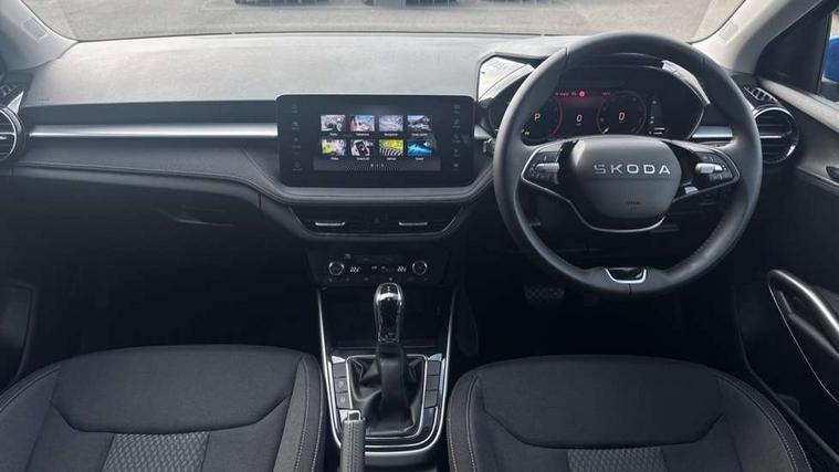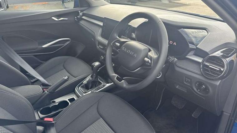 Advanced driver attention and drowsiness monitor, Bluetooth connection, Driver alert system, Electromechanical power steering, Exterior temperature gauge, Service interval indicator, Traffic sign recognition, Virtual cockpit with 10.25" colour display, Wireless SmartLink for Apple CarPlay and Android Auto, 6 Speakers (4 in front and 2 in rear), 9.2" colour display skoda navigation system with voice control and web radio, Auxiliary socket for external MP3 player, DAB digital radio reception, Auto dimming rear view mirror, Body colour door mirrors, Body coloured bumpers, Chrome window surround, Door mirror integrated indicators, Front and rear electric windows, Front window wiper intermittent control, Headlight range control - Automatic, Ice scraper in fuel cap, LED 3rd brake light, LED daytime running lights with coming and leaving home feature, LED rear lights, Privacy glass, Rear LED fog light, Rear side wing doors, Rear window wiper with washing nozzles, Roof mounted spoiler, SKODA tailgate lettering in chrome, Unique dark chrome design logo on alloy wheels, 2 LED reading lights in front and rear, 3 rear headrests, Backrest split and folding, Central console with fixed cup holder and storage box, Chrome handbrake release button, Comfort seats, Door sills with fabia badging, Dual zone air conditioning with climatronic electronic control, Fabric upholstery, Front centre armrest, Gearshift knob/handle in leather, Grain satin black interior door handles, Hand brake lever handle in leather, Height adjustable front headrests, Height adjustable front seats, Height adjustable steering wheel, ISOFIX and TopTether anchorage points to the outer rear seats, ISOFIX and TopTether on the front passenger seat, Luggage compartment lighting, Manually adjustable lumbar support in front seats, Pollen filter, Rear seat bench unsplit, Single front passenger seat, Skoda lettering on steering wheel, Storm grey headlining, Sun visors with mirror and airbag label on passenger side, Textile floor mats, Ticket holder, Umbrella in drivers door, Ambient lighting pack - Fabia Hatchback, 3-point height adjustable front seats belts with pretensioner and force limiter, Automatic warning lights in case of crash, Driver and passengers airbag with switch off function, e-Call+, ESC including ABS, MSR, ASR, EDS, HBA and XDS, Front and rear seat belt warning, FRONT ASSIST (AEB City and AEB Inter Urban), Front side airbags, Head airbags, Hill hold control, One tone horn, Pedestrian protection, Three rear 3-points safety seat belts with pretensioner and force limiter including stop function for outer rear seat belts, Tyre pressure monitoring system, Anti-theft alarm system including immobiliser, interior monitoring, backup horn, and towing protection, Central locking with radio remote control, interior controls, SAFE function and 2 foldable keys, Chrome edged air vents, Grain satin black central console cover, Metallic grey upper decorative trim, Satin black door and side trim panel in front, Textile microsuede grey lower decorative trim with art grey stitching, Anti-theft wheel bolts protection, Super-low rolling resistance tyres,
