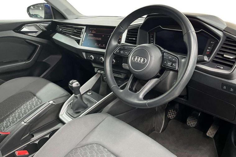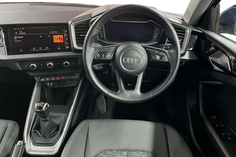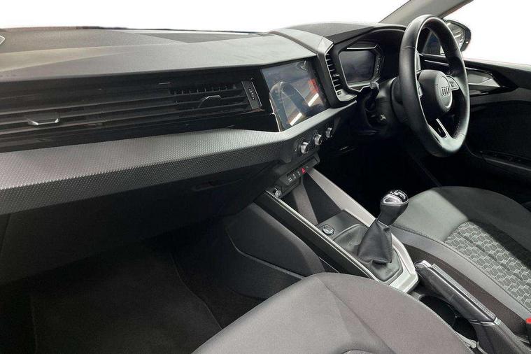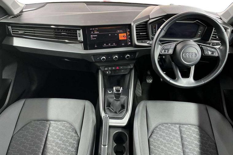 10.25" Digital instrument cluster display classis style instrument dials + speed, odometer, time, outside temperature, telephone menu + fuel level warning, Audi drive select - power steering assistance + engine, Audi smartphone interface with connect compatible smartphone via USB directly MMI display + Nav, music, third party apps controlled via MMI controller, Automatic start/stop system, Bluetooth interface, Cruise control, Driver's information system, Electromechanical power steering, Emergency e-call, Lane departure warning system, Rear parking sensor, Service interval indicator, Speed limiter, Voice control system, Washer fluid level indicator, Dynamic suspension, 2 x USB type C connection points, 6 passive loudspeakers, DAB Digital radio, MMI radio plus with 10.1" colour MMI display screen and MMI touch, Auto dimming rear view mirror, Body coloured bumpers, Body coloured door mirrors, Electric front and rear windows, Electrically adjustable, heated, folding door mirrors with integrated LED side indicator, Front side air inlets in grained matt black and C frame in anthracite black, Heat insulating glass windscreen and side windows, Heated rear windscreen, High level LED brake light, LED headlights with LED rear lights + dynamic rear indicators + headlight adjustment and high beam, turning light + LED daytime running lights, Radiator grille and rear diffuser in matt anthracite black, Radiator protective grille frame in matt aluminium silver, Rain and light sensors, Rear fog lights, Rear side wing doors, Rear wiper, Side front spoiler lips in grained matt black, 12V socket in centre console with two cup holders, 3 rear seats with headrests, 3 seat bench in 2nd row, 3 spoke leather multifunction plus steering wheel, 40:60 Split folding rear seat or folded fully, Black front and rear floor mats, Door sill trims with aluminium inlay, Driver and passenger seat with manual height adjust with forward and backwards adjustment, Front head restraints, Front passenger seat, Grey cloth headlining, Height and reach adjustable steering wheel, ISOFIX child seat mounting for front passenger and outer rear seats including top tether attachment point of outer rear seats, Leather gear knob with aluminium trim, Leatherette handbrake grip, Luggage compartment light with front and rear reading lights, Manual air conditioning, Manually adjustable lumbar support in front seats, Novum cloth upholstery with front sport seats, Luggage compartment pack - A1, 3x3 point rear seatbelts, Audi pre-sense front with pedestrain and cyclist recognition, Brake assist function, Driver and front passenger airbag with front side and head airbags, Electronic Stability Control including ABS, EBD, ASR and EDL, Front passenger airbag deactivation switch, Hill hold assist, Manual rear child locks, Seatbelt height adjustment for front seats, Seatbelt monitoring, Tyre pressure warning light, Warning triangle and first aid kit, Anti theft alarm, Anti theft wheel bolts and loose wheel warning, Immobiliser, Remote central locking with 2 foldaway keys, Aluminium trim for control switches, air vents and digital instrument cluster, Black dashboard, Silver grey accent areas including air vents, door handle recesses and centre console in diamond paint finish, Slate grey inlays polygon structure in fine paint finish,