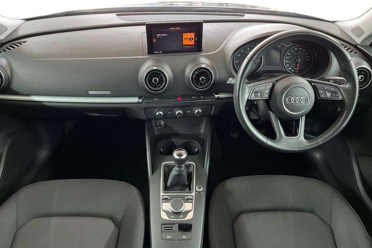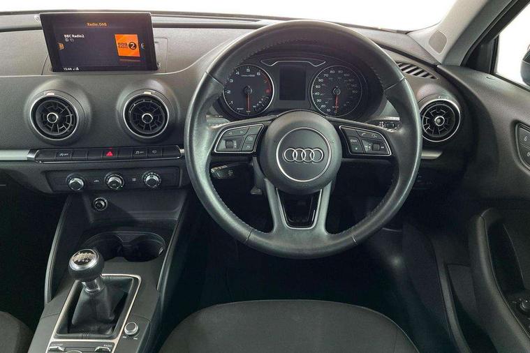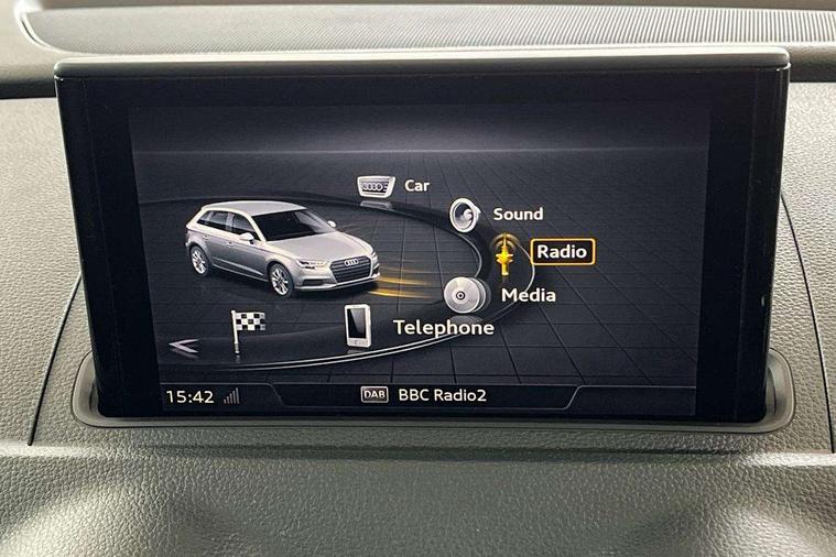 Audi connect, Audi smartphone interface, Automatic start/stop system, Colour driver's information system display, Electro - mechanical power assisted steering, Mobile telephone preparation - bluetooth interface, SD card based satellite navigation system, Service interval indicator, Speed limit display, Voice control system, Voice recognition for navigation system, Dynamic suspension, 2 USB interfaces and Aux-In jack, Audi music interface, CD player, DAB Digital radio, MMI radio plus with 7" colour MMI screen and MMI controller, Auto dimming rear view mirror with light and rain sensors, Body colour bumpers, Body colour door mirrors, Body colour roof spoiler with aerodynamic inserts in high gloss black, Electric front windows, Electric rear windows, Electrically adjustable and heated door mirrors with integrated LED side indicators, Heated windscreen washer jets, Matt black radiator grille, Rear wiper, Xenon headlights with LED Daytime running light, 3 adjustable rear headrests, 3 spoke leather multifunction sports steering wheel, 4 lashing points to secure luggage, Adjustable front centre armrest, Front and rear interior lights with delay, Front/rear floor mats, Glovebox light, Height and reach adjustable steering wheel, Isofix child seat preparation for front passenger/outer rear seats inc passenger airbag deactivation, Rock grey headlining, Storage compartments in doors side trims, centre console and under front drivers seat, Tool kit, Non smoking pack - A3, 3 point seatbelts on all seats, ABS/EBD, Active bonnet, Active front headrests, Airbags - front driver/passenger, front & rear side, curtain, drivers knee, ASR, EDL, Electromechanical parking brake, ESC - Electronic Stability Control + traction control, Front passenger airbag deactivation, Hill hold assist, Manual rear child locks, Multi-Collision braking, Seatbelt warning, Tyre pressure warning, Warning triangle and first aid kit, Anti theft alarm, Anti-theft wheel bolts, Remote control central locking, Thatcham category 1 alarm + immobiliser, Aluminium air vent surrounds, Micrometallic silver inlay, Tyre repair kit,