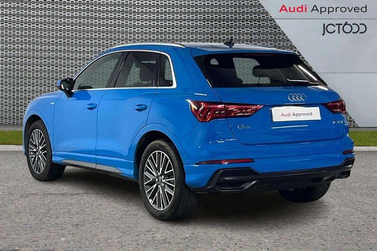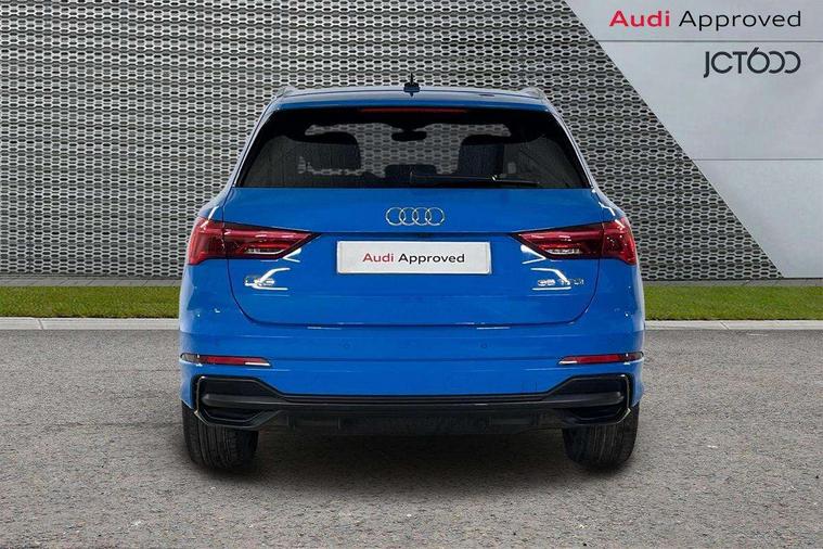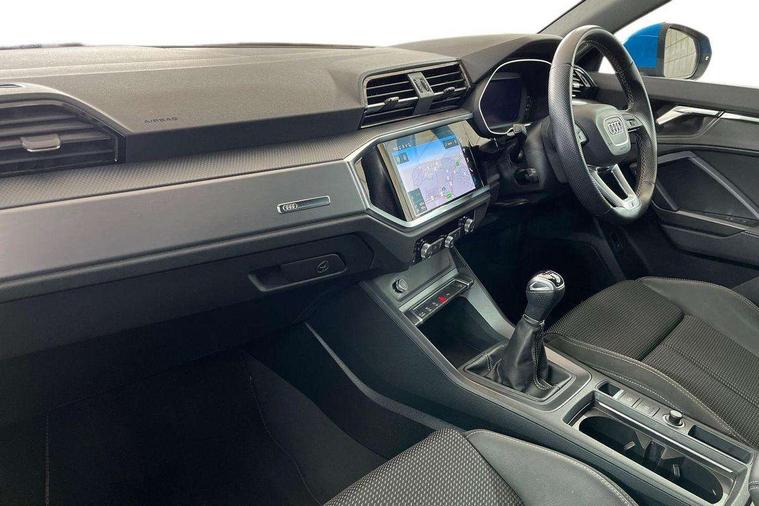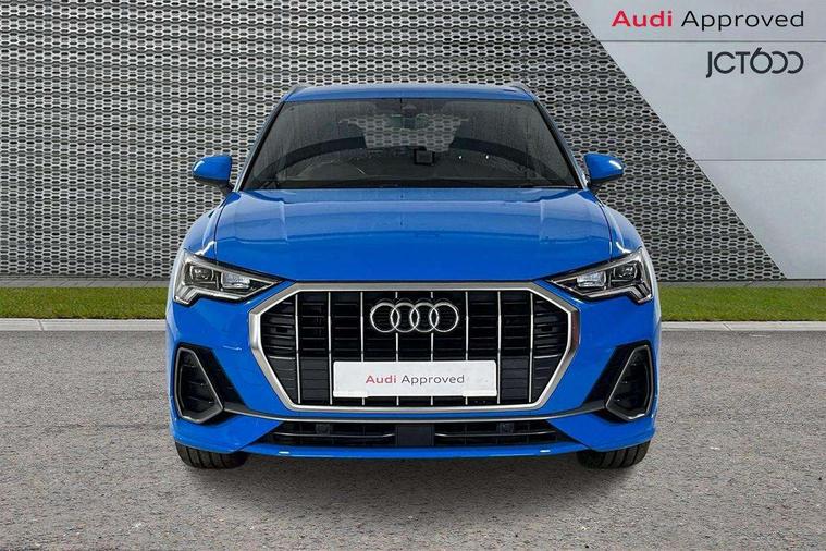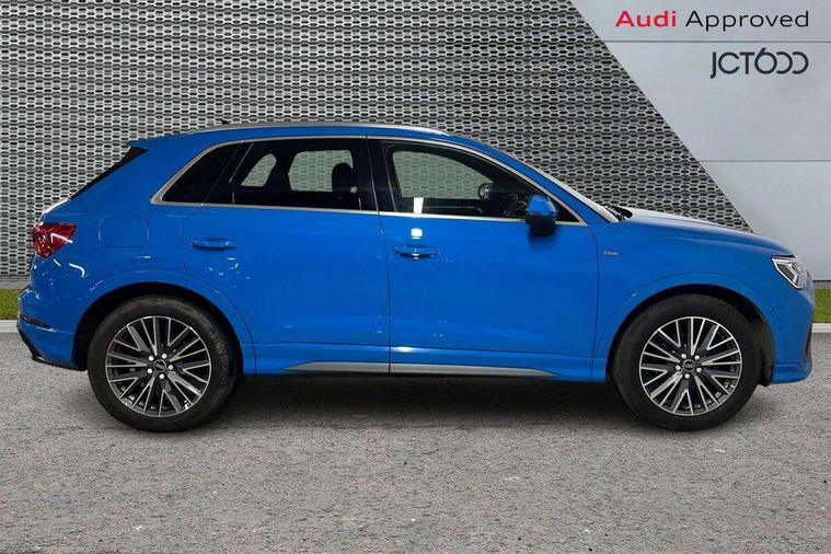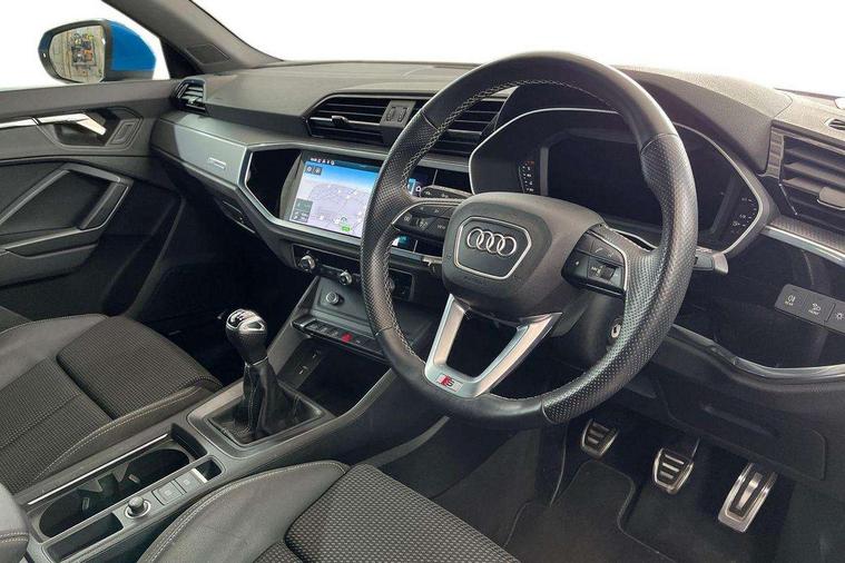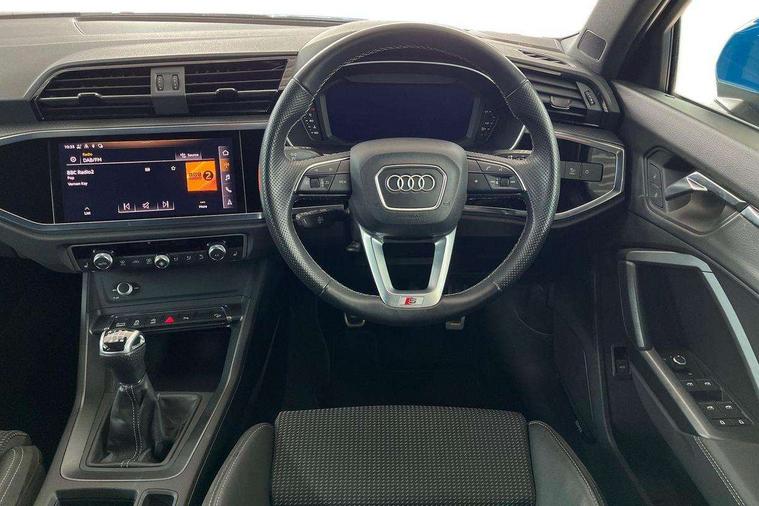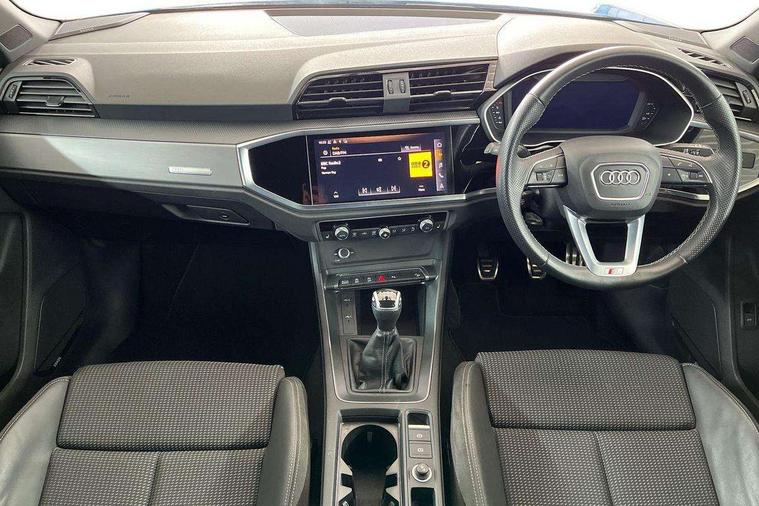 Amazon alexa Integration, Audi connect safety and service (e-call), Audi drive select, Audi lane departure warning, Audi Virtual Cockpit - 10.25" display, Bluetooth interface, Camera based traffic sign recognition, Cruise control + speed limiter, MMI Navigation Plus with high resolution 10.1 inch touchscreen colour display, Power operated tailgate, Progressive steering, Rear parking sensors, Service interval indicator, Smartphone interface includes wireless Apple carplay/Android Auto, Start stop system with recuperation, Voice control system with natural language interaction, Sports suspension, 2 USB-C ports with charge and data functions, 6 passive loudspeakers, DAB digital radio module, Acoustic windscreen, Aluminium roof rails, Aluminium window trim, Auto dimming frameless rear view mirror, Body coloured bumpers, Electrically folding, adjustable and heated door mirrors with integrated LED side indicators and kerb view function for passenger side, Front and rear electric windows, Front fog lights, Front side air inlets in matt platinum grey, Front spoiler blade in matt platinum grey, Grille vertical bars in aluminium silver/Matt, High gloss black finish B and C pillars, LED headlights with LED daytime running lights and dynamic rear indicator, LED rear lights, Privacy glass dark tinted rear and rear-side windows (from B-pillar backwards), Rain and light sensors, Rear diffuser strip in matt titanium black, S line badges on front wings, S Line front and rear bumpers, Side skirt insert in matt Platinium grey, Silver chrome grille surround, Titanium black radiator grille, 12V socket in rear centre console, 40:20:40 folding with manual adjustment for 60:40 forwards/backwards position and backrest angle, Adjustable rear seat bench/backrest with centre armrest and cupholder, Black cloth headlining, Dual zone electronic climate control, Front and rear black floor mats with contrast stitching in rock grey, Front and rear headrests, Front and rear roof module including reading lights, Front centre armrest, Glove compartment lighting, Height and reach adjustable steering wheel, Illuminated door sill trims with S logo, ISOFIX child seat mounting for front passenger with airbag deactivation and outer rear seat including top tether attachment point for outer rear seats, Luggage compartment light, Manual front seats with height adjustment, Perforated leather gearknob, Stainless steel luggage compartment sill finisher, Stainless steel pedals, Non smoking pack - Q3, 3x3 point rear seatbelts, 6 airbags - Driver, front passenger, curtain and side windows, Audi pre-sense front with pedestrain and cyclist recognition, Electrically operated child locks on rear doors, Electromechanical parking brake, Electronic stabilisation control including ABS, ASR and EDL, Hill descent control, Hill hold assist, Pre sense basic, Seatbelt monitoring, Tyre pressure warning, Warning triangle and first aid kit, Anti theft alarm, Anti theft wheel bolts, Remote central locking, Dark matt brushed aluminium inlay, Detail dashboard around MMI touch colour display in glass look, black with surround in aluminium look, Leatherette door armrest,