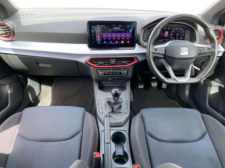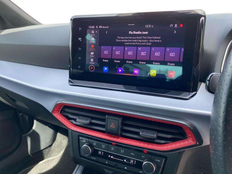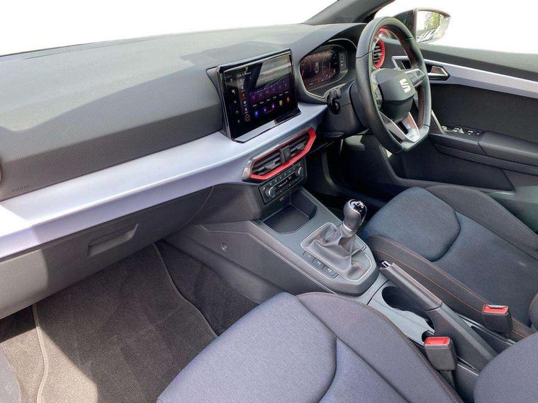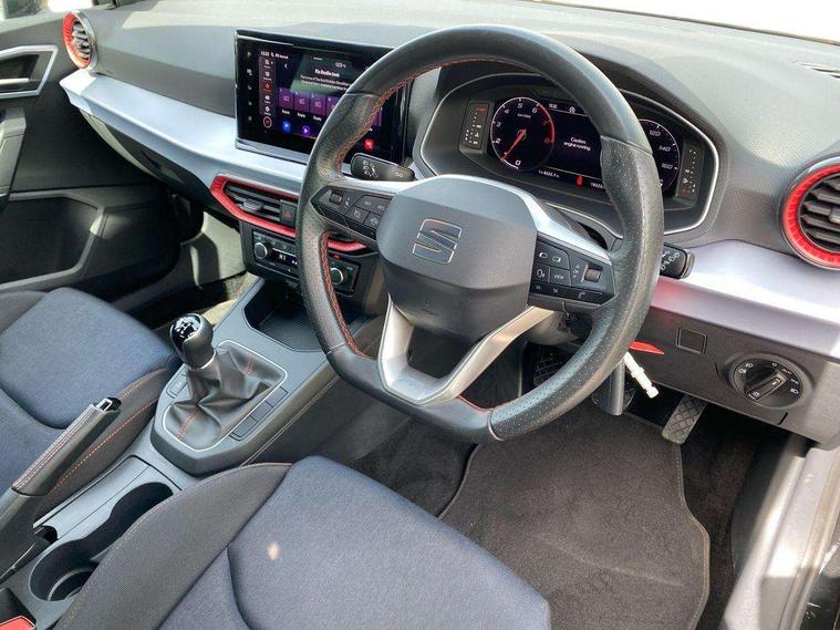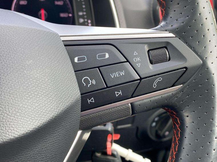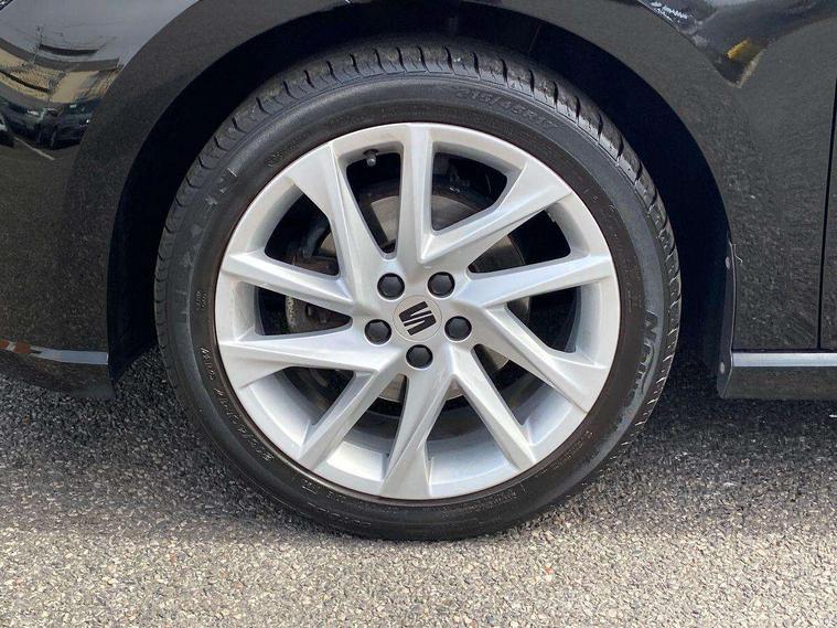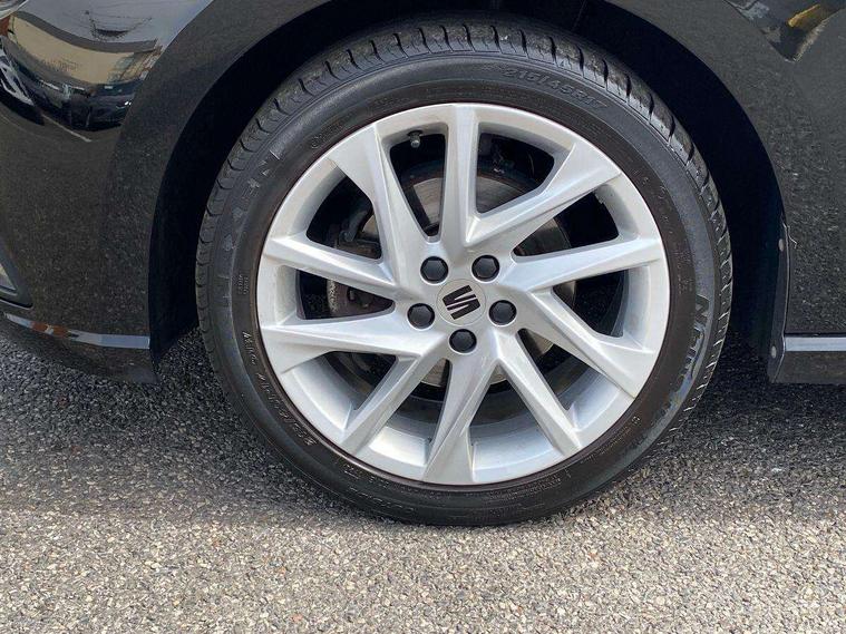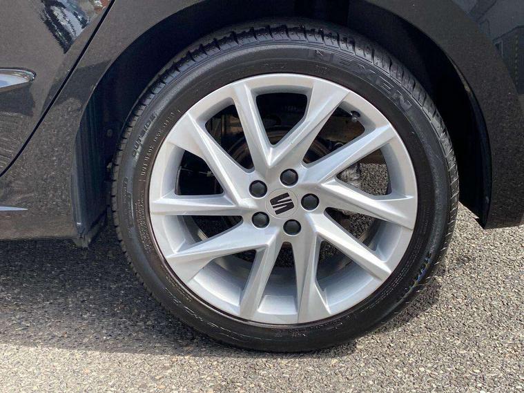 'Lights On' Reminder warning buzzer, 8" Digital cockpit, 9.2" touchscreen navigation system with type C USB socket, Voice control and DAB/AM/FM radio, Auto start and stop system, Bluetooth audio streaming with handsfree system, Digital clock, E-call, Full link smartphone integration with mirror link, wireless apple carplay, Google android auto + USB Type C cable for apple and android devices, Lane assist, Low fuel warning light, Outside temperature gauge, Power Steering, Seat connect with safety, service, remote and online, SEAT drive profiles and ECO function, SEAT logo boot release, Speed limiter, Trip computer, Sports suspension, Auxiliary input socket, Radio/MP3 player, SD card slot, Steering wheel mounted controls, Anti theft roof antenna, Auto dimming rear view mirror, Automatic rain sensing wipers, Black door mirrors, Body colour bumpers, Body colour door handles, Brilliant black window surrounds, Dark tinted rear windows, Electric adjustable/heated/folding door mirrors, Electric front windows, Electric headlight adjustment, Electric rear windows, Front/rear fog lights, FULL LED automatic headlights with dynamic headlight range control, coming and leaving home, LED daytime running lights, LED tail lights, Rear roof spoiler with FR twin exhausts, Rear side wing doors, Rear wiper, Third brake light, 3 seat bench in 2nd row, 60/40 split folding rear seat, Ambient interior lighting, Chrome detailing and black headlining, Cloth upholstery, Dual zone climate control with combination filter, Front courtesy lights, Front cupholders x 2, Front reading lights, Gear shift indicator, Glovebox, Height adjustable front and rear headrests (five), Height adjustable front seats, Height/reach adjust steering wheel, Illuminated air vent surrounds, Illuminated boot, Instrument lighting with brightness control, Isofix, Leather multifunction flat bottomed sports steering wheel, Passenger sunvisor, Single front passenger seat, Sports seats, Sunvisors with mirror and driver side card holder, 3 point seatbelts on all 3 rear seats, ABS, Active front headrests, Child locks on rear doors, Electronic stability control, Energy recovery system, Front assist forward collision warning and autonomous emergency braking, Front driver and passenger side airbags with curtain airbag and front passenger airbag deactivation, Hill hold control, Multi-Collision braking, Seat belt reminder for front and rear seats, Tiredness recognition system, Tyre pressure monitoring system, Electronic engine immobiliser, Locking wheel bolts, Perimeter alarm and interior monitoring with backup horn and tow away protection, Remote central locking + deadlocks, 17" Alloy wheels in Brilliant silver,