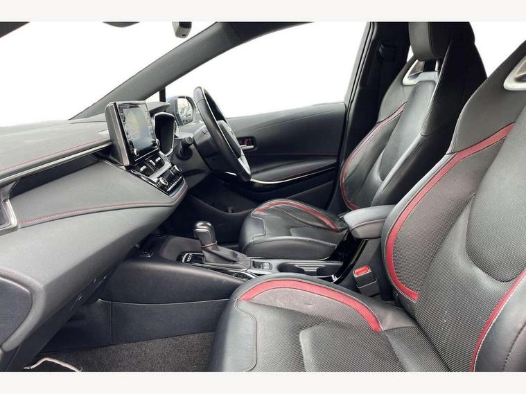 7" Multi information display screen, Bluetooth telephone connectivity, Connected car functionality upgrade, tracker, remote status and e-care, Dynamic radar cruise control (with RSA) including switch on steering wheel, E-call, Electrically assisted power steering, EV drive indicator, Intelligent park assist, Kick sensor for power tailgate, Lane Departure Alert (LDA) switch on steering wheel, Memory on adjustable speed limiter, Push button start, Reversing camera, Smartphone integration with Apple CarPlay and Android auto, Gasoline particulate filter, Vehicle Stability Control (VSC), 6 speakers, 8" Touchscreen with MM19 Multimedia system and voice recognition, AM/FM radio, DAB Digital radio, Toyota touch 2 with go navigation system, USB and Aux in connectors + 12V front outlet, USB charging port in centre storage box, Aluminium roof rails, Anti-jam protection on power windows, Auto dimming inside rear view mirror, Auto up and down function on all power windows, Automatic folding mirrors, Automatic headlights with high beam assist, Black toyota logo in front, Body colour rear spoiler, Body coloured bumpers, Body coloured door mirrors, Body coloured outside door handles, Chrome door scuff plates, Follow me home headlights, LED daytime running lights, LED dual-beam projector headlights with manual headlight levelling, LED front fog lights, LED High mounted stop light, LED rear combi lights with LED lightguide, Noise reduction layer on front windows, Power adjustable heated door mirrors, Power front windows, Power rear windows, Rain sensing wipers, Rear privacy glass, Rear window defogger, Rear window wiper, Reverse tilting door mirrors, Satin chrome surround on lower front grille, Shark fin antenna, Time adjustment on intermittent wiper, Turning signal integrated indicators in door mirrors, Unique lower skirt, Unique side rocker with black insert, UV-filter on driver and passenger windows, 12v power outlet - luggage side, 3 rear headrests, 3 spoke leather steering wheel + gear knob, 60/40 split folding rear seat, Adjustable speed limiter switch on steering wheel, Audio, multimedia and telephone switches on steering wheel, Blue ambient interior illumination to centre tray, front cup holders and front door trim, Boot underfloor storage, Clean air filter, Driver and front passenger personal light, Driver and passenger assist grip, Driver and passenger seatback pockets, Driver and passenger sun visor with mirror and light, Dual sided deck board in boot, Dual zone automatic air conditioning with ECO mode switch, Front and rear cup and bottle holders, Front and rear door pockets, Front head restraints, Full leather upholstery, Heated driver and front passenger seats, Illuminated entry system in room lamp, ISOFIX seat fixing (2 fixings on rear outer seats), Leather gear shift with satin chrome on gear shift console, Leather style armrests, LED boot light, Luggage utility boot rails, Manual height adjustable for driver and front passenger seat, Pollen filter, Power adjustable lumbar support on driver seat, Power window switches with satin chrome inserts, Rear armrest with 2 cupholders, Rear passenger air vents, Rear passenger coat hooks (2), Rear passenger personal lights, Retractable tonneau cover with luggage partition net, Satin chrome inside door handles, Shopping bag hooks in luggage compartment, Side storage in boot, Sliding armrest on centre console box, Slow opening glovebox with lights, Sports seats, Tilt/telescopic steering column, Tonneau cover with under floor storage, Voice recognition switch on steering wheel, Whiplash Injury Lessening (WIL) feature (active headrest) for seats, Parking pack - Corolla, Toyota safety sense 2 pack - Corolla, 3x3 point rear seatbelts, Adjustable driver and front passenger seat belt extender to top anchor point, Anti lock braking system + Electronic brake force distribution, Brake assist function, Downhill Assist Control (DAC), Electronic parking brake, Emergency brake light signal (EBS), Front passenger airbag on/off switch, Front seatbelt reminder, HAC - Hill start assist control, Rear seat belt reminder, Seatbelt pretensioners and force limiters, Supplemental restraint system (SRS) 7 airbags - dual driver, dual side curtain, side impact and driver knee airbags, Traction control, Tyre pressure warning system, Acoustic vehicle alert system (AVAS), Alarm with motion sensor and immobilizer, Remote central locking + deadlocks, Smart entry, Satin chrome dash trim, Soft touch texture on upper dashboard, Stitching on lower dashboard, Stitching on upper dashboard, 17" machined face alloy wheels, Tyre repair kit, Unique wheel finish with red wheel cap,