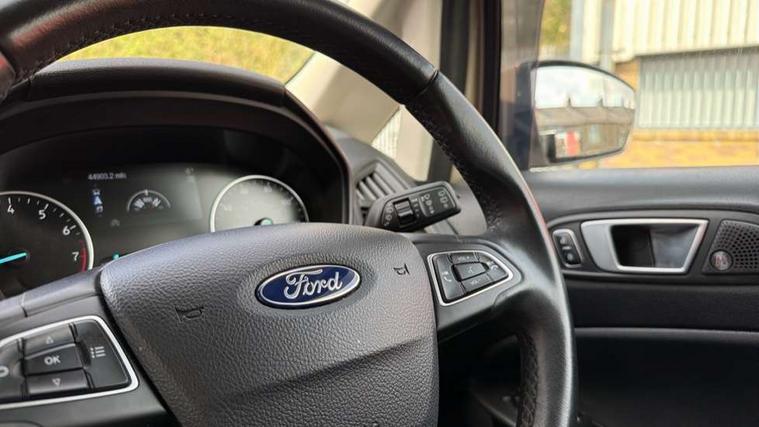 'Ford Power' starter button, Cruise control + speed limiter, Easy fuel capless refuelling system, PAS, Rear parking sensors and rear view camera, Trip computer, Voice control system, 'Quickclear' heated windscreen/heated washer jets, Ambient light, Auto dimming rear view mirror, Automatic headlights, Body colour door handles, Body coloured bumpers, Electric heated door mirrors, Front fog lights, Front grille with chrome trim surround, Headlight levelling control, LED daytime running lights, Rain sensor windscreen wipers, Rear wiper, Silver roof rails, 12V socket in front and rear, 60/40 split rear seats, Ambient interior lighting, Centre console with sliding front armrest, Cooled glovebox, Courtesy lights with map reading light, Driver's side glovebox, Driver/passenger sunvisors and lidded vanity mirrors, EATC - Electronic Auto Temperature control, Folding grab handles, Footwell ambient lighting, Front head restraints, Front seat back map pockets, Front/rear floor mats, Height adjustable drivers seat with lumbar support, Illuminated glovebox, Illuminated luggage compartment, Isofix system on outer rear seats, Leather gear knob and handbrake grip, Leather steering wheel with audio controls, Luggage compartment carpet, Overhead console with sunglasses holder, Part leather upholstery, Rake adjustable rear seats, Reach + rake adjustable steering column, Rear headrests, Steering wheel with chrome inserts, Storage drawers under front seats, Tie down hooks, Variable boot floor, 3x3 point rear seatbelts, ABS, Child locks on rear doors, Curtain airbags, Driver airbag, Drivers knee airbag, Electronic Stability Programme, Emergency brake assist, Front passenger airbag deactivation, Front side airbags, Hill launch assist, Passenger airbag, Seatbelt reminder for driver and front passenger, Traction control, Tyre pressure monitoring system, Immobiliser, MyKey system, Remote central locking, Thatcham 1 volume sensing alarm, Tyre repair kit,
