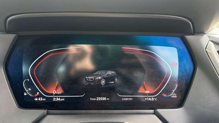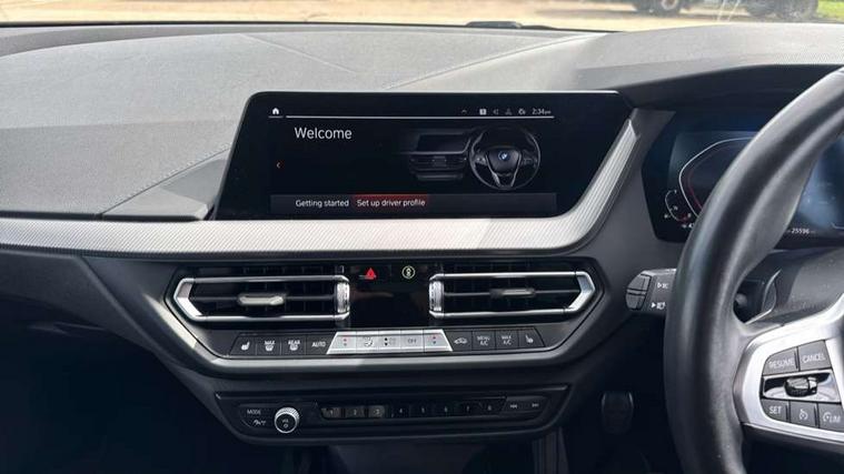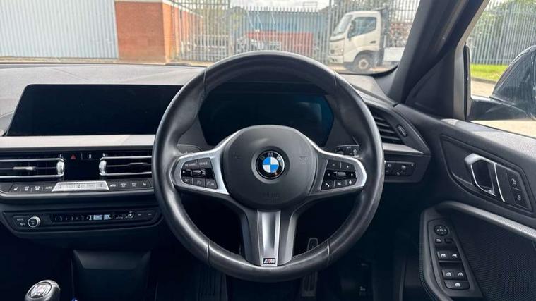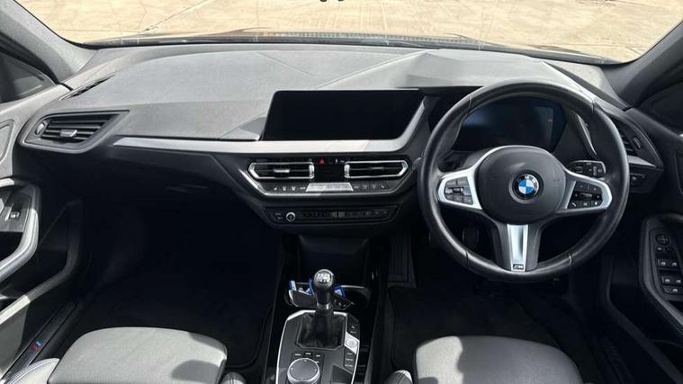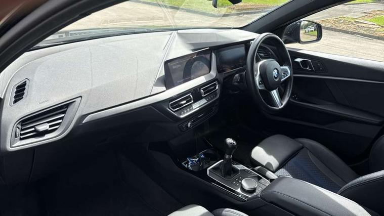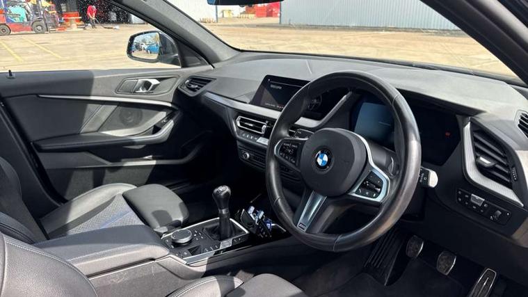 Active guard plus, Attentiveness assist, BMW ConnectedDrive online services, BMW Teleservices, Check Control warning system for monitoring of lights and door/luggage compartment open warning, Cruise control with speed limiter, Eco pro mode, Front axle single joint with specific axle kinematics to minimise drive influences on steering + provide increased rigidity agile driving behaviour, Integrated owners handbook, Lane departure warning system, Oil sensor for level and grade, On board computer, Optimum shift indicator, Personal Profile, Pull away assistant, Rigidly mounted rear subframe - Multi link construction with separate spring / damper configuration and excellent driving characteristics, Speed limit Info including no-overtaking indicator, Aluminium lightweight construction, Anti roll bar front and rear, Balancer shaft, Double VANOS twin scroll turbocharging system, Drive Performance Control, Electronic differential lock, High precision injection, M sport suspension, Petrol Particulate Filter, Twin tube gas filled shock absorbers with degressive characteristic curve, VALVETRONIC engine management, DAB Digital radio, Auto dimming rear view mirror, Automatic headlight beam throw control, Automatic windscreen wipers and automatic headlight, Body colour door handles, Body colour mirror caps, Body colour roof trims, Chrome 'M' logo side designation, Chrome exhaust twin tailpipes round 90mm in left, Chrome kidney grille frame with Satin Aluminium struts, Direction indicator side lights in exterior mirrors, Electrically adjustable exterior mirror with mirror adjustment switch on drivers armrest and aspheric on driver side, convex on passenger side, Fading support, Folding side mirrors with auto dimming/folding wing mirrors with auto dimming, Follow me home headlights, Front and rear bumper system with replaceable deformation elements, Front and rear electric windows with open and close fingertip control, anti trap facility and comfort closing, Front door sill finishers in black plastic with M designation in metallic look, Green tinted heat protection glazing, High gloss shadowline window frame, Recess cover mirror frames and B/C pillar embelisher trim, High level third brake light, Integrated front windscreen with washer jets, LED daytime running lights, LED eyebrow turn indicators, LED front fog lights, Lightweight engineering, Matt black air guide grilles, Matt black wheel arch trim, Model designation on electric bootlid, Nearside reverse light in rear light cluster, Preparation for high beam assistant, Rear fog lights, Rear side wing doors, Rear window wiper, Shark fin antenna, Trailer stabilisation logic, Visible VIN plate, Welcome lighting, 12V power socket in front centre console with blanking plug, 3 rear seat head restraints, 3 seat bench in 2nd row, 3 spoke sports leather steering wheel in black leather with black stitching and decorative finisher in pearl chrome, specific M badge + leather knob, Anthracite headlining, Black boot net with lashing eyes, Cargo function on 2nd seat row, Child seat ISOFIX attachment for two outer rear seats and front passenger seat with anchorage points, Conditioned based service, Driver and front passenger backrest net on rear, Driver and front passenger seat heating, Driver side folding compartment in instrument panel, Folding rear clothes hook, Four grab handles integrated in roof lining, Front and rear door pockets with bottle holders, Front and rear side armrest integrated into door trim, Front armrest, Front sports seats, Gearshift lever with M designation, Glove compartment, Height adjustable front head restraints, Luggage compartment for bag hooks on left and right, foldable luggage compartment liner and four lashing eyelets, Manual adjust steering wheel, Multi-function controls for steering wheel, Single front passenger seat, Storage compartment in centre console, Storage compartment in luggage compartment, Stowage of the parcel shelf in luggage compartment trim, Sun visors with vanity mirrors and insert tab, Two front centre console cupholders, Two zone automatic air conditioning, Type C two USB ports in rear centre console, Velour floor mats, Additional interior lighting pack - 1 Series, BMW live cockpit professional pack- 1 Series, Connected pack professional - 1 Series, Interior lights pack - 1 Series, M Sport exterior styling aerodynamics pack - 1 Series, 2 tone horn, 3 point seatbelts on all seats, front pyrotechnic belt tensioners, stopper and belt force limiters, rear coded belt buckles, Airbags - Front driver/passenger, front and rear curtain head protection, front side, manual deactivation of front passenger airbag, Anti lock braking system (ABS) with brake assist, BMW emergency call, Brake drying, Braking readiness, Child proof locking system in rear door, City braking function, Comfort modes, Cornering brake control, Crash sensor activating of airbags, Unlocking doors, hazard warning lights, interior light, safety battery terminal, Driver and front passenger seat belt security check, Dynamic stability control + (DSC+), Dynamic Traction Control - DTC, Electrically operated hand brake, Front and rear disc brakes, Seatbelt warning, Side impact protection, Tyre pressure monitoring system, Warning triangle and first aid kit, Central locking switch for all doors, fuel filler cap and luggage compartment, Deadlocking function system to all doors, Drive away locking system on all doors and luggage compartment with de-activated in iDrive settings, Locking wheel bolts, Remote control with integrated key with High-gloss Black inlay and M designation and 1 button for open/ close lock, window, open luggage compartment, Start/stop button illuminated in centre console with keyless engine start and auto start stop deactivation button, Thatcham Cat.1 alarm and immobiliser, Wheel slip limitation close to the actuator (ARB), Contrast stitching on instrument panel, 18" Burnished M double spoke bi-colour alloy wheels finished in orbit grey - style 819M