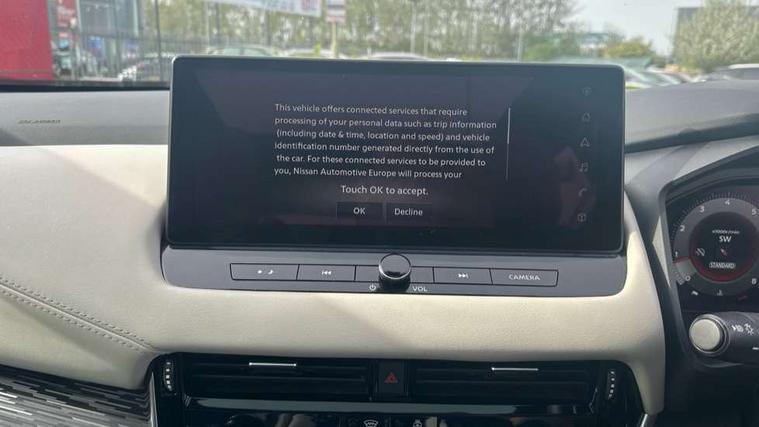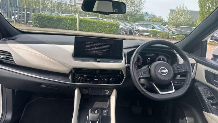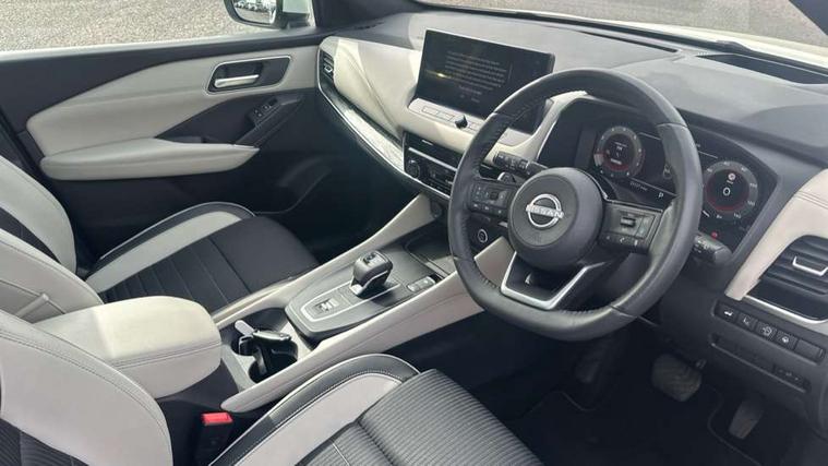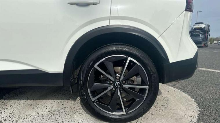 Advanced windscreen head up display, Android auto/Apple CarPlay (Wired), Blind spot warning, Drive modes (sport, normal, eco), Electric speed sensitive power steering, Emergency and breakdown call, Front and rear parking sensors, Full Digital 12.3" TFT Digital Combimeter, Google maps services - search, weather, 3D maps and Google street view, Hands free power tailgate, Idle stop/start system, Intelligent around view monitor, Intelligent Cruise control (ICC), Intelligent driver alert system, Intelligent forward collision warning, Intelligent lane intervention, Lane departure prevention, Lane departure warning system, Lane keep assist, Moving object detection, Nissan connect 12.3 inch touchscreen infotainment system, Nissan connect navigation, ProPilot, Push button starter, Rear cross traffic alert, Rear view camera, Remote control services - door locks, lights, horn and car locator, Telematics - notifications and connectivity services, TomTom live traffic services, Traffic jam pilot, Traffic sign recognition with legal speed adjustment, Trip computer, Virtual personal assistant and firmware over the air capability, Wireless apple carplay, Wireless charging pad, 6 speakers, AM/FM audio system with DAB, Bluetooth audio streaming, Front USB connections (Type-A and Type-C), Rear USB charging only ports (Type-A and Type-C), Auto dimming rear view mirror, Auto rear wiper when reversing, Automatic hazard signal with emergency stop signal, Body colour mirror caps, Body coloured door handles, Bodyside mouldings, Chrome side window finisher, Door handle with button, Electric auto folding door mirrors, Electrically adjustable and heated door mirrors with LED turn indicator, Follow me home headlights, Front and rear LED turning signals, Headlights auto levelling system, Intelligent auto headlights, LED daytime running lights, LED headlights with adaptive driving beam, LED rear lights, One touch front and rear electric windows with remote opening and closing, Partially body coloured bumpers, Privacy glass, Rear bumper with graphite insert, Rear reversing light (bulb lighting), Rear roof spoiler, Rear side wing doors, Rear styling plate, Shark fin antenna, Splash free rain sensing wipers, Super UV and infrared cut glass, Thermaclear heated windscreen, Three blink turn signal, 12v power socket in dashboard and luggage, 2x Rear coat hooks, 3 bench rear seats in 2nd row, 3 rear headrests, 4 folding assist grip, 6 Luggage hooks - 4 on floor, 2 on side, 60/40 split folding rear seat bench, Ambient lighting around centre console, Ambient lighting in front doors, Centre console storage tray, Chrome interior door handles, Cloth/syntech leather monoform upholstery, Dark black/blueish PVC wrapping, Dark headlining, Driver and front passenger sunvisors with illuminated vanity mirrors, Driver seat back pocket, Dual zone automatic climate control with pollen filter, Electrically adjustable driver seat, Electrically adjustable lumbar support for driver, Front and rear door storage, Front centre console and armrest, Front cupholders x 2, Front door with bottle holders, Glovebox with light, Hard trunk cover, Heated front seats, Heated steering wheel, Height adjustable driver's seat, Height adjustable front headrests, Height adjustable passenger seat, Leather steering wheel, Luggage board system, Luggage space lighting, Manual lumbar support on passenger seat, Manually adjustable passenger (slide recline + lifter), Multifunction steering wheel, Passenger seat back pocket, Rear armrest with 2 cupholders, Rear door bottle holders, Single front passenger seat, Soft PVC kneepad, Steering wheel gearshift paddles, Steering wheel switches, Tilt/telescopic adjustable steering wheel, Two rear isofix child seat anchorage points with top tether, Welcome light and doors with console tray ambient lighting, Glass roof pack with roof rails - Qashqai, 3x3 point rear seatbelt pretensioners + load limiters, ABS with EBD and brake assist, Active brake limited slip, Auto hold function, Child locks on rear doors, Curtain and front side, far side airbags, Driver and passenger airbags, Driver, passenger and 2nd row rear seat belt reminder, Electronic parking brake, Front seatbelt pretensioners + load limiters, Height adjustable front seatbelts, Hill start assist, Intelligent blind spot intervention, Intelligent front emergency braking with pedestrian, cyclist recognition and junction assist, Intelligent rear automatic braking, Tyre pressure monitoring system, Vehicle dynamic control, Capless fuel filler, Engine immobiliser, Intelligent Key, Remote central door locking with deadlocking, Thatcham Cat.1 alarm, Interior instrumental panel C finisher, 19" Alloy wheels, Tyre puncture repair kit,