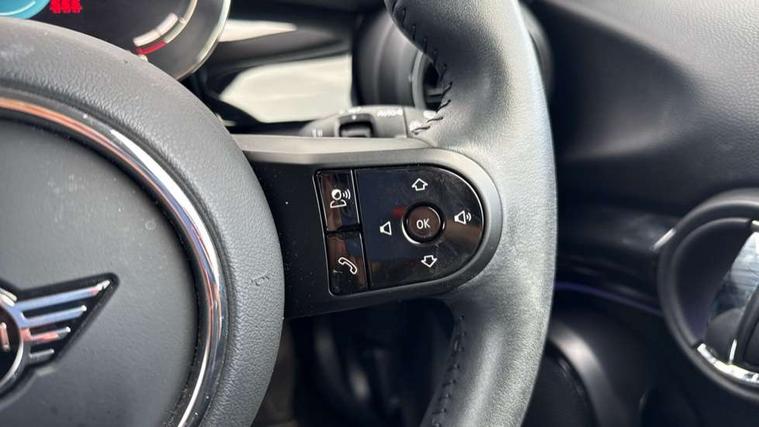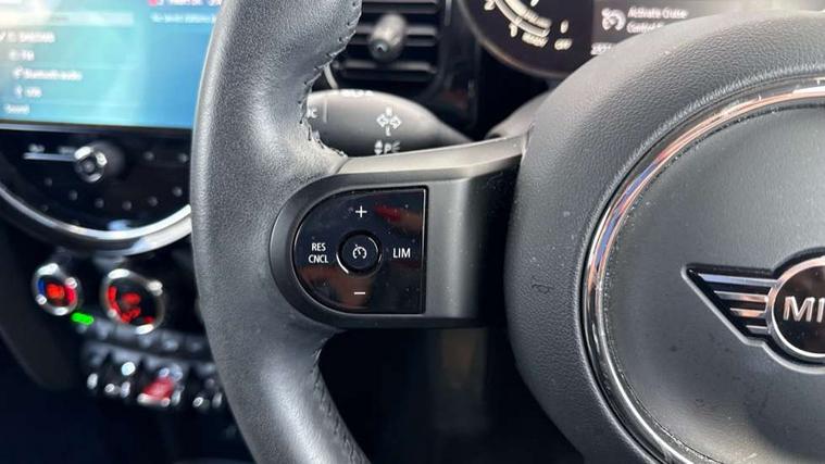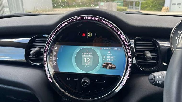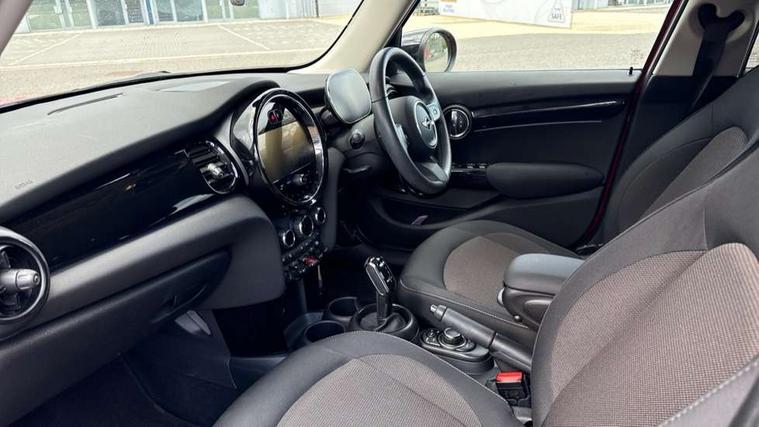 Apple CarPlay, Automatic start/stop function with brake energy recuperation, Compatible mobile phone bluetooth with audio streaming, Cruise control with brake assist, Electro-mechanical speed dependant steering assistance, Flexible car sharing preparation, Instrument cluster, Mini E-call, MINI TeleServices, On board computer, Service interval indicator, Double Vanos system, Fully variable valve control, Gear change indicator display, High precision injection, Performance Control, Steptronic transmission with double clutch, 8.8" touchscreen with LED ring, FM tuner and DAB digital radio, 3rd brake light, Automatic headlight activation switch, Body colour fuel filler cap, Chrome border high gloss black slats radiator grille, Dynamic brake lights, Electric front+rear windows, Exhaust tailpipe on left with chrome finisher, Heated rear window, Heated windscreen washer jets, LED headlight with closed ring and daytime driving lights, Metal door sill strips with MINI imprint, Model logo Cooper on right of tailgate, Rain sensor window wipers, Rear fog lights, Rear LED lights with union jack design, Rear side wing doors, Rear window wiper, Side scuttle panel with integrated indicator, Sun/heat protection glass, White indicator lenses, 12V Accessory socket in centre console, 3 seat bench in 2nd row, 4 lashing eyes in luggage compartment, 60/40 split folding rear seat, Ambient lighting, Carbon black colour line - Knee roll and door armrest, Chrome interior highlights, Cupholders, Front and rear head restraints, Front and rear isofix with front passenger airbag deactivation, Front and rear velour floor mats, Glove compartment, Height and length steering column adjustment, Interior lighting with 12 different colours across the dashboard, underneath door bezel with illuminated laser-engraved design on central display, Leatherette gearshift lever and handbrake gaiters, LED reading lights, vanity mirror lights, front foot well light and spotlight on front seats, Manual air conditioning, Mechanical seat adjustment - forward/back & backrest for front seats and driver seat height adjust, Multifunction steering wheel, Satellite grey headlining including grab handles and clothes hooks, Single front passenger seat, Sport leather steering wheel with speed limiter and audio/communication controls, Storage compartments in doors, Sunvisors with vanity mirrors, 3 point seatbelts on all five seats, 6 Airbags - front, side, head and seat belt tensioners, Anti-lock braking system (ABS), Child locks on rear doors, DSC - Dynamic Stability Control, Front and rear disc brakes, Hill start assist, Single tone fanfare horn, Tyre pressure monitoring system, Alarm system with tilt sensor, monitoring doors, bonnet interior and tailgate, Electronic vehicle immobiliser, Start/stop toggle with keyless go, Piano black interior trim, Tool kit, Tyre repair kit,