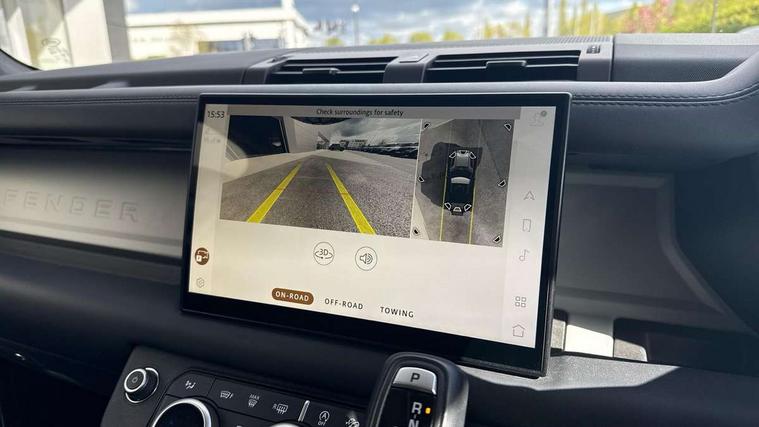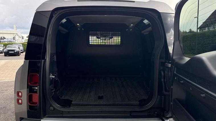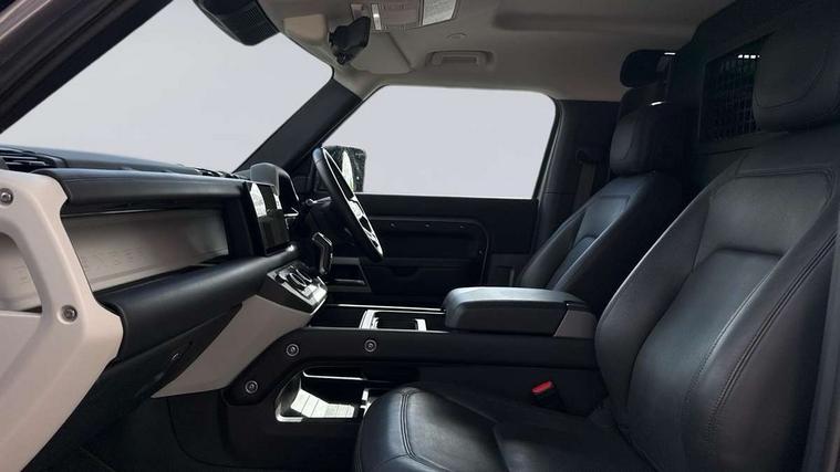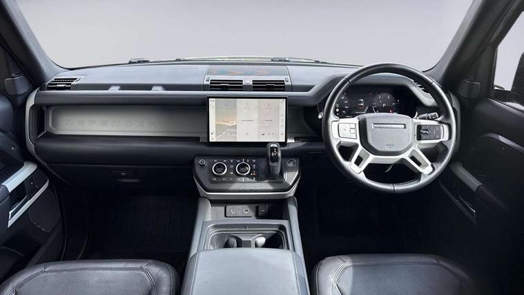 Customer Configurable Autolock, 11.4" touchscreen, 360 parking aid, 3D Surround Camera with 360 View, 180 Rear View, Front Traffic Detection, Forward Vehicle Guidance, Tow Hitch Assist and clear sight Ground View, Adaptive cruise control, Blind spot assist, Brake Hold, Driver condition monitor, Electric power assisted steering (EPAS), Lane keep assist, Low traction launch, Pivi pro connected, Rear collision monitor, Rear traffic monitor, Traffic sign recognition adaptive speed limiter, Trip computer, Tyre pressure monitor, Wade Sensing, Android Auto, Apple CarPlay, DAB Radio (Digital Audio Broadcasting), Meridian 280W sound audio system with 7 speakers with subwoofer, Alpine lights, Assisted tailgate, Auto High Beam Assist, Automatic headlight levelling, Automatic headlights and rain sensitive front wipers, Centre high mounted stop light, ClearSight interior rear view mirror, Electric heated/power fold door mirrors with approach lights and auto dimming driver side, Electric windows with one touch open/close and anti-trap, Exterior signage panel, Follow me home lighting, Front fog lights, Heated rear window with timer, Heated windscreen, LED tail light, Privacy glass, Puddle lights, Rear fog lights, Rear wash wiper, Side-hinged tailgate, Standard roof, Standard tread plates, 14 way heated and cooled electric adjustable memory front seats with 4 way manual headrests, Additional lashing points, Dual zone climate control, Durable rubber cabin flooring, Electric adjustable steering column, Footwell lights, Full height bulkhead behind row 1 seats, Glovebox storage, High sided rubber mats, Loadspace cover, Loadspace hooks, Loadspace rubber mat, Overhead stowage for sunglasses, Rear centre headrest, Rear reading light, Standard seating configuration, Sunvisors with illuminated vanity mirrors, Twin front cupholders with cover, Upgraded loadspace LED lighting, Online pack - Defender with data plan, Brake pad wear indicator, Electronic traction control, Emergency braking, Front airbags, with passenger seat occupant detector, Power operated child locks, Remote for (e-Call, Optimised assistance call, InControl app, Climate, beep and flash and door), Seat belt reminder, Intrusion sensor, Keyless entry system, Locking wheel nuts, 8 speed automatic transmission, ABS and EBA, All wheel drive, CBC - (Cornering brake control), Dynamic stability control, Electronic brake force distribution, Electronic park brake, Gradient acceleration control, Hill Descent Control, Hill start assist, Particulate filter (DPF), Push button start, Roll stability control, Trailer stability assist, Twin speed transfer box (high/low range), Extended leather upgrade,