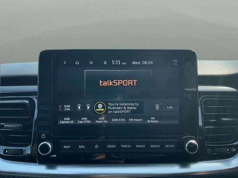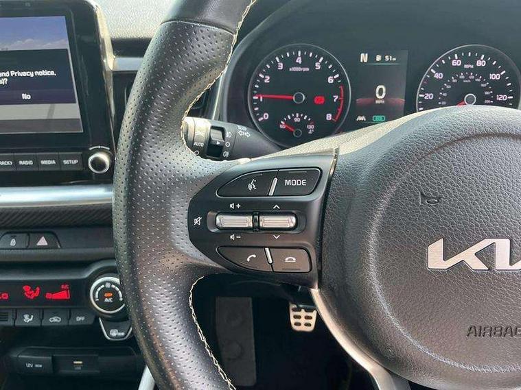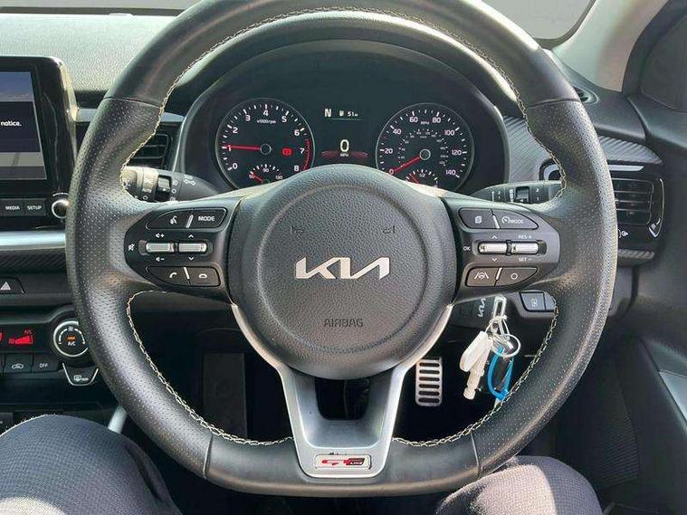 4.2" supervision colour cluster display, 8" touchscreen navigation, Apple car play/Android Auto with voice control, Cruise control + speed limiter, Drive mode selector, Electric power steering, Emergency stop signalling system, External temperature display, Forward Collision-Avoidance Assist (FCA) - City/Pedestrian/Cyclist, Kia connected services featuring TomTom live, Lane keeping assist system (LKAS), Driver attention warning (DAW) and High beam assist (HBA), Rear parking sensor, Reversing camera system, Trip computer, UVO connect, Intelligent Stop and Go, Audio system with 6 speakers, Bluetooth with music streaming, Front USB port, Rear USB port, Steering wheel mounted controls, Aero blade type windshield wipers, All round electric windows with drivers auto up/down function, Automatic defog system, Automatic headlights control, Black rear spoiler with high mounted braking light, Black side sill, door garnish and wheel arch trims, Black/body colour bumpers, Body coloured exterior door handles, Chrome side window trim, Electrically adjustable/heated/folding door mirrors with LED indicators, Front and rear silver skid plates, Gloss black door mirrors with matt black lower housing, GT-Line body kit, Headlight levelling device, Heated rear window, High gloss black and satin radiator grille, LED Bi-function projection headlights with static bending, LED daytime running lights, LED front fog lights, LED rear combination lights, Privacy glass - Rear windows and tailgate, Rear fog lights, Rear wash/wipe, Roof rails, Shark fin antenna, Solar windshield glass, Speed variable front wipers, Tinted glass, Welcome and follow-me home light functionality, Windscreen Washer Level Warning, 12V power point front, 60/40 split folding rear seat, Air filter, All-round height adjustable headrests, Aluminium pedals, Automatic air conditioning, Centre armrest storage box, Centre console with cupholders, D-Cut perforated leather trimmed steering wheel, Dash illumination dimmer switch, Driver's seat height adjuster, Dual Height Luggage Area Floor, Front and centre cabin lights, Front and rear door map pockets with bottle holder, Gear shift indicator, Glovebox illumination, GT-Line cloth/faux leather upholstery, ISOFIX Child seat top tethers and anchor fixings outer rear seats, Leather trimmed gearshift, Luggage area light, Luggage area parcel shelf, Luggage net with hooks, Overhead console lamp, Overhead console with sunglasses cases, Passenger front seatback pockets, Satin chrome interior door handles, Sunvisors with vanity mirror illumination (Driver and front passenger), Tilt/telescopic adjustable steering wheel, ABS with Electronic Brakeforce Distribution (EBD) and Brake Assist System (BAS), All round 3-point seatbelts, Electronic stability control (ESC) and vehicle stability management (VSM), Front passenger airbag cut-off switch, Front seatbelt pretensioners + load limiters, Height adjustable front seatbelts, Hill start assist control (HAC), Impact sensing auto door unlocking, Rear seat Occupancy alert, Seatbelt reminder warning, Twin curtain airbags, Twin front airbags, Twin front side airbags, Tyre pressure monitoring system, Alarm system, Door deadlocks, Engine immobiliser, Locking wheel nuts, Remote central door locking with fold away key, Speed sensitive auto door locking, Visible vehicle identification number, High gloss black centre fascia, 17" GT-Line alloy wheels, Tyre mobility kit,