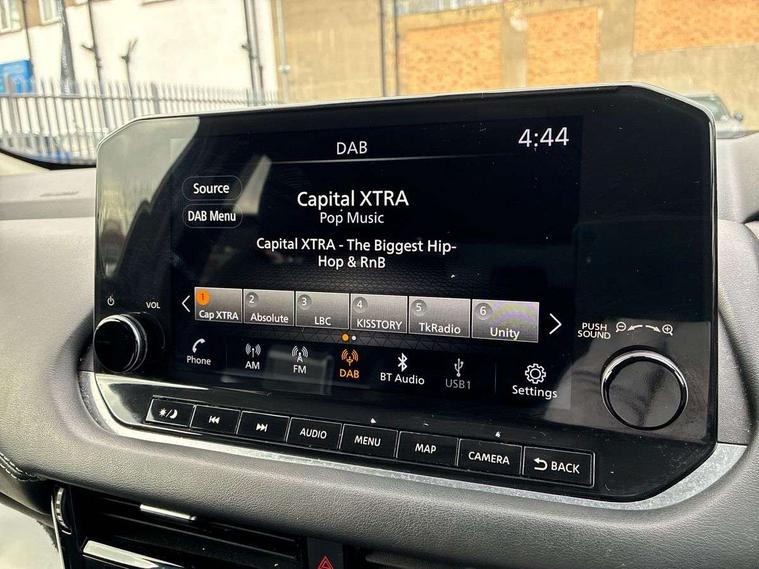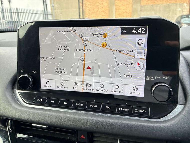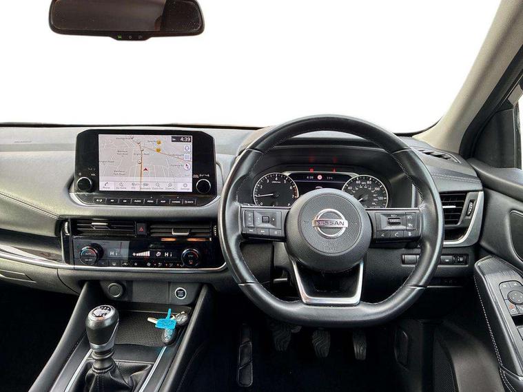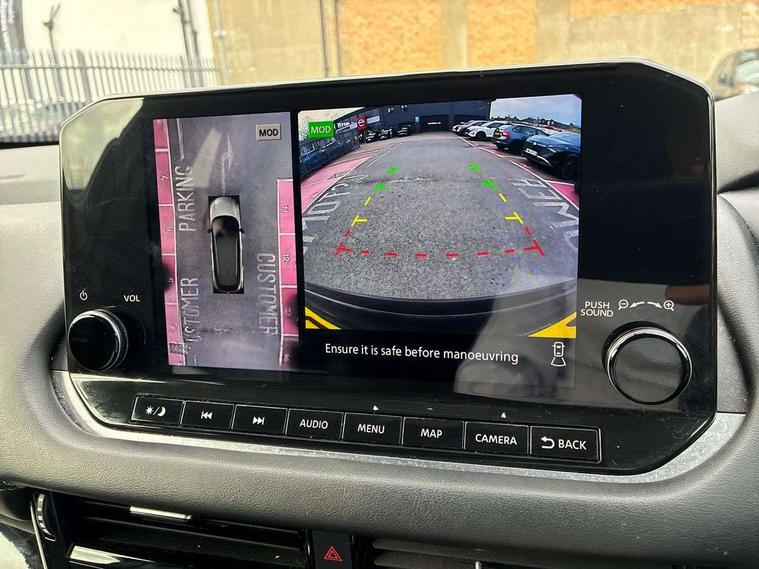 Blind spot warning, Drive modes (sport, normal, eco), Electric speed sensitive power steering, Emergency and breakdown call, Front and rear parking sensors, Full Digital 12.3" TFT Digital Combimeter, Google maps services - search, weather, 3D maps and Google street view, Idle stop/start system, Intelligent around view monitor, Intelligent Cruise control (ICC), Intelligent driver alert system, Intelligent forward collision warning, Intelligent lane intervention, Lane departure prevention, Lane departure warning system, Maximum speed limiter, Moving object detection, Nissan connect 12.3 inch touchscreen infotainment system, Nissan connect navigation, Push button starter, Rear cross traffic alert, Remote control services - door locks, lights, horn and car locator, Telematics - notifications and connectivity services, TomTom live traffic services, Traffic sign recognition with legal speed adjustment, Trip computer, Virtual personal assistant and firmware over the air capability, Wireless Apple CarPlay and wired Android Auto, 6 speakers, AM/FM audio system with DAB, Bluetooth audio streaming, Front USB connections (Type-A and Type-C), Rear USB charging only ports (Type-A and Type-C), Auto dimming rear view mirror, Auto rear wiper when reversing, Automatic hazard signal with emergency stop signal, Body colour mirror caps, Body coloured door handles, Bodyside mouldings, Chrome side window finisher, Door handle with button, Dusk sensor, Electric auto folding door mirrors, Electrically adjustable and heated door mirrors with LED turn indicator, Follow me home headlights, High beam assist, Intelligent auto headlights, LED daytime running lights, LED Headlights, LED rear lights, One touch front and rear electric windows with remote opening and closing, Partially body coloured bumpers, Privacy glass, Rain sensor, Rear bumper with graphite insert, Rear reversing light (bulb lighting), Rear roof spoiler, Rear side wing doors, Rear styling plate, Shark fin antenna, Splash free rain sensing wipers, Super UV and infrared cut glass, Three blink turn signal, 12v power socket in dashboard and luggage, 2 way electrical driver lumbar adjustment, 2x Rear coat hooks, 3 bench rear seats in 2nd row, 3 rear headrests, 4 folding assist grip, 6 Luggage hooks - 4 on floor, 2 on side, 6-way manually adjustable driver's seat, 60/40 split folding rear seat bench, Ambient lighting around centre console, Centre console storage tray, Chrome interior door handles, Cloth monoform upholstery, Driver and front passenger sunvisors with illuminated vanity mirrors, Driver seat back pocket, Dual zone automatic climate control with pollen filter, Front and rear door storage, Front cupholders x 2, Front door with bottle holders, Glovebox with light, Hard trunk cover, Height adjustable front headrests, Leather shift knob, Leather steering wheel, Luggage board system, Luggage space lighting, Manually adjustable passenger (slide recline + lifter), Multifunction steering wheel, Passenger seat back pocket, PVC front centre console and armrest, Rear armrest with 2 cupholders, Rear door bottle holders, Single front passenger seat, Soft PVC kneepad, Steering wheel switches, Sunglasses holder, Tilt/telescopic adjustable steering wheel, Two rear isofix child seat anchorage points with top tether, Welcome light and console tray ambient lighting, 3x3 point rear seatbelt pretensioners + load limiters, ABS, ESP, EBD and brake assist, Active brake limited slip, Auto hold function, Child locks on rear doors, Curtain and front side, far side airbags, Driver and passenger airbags, Driver, passenger and 2nd row rear seat belt reminder, Electronic parking brake, Front seatbelt pretensioners + load limiters, Height adjustable front seatbelts, Hill start assist, Intelligent blind spot intervention, Intelligent front emergency braking with pedestrian, cyclist recognition and junction assist, Intelligent rear automatic braking, Tyre pressure monitoring system, Vehicle dynamic control, Capless fuel filler, Engine immobiliser, Nissan i-key, Remote central door locking with deadlocking, Thatcham Cat.1 alarm, Interior instrumental panel B finisher, 18" Diamond cut alloy wheels, Tyre puncture repair kit,