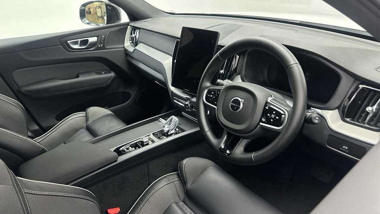 11.2" centre console touch screen, 12.3" Progressive Driver Display, 360 degree surround view parking camera with side proximity sensors, Adaptive cruise control, Adjustable steering wheel force, Android auto (Wired), Apple carplay (wired), Bluetooth handsfree system, Driver alert control with lane keeping aid, Emergency services call system, Front and rear park assist, Google Automotive Services, Intelligent speed assistance, Oncoming Lane Mitigation, PAS, Power operated tailgate with handsfree opening and closing, Service interval indicator, Speed limiter, Speed sensitive steering, Trip computer, Volvo cars services with app, Volvo on call with App, Wireless/Inductive Mobile Phone Charging, 8 speed automatic transmission with start/stop + manual change functions, DAB Digital radio, Premium Sound by Harman Kardon, dirac unison, dolby pro logic II surround sound, 13 speakers/600W output and fresh air subwoofer, Steering wheel remote infotainment controls, Adaptive brake lights with high level LED brake lights, Auto dimming interior + exterior mirrors, Automatic headlight levelling system, Automatic LED Headlights + Active high beam incorporating daytime running lights, Dark tinted windows for rear side windows and cargo area, Electric adjustable/heated/auto power folding door mirrors, Electric front+rear windows, Front aluminium tread plates, Heated front windscreen, High gloss black door mirrors and window surround, High gloss black front and rear bumper decoratives, High gloss black front grille, Surround, Strikethrough and Ironmark, High gloss black rear model, engine and volvo logo badges, Home safe and approach lighting, Integrated roof rails in high gloss black, Puddle lights, Rain sensor with automatic windscreen wiper activation, Rear side wing doors, Rear wiper, Roof antenna, Roof spoiler, Tinted windscreen, Visible VIN plate, 12V socket in front tunnel console and luggage compartment, 3 seat bench in 2nd row, 3 Spoke tailored steering wheel with chrome trim, 4 Zone electronic climate control, A-pillar parking ticket holder, Air purifier particulate matter (PM) 2.5 filter, B Pillar ventilation, Bright metal luggage scuff plate, Centre console cupholders and storage, Charcoal floor mats, Contour sports seats with nappa soft leather/textile upholstery, Front and rear courtesy lights, Front and rear door pocket illumination, Front cupholder illumination, Front footwell illumination, Front reading lights, Front seat cushion extensions, Glovebox compartment with illumination, Head restraints for all seats, Heated front seats, Heated steering wheel, Height/reach adjustable steering column, Illuminated luggage compartment, Illuminated vanity mirrors + ticket holder, Inner door release handle illumination, ISOFIX attachment on outer rear seats, Load cover, Load protection net, Multi directional lumbar support, Power driver seat with memory + exterior mirrors memory, Power height adjustable passenger seat, Power passenger seat with memory, Rear armrest with cupholder, Rear footwell and front and rear side step illumination, Rear reading lights, Rear seat concealed storage, Single front passenger seat, Tailgate illumination and ambient door lighting, Underfloor stowage compartment, Versatile split folding rear seat - 60/40, Driver assist pack without Adaptive cruise control - XC60, 5 three point seatbelts, City safety with steering support with Pedestrian + cyclist + front collision warning with full auto brake and rear auto brake, Drivers knee airbag, Dual stage driver/passenger airbags, Electronic parking brake with auto hold, First aid kit, Front seats SIPS airbags, Hill descent control - Off-road drive mode, Hill start assist, IC (Inflatable Curtains) - Full Length, Passenger airbag cut-off device, Power child locks on rear doors, Road sign information display, Run off Road Mitigation, Run off Road Protection, Seatbelt reminder and pretensioners, SIPS (Side Impact Protection System), Slippery road and hazard light alert, Stability and Traction Control with Spin control, Engine Drag Control and Corner Traction Control, Tyre pressure monitoring system, Vehicle deceleration control with Anti-lock Brake System, Electronic Brake Distribution and Emergency Brake Assist, Warning triangle, WHIPS whiplash protection system - front, Anti-theft alarm including immobiliser/volume sensor + level sensor, Key integrated remote control central locking + fuel flap with deadlocking system and auto open/close power windows, Keyless Drive (includes Keyless Entry and Keyless Start), Locking wheel nuts, Private locking for tailgate, 21" 5 Double spoke high gloss black alloy wheels, Summer tyres,