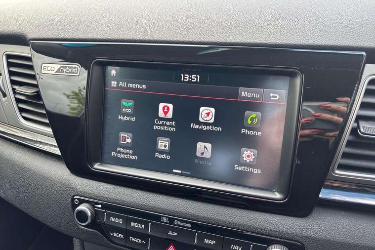 8" touch screen sat nav with TMC, Apple car play/Android Auto, Bluetooth audio streaming with voice recognition, Colour information display, Digital clock, Drive mode selector, Emergency stop signalling system, Front parking sensors, Kia connected services, Lane keep assist, Power Steering, Rear parking sensors, Reversing camera, Roll over sensor, Speed limiter, Trip computer, Wireless Smartphone charger, 'Shark fin' mobile antenna, 4.2-Inch Colour TFT Screen, 8 Speakers, DAB Radio with MP3, JBL Premium Sound System, Steering wheel mounted controls, Subwoofer, USB connection located in centre console, USB/aux input socket, Auto dimming rear view mirror, Automatic defog system, Automatic headlight control system, Black side sills, Body colour bumpers, Chrome beltline trim, Chrome door handles, Chrome grille surround, Driver's side wide angle mirror, Electric adjustable/heated/folding door mirrors, Electric windows one touch open/close, Follow me home headlights, Front fog lights, High gloss black door mirrors, LED daytime running lights, LED indicators in door mirrors, LED tail lights, Manual headlight levelling, Matt black radiator grille, Privacy glass (rear side windows and rear screen), Projector headlamps, Rain sensing front wipers, Rear spoiler, Rear wiper, Roof rails, Solar glass, Wheel arch mouldings, 12V power in rear centre console, 60/40 split/folding 2nd row of seats, 8 way electric adjustable drivers seat, Ambient lighting, Assist grips, Centre console storage box, Door armrest in leather, Driver's electric lumbar adjustment, Driver/passenger sunvisors with illuminated vanity mirrors, Dual zone automatic air conditioning, Front and rear door pockets, Front map light with sunglasses case, Front seatback pockets, Front/rear centre armrests, Headlining in Light grey, Heated front seats, Heated steering wheel, Height adjustable headrests, High gloss black steering wheel trim, Illuminated ignition key hole, Isofix child seat attachment, Leather trimmed gearshift, Leather trimmed steering wheel, Leather upholstery, Luggage area lamp, Luggage compartment cover, Luggage net with hooks, Rear armrests with cupholder, Satin chrome interior door handles, Stainless Steel Scuff Plates, Tilt/telescopic adjustable steering wheel, Ventiliation ducts to rear compartment, 3 point seatbelts on all seats, ABS, Active front headrests, Automatic unlocking of doors in case of impact, Autonomous emergency braking, Curtain airbags, Drivers knee airbag, Electronic stability control, Foot operated parking brake, Height adjustable front seatbelts, Hill start assist control (HAC), Passenger airbag deactivate switch, Traction control, Twin front and side airbags, Tyre pressure monitoring system, Anti theft alarm system, Deadlocks, Folding key, Immobiliser, Locking wheel nuts, Remote central door locking, Speed sensitive auto door locking, High gloss black centre fascia, High gloss black door inserts, Tyre mobility system,