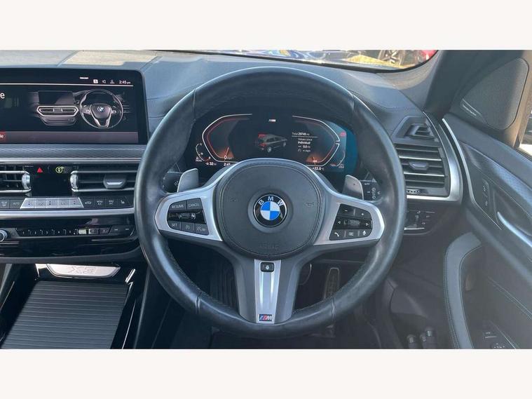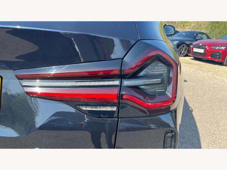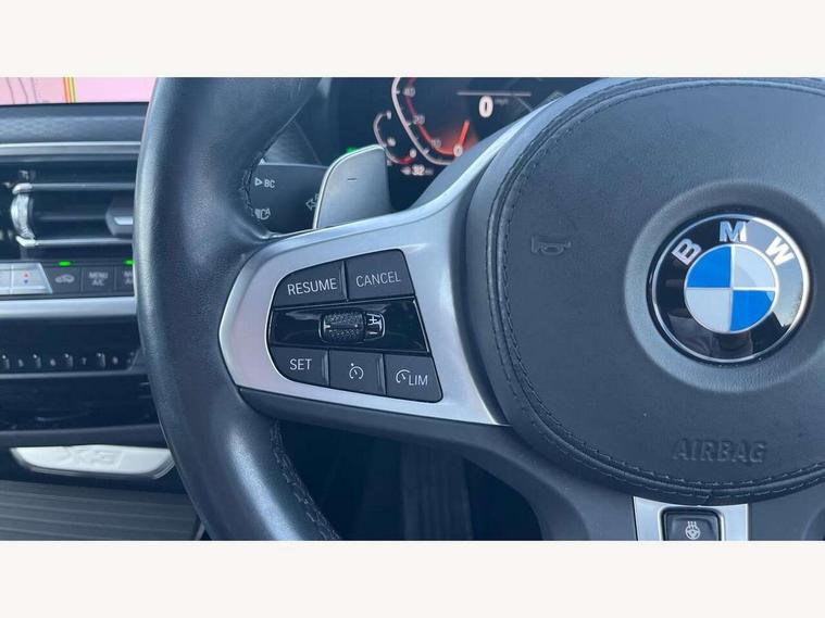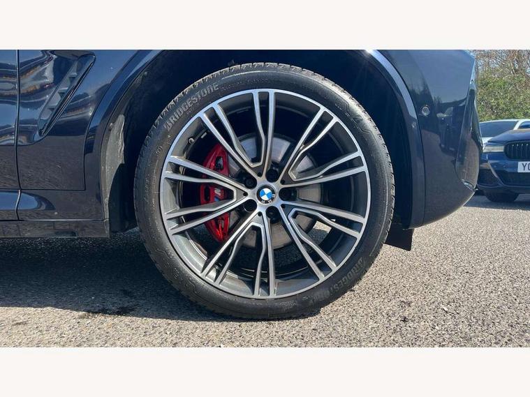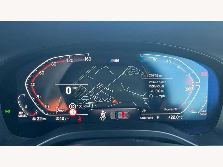 Active Guard, Attentiveness assist, BMW Live Cockpit Professional nav system including 12.3" instrument display + 12.3 high resolution control display, BMW Online services, BMW Teleservices, Brake pad wear indicator in front and rear, Check Control warning system for monitoring of lights and door/luggage compartment open warning, Condition based service - BMW service history, electronic service booklet, integrated owner's handbook, Connected drive services, Cruise control with brake function + speed limiter, Electric boot lid, Front/rear Parking distance control, iDrive touch controller with 8 favourite buttons, Instrument cluster with speedometer with mph readout, tachometer, fuel gauge and oil temperature gauge, Lights on warning by audio warning signal when ignition is switched off, Oil sensor for level and grade, warning by check control system, On board computer - average speed+fuel consumption, service interval, clock/date, odometer/trip meter, outside temperature display and ice warning, Optimum shift indicator, Personal Profile - automatic lock when driving away selectable, Run flat indicator, Stop/start system, Variable sports power steering with drive performance control Sport+ mode, Automatic transmission with gearshift paddles, Diesel particulate filter, Incorrect fuelling protection, Larger capacity fuel tank, M sport suspension, Multi-link rear suspension, BMW professional radio/CD/MP3, DAB tuner, Acoustic glazing, Automatic windscreen wipers and automatic headlight, Black finish on B pillars, Body colour door handles, Body colour electric adjust heated aspherical door mirrors, Body colour roof mouldings, Body coloured bumpers, Direction indicator, side repeaters, integrated in exterior mirrors, Dynamic brake lights, Exhaust tailpipes - dual, round, split left and right with chrome finisher, Fingertip control / anti-trap function on electric window, Folding wing mirrors with auto dimming, Follow me home headlights, Front and rear bumper system with replaceable deformation elements, Front and rear electric windows, Gloss chrome tailpipes finishers, Green tinted heat insulating glass, Heated windscreen washer jets, High beam assistant, High gloss black shadow line roof rails, High gloss shadowline exterior trim in decorative moulding side frame/recess cover/guide rail/B, C pillars/mirror frame and triangle with mirror base, High level 3rd brake light incorporating LED Technology, Interior rear view electrochromatic mirror with automatic anti dazzle function, LED tail lights, Lightweight engineering, M aerodynamic bodystyling, M Sport entry door sill strips, Model designation, Rain sensor, Rear side wing doors, Rear wing door, Rear wiper, Shark fin antenna, Side exterior M designation badges, Visible VIN plate, Welcome lighting, Windscreen wipers with adjustable interval, 12V power point in luggage area, 12V power socket in front centre console, 2 x USB Type C ports for charging and data transmission (front centre console) and 2 x USB Type C ports for charging (rear centre console), 3 rear headrests, 3 seat bench in 2nd row, 3 zone automatic air conditioning, 4 lashing points to secure luggage, 40:20:40 split folding rear seat with loading system, Ambient lighting, Anthracite headlining, Automatic interior light when door is opened/ignition switched off or via remote key, Floor mats in velour, Foldable storage floor with compartment, Four grab handles integrated in roof lining, Front and rear bottle holders integrated into door trim storage compartments, Front and rear side armrests integrated into door trim, Front centre armrest with storage compartment, Front footwell lights, Front head restraints, Front passenger seat, Front sports seats, Front/rear courtesy lights with soft on/off dimming, Front/rear reading lights, Heated front seats, Isofix rear child seat preparation, Leather gear knob, Lockable glove compartment, Luggage area underfloor compartment, Luggage compartment lighting, M sport leather steering wheel, Multifunction steering wheel, Parcel shelf removeable and storable under boot floor, Reach and rake adjustable steering column, Rear centre armrest with 2 cupholders, Removable / retractable luggage cover, Slope adjustable rear seats, Storage compartment in rear centre console and front/rear door trims, Sun visors with vanity mirrors and ticket pocket, Toolkit located in luggage compartment, Two front cupholders with removable oddments tray/lid, Connected pro pack - X3, Driving assistant pack - X3, ADB - Automatic Differential Brake, Anti-lock braking system (ABS) with brake assist, Automatic Stability Control (ASC), Battery safety cut-off, BMW emergency call, Brake drying, Brake energy regeneration, Braking pre-tensioning, Child locks on rear doors, Cornering brake control (CBC), Crash Sensor - activation of central locking release, hazard warning light and interior lighting, Deactivation of fuel pump in the event of a crash, Driver and front passenger front and side airbags with passenger deactivation and ITS front and rear head airbags, Driver and front passenger knee airbag, DSC+, Dynamic brake control, Dynamic Traction Control - DTC, Electromechanical parking brake, Hill descent control, Hill start assist, Seatbelt security check for front seats, Side impact protection, Three point seatbelts to all seats with front and outer rear pyrotechnic belt tensioners and seat belt force limiters, Two tone horn, Tyre pressure sensor, Ventilated front and rear disc brakes, Warning triangle and first aid kit, Central locking switch for all doors, fuel filler cap and luggage compartment, Electronic engine immobiliser, Locking wheel nuts, Remote control including two integrated key - one button for open/close all lockable content, windows and separate button for open luggage compartment, Remote control Thatcham category 1 alarm, Start/stop button with Comfort Go keyless engine start and auto Start/stop deactivation button, Low rolling resistance tyres,