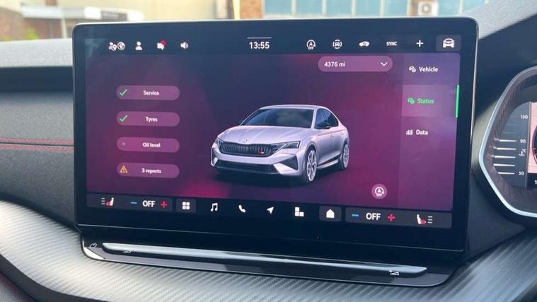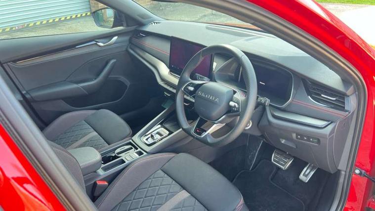 1x USB Typc C port in rear view mirror, 4x USB Type C ports - 2x in front centre console and 2x in rear (45W), Drive mode selection, Driver fatigue sensor, eCall emergency system, Electrically operated boot with virtual pedal, Front assist system, Progressive dynamic steering, Traffic sign recognition, Turn Assist, Virtual Cockpit - 10.25" digital display, Voice control system, Wireless charging (15W) with cooling function, Wireless SmartLink for Apple CarPlay and Android Auto, Electronically controlled limited slip differential, vRS suspension, 13" touchscreen display with navigation, DAB Digital radio, Aero front windscreen wipers with intermittent function, Auto dimming rear view mirror, Black sport exhaust pipes, Body colour bumpers, Body colour door handles, Electric front and rear windows, Exterior gloss black sports styling including front grille, window surrounds, door mirrors and badging, Gloss black diffuser, Gloss black spoiler, Heated rear windscreen, High beam control, High level third brake light, Ice scraper in fuel cap, LED daytime running lights, Logo projection in front doors, Rain and light sensors, Rear fog light on one side, Rear privacy glass, Rear side wing doors, Unique vRS bumpers and exterior styling, 12 volt socket in boot, 3 rear headrests, 3 seat bench in 2nd row, 4 foldable roof handles, Aluminium pedals, Front head restraints, Front sport seats, Heated front seats, Illuminated glovebox, Interior door handles in dark chrome, Jumbo Box storage, Luggage compartment lighting x2 lights, Mechanical rear seat release from boot, Parcel shelf - folding, Single front passenger seat, Steering wheel in black leather with black stitching, Storage compartments in left and right of boot, Sun visors with mirrors, Sunglasses storage, Ticket holder, Umbrella in door panel, Unsplit rear bench seat, split folding backrest with centre armrest with cupholder, Waste bin in door panel, Comfort package - Octavia, Family package - Octavia, Light and view package plus - Octavia, vRS Design Selection pack - Octavia, 3x3 point rear seat belts, Alarm with interior monitoring, tilt sensor and back up horn, Curtain airbags and front side airbags, Driver and front passenger airbags, Drivers knee airbag, Electronic parking brake, ESC including ABS, EBV, MSR, ASR, EDS, HBA, DSR, Front central airbag, Hill hold assist, ISOFIX on front passenger seat and outer rear seats, Passenger airbag deactivate switch, Red brake calipers, Three point seat belts in front and rear, Two tone horn, Tyre pressure monitor, Visual and acoustic seat belt reminder, Warning reflectors in front door, Anti-theft wheel bolts, Keyless start/stop, Remote central locking, Gloss black air vent surrounds, 19" Elias anthracite alloy wheels,