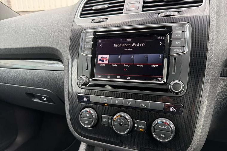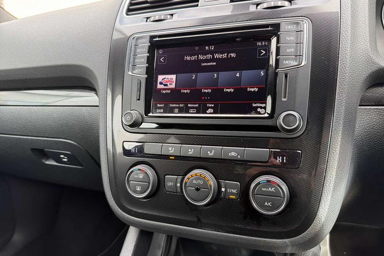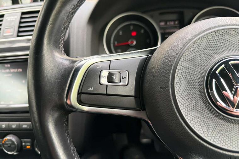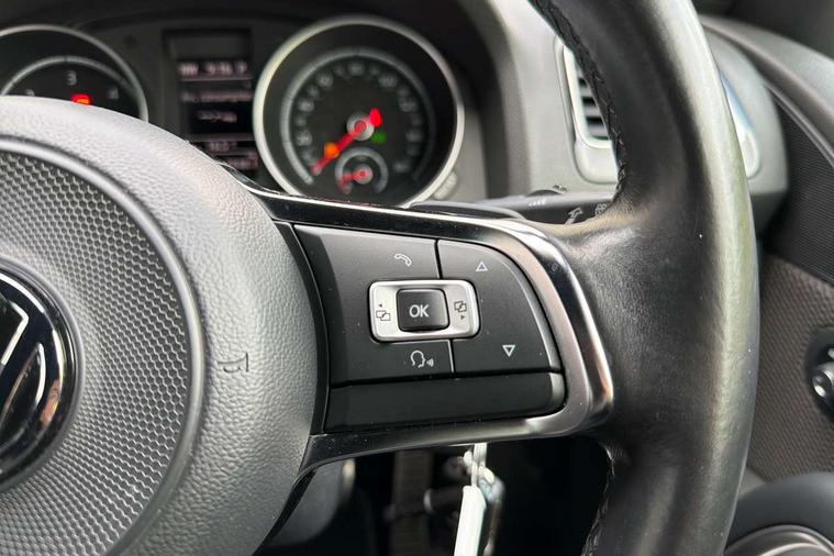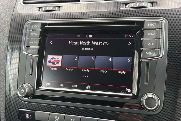 'Lights On' Reminder warning buzzer, Bluetooth system, Discover navigation system with 6.5" colour screen + radio/CD player and aux in, Exterior temperature gauge, Flat tyre indicator, Front and rear parking sensors, Multifunction computer - Highline, Rev counter, Service interval indicator, Speed sensitive variable PAS, Diesel particulate filter, DAB Digital radio, MDI with USB/iPod connection cables, Volkswagen media control, Auto dimming rear view mirror/rain sensor, Automatic activation of hazard warning lights, Black door mirrors, Black rear roof spoiler, Body colour door handles, Body coloured bumpers, Coming home function, Dusk sensor + auto driving lights, Electric front windows, Electrically heated + operated door mirrors, Front fog lights, Heat insulated tinted glass 90% light absorbing from B pillar back, Intermittent rear wash/wipe, LED rear lights, Range adjustable headlights, 12V socket in luggage compartment, 2 bag hooks in luggage compartment, 2 cupholders, 2 rear head restraints, 2 Zone electronic climate control with automatic air recirculation, 3 spoke multifunction leather steering wheel with radio controls + paddle shift, 4 lashing points on luggage floor, 50/50 split folding rear seat backrest, Alcantara/cloth upholstery, Aluminium pedals, Black roof lining, Dust/pollen filter, Easy entry slide seats (access to rear seats), Front + rear carpet mats, Front centre armrest with storage compartment, Front footwell illumination, Front reading lights, Height adjustable front seats, Height/reach adjust steering wheel, Illuminated vanity mirrors, Interior light with delay, Isofix Preparation 2 Rear child seats, Leather gear knob, Leather handbrake grip, Lockable/illuminated air conditioned glovebox, Luggage compartment cover, Luggage compartment lighting, Sports front seats, Storage compartments in doors, 2 rear 3 point safety belts, 2x3 point front seatbelts with pre-tensioners, ABS+EBD+Brake assist, Door open warning reflectors, Driver/Front Passenger airbags, Driver/Passenger whiplash optimised head restraints, ESP with EDL + ASR, Front and rear curtain airbags, Front seat side impact airbags, Hill hold function, Passenger airbag deactivation system, Seatbelt warning, Two tone horn, Alarm with interior protection, Electronic engine immobiliser, Remote central locking with 2 remote folding keys, Brushed aluminium instrument surrounds, Chequered flag decorative inserts, 18" Lisbon black alloy wheels with anti-theft wheel bolts, Steel space saver spare wheel,