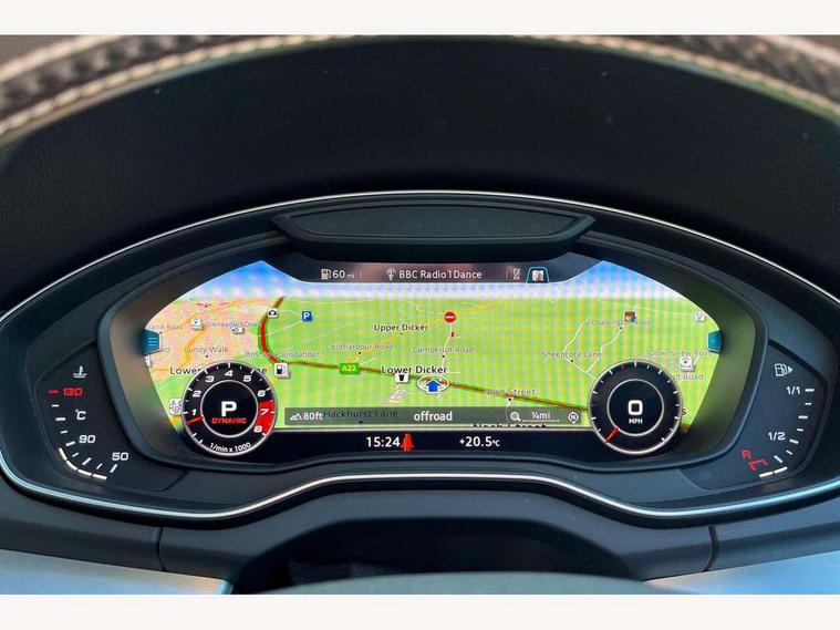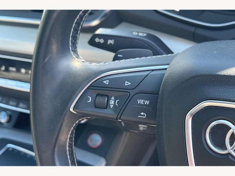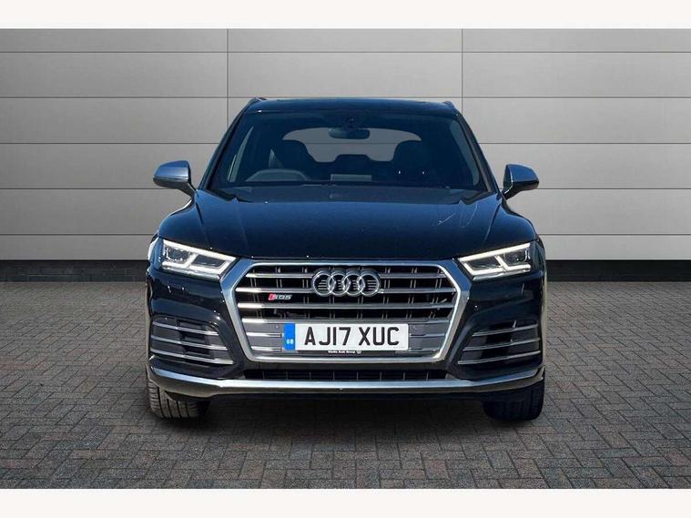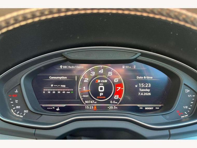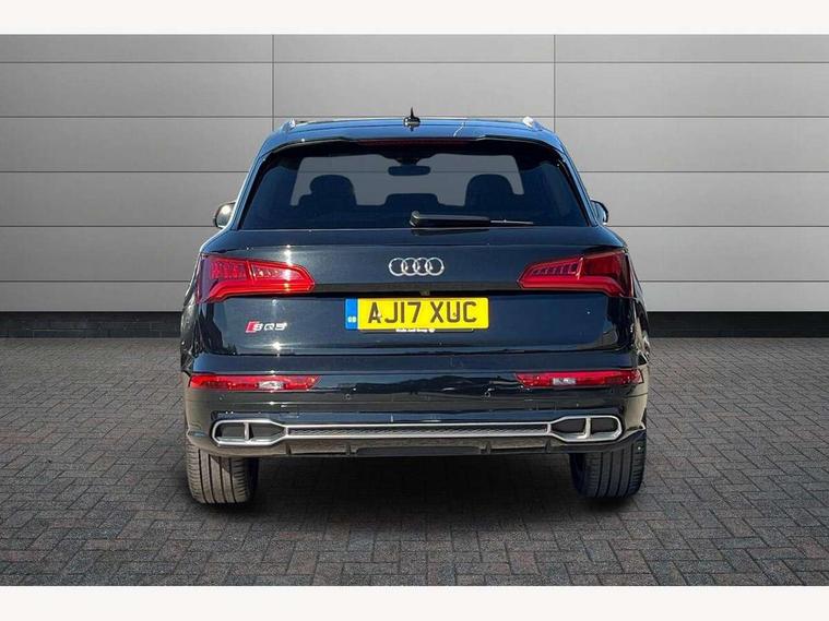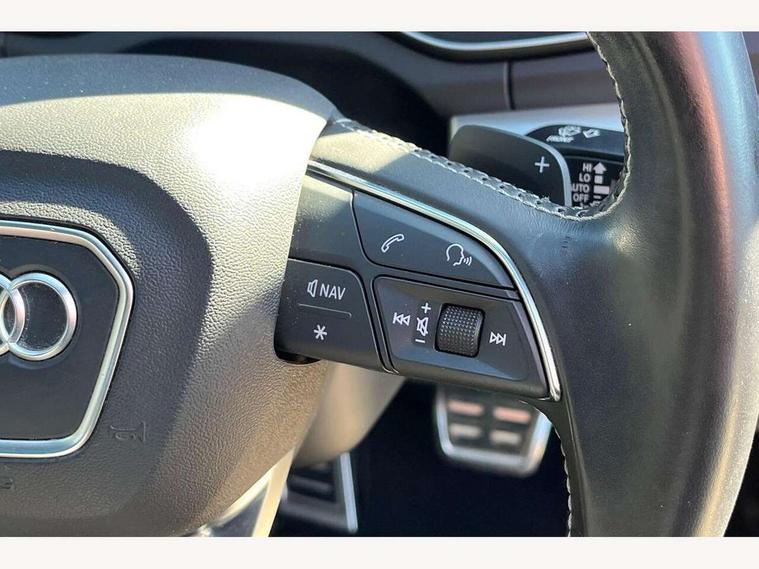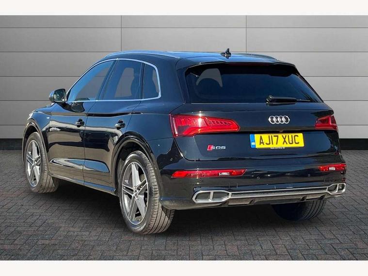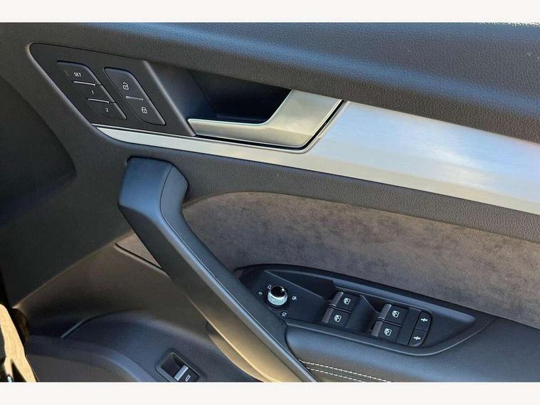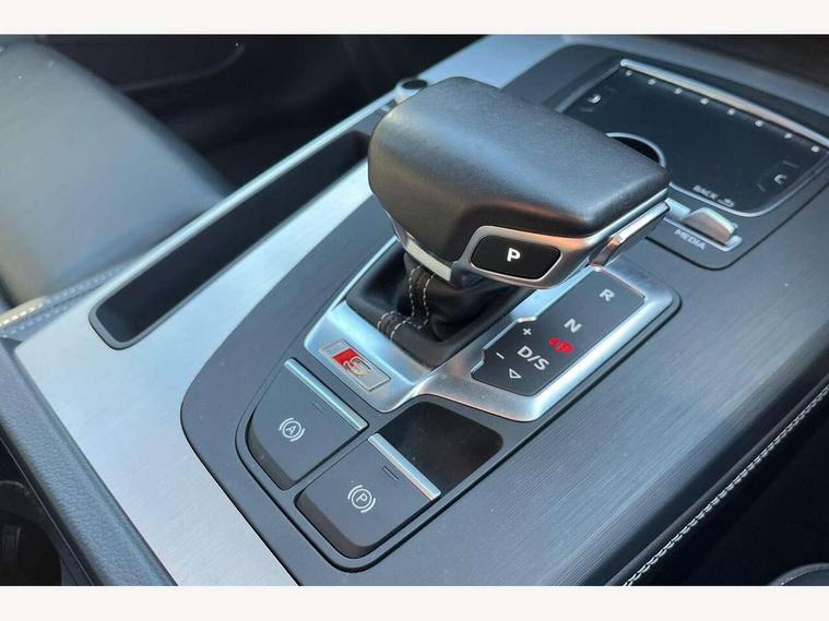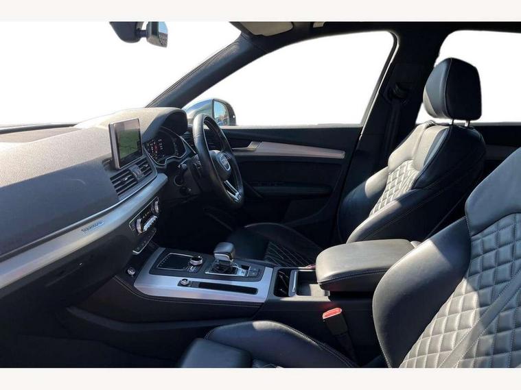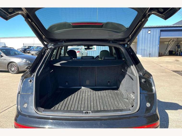Audi connect, Audi drive select, Audi Pre sense collision avoidance, Audi smartphone interface, Driver information centre with colour display in instrument panel, MMI Navigation plus, Power tailgate, Service interval indicator, Voice control system, 2 USB ports, 2x SD card slot, Auxiliary input socket, CD player, DAB Digital radio, MMI radio plus with 7" colour MMI screen and MMI controller, Acoustic windscreen, Aluminium roof rails, Aluminium sill plates, Auto dimming rear view mirror, Black high gloss front air inlet in matt aluminium effect, Body colour bumpers, Body colour door mirrors, Body colour rear diffuser insert, Chrome exhaust tailpipe, Electric headlight adjustment, Electrically adjustable and heated door mirrors, Front and rear electric windows, Front fog lights, Headlight range control, Headlight washers, High beam assistant, Honeycomb side air inlet in titan black, Light and rain sensor for auto activation of lights and windscreen wipers, Loading sill protector in stainless steel, Privacy glass with front acoustic glazing, Rear diffuser strip in matt aluminium silver, Rear spoiler, Rear wiper, S Line side skirts, Selenite silver underbody guard, Twilight grey matt radiator grille with matt aluminium horizontal chrome struts, 3 rear headrests, 3 zone climate control, 4 way electric lumbar support for driver and front passenger, 40:20:40 split folding rear bench seat, Black cloth headlining, Fine Nappa leather upholstery, Front centre armrest with 12v socket, Front sports seats, Front/rear floor mats, Height adjustable driver's seat, Height adjustable front head restraints, Illuminated door sills, Isofix front passenger and rear seat preparation, Jack and tool kit, Load compartment cover, Luggage compartment carpet, Matt selenite silver door inserts, Perforated leather gearknob, Reach + rake adjustable steering column, Rear seat bench plus with through load+rear centre armrest+cupholders, Removable luggage compartment floor, Removable net partition, Roller blind loadspace cover, Stainless steel pedals, Sunvisors with vanity mirrors, Extended interior upholstery pack - Q5, Non Smokers pack, 3 point seatbelts on all seats, ABS, Curtain airbags, Driver and passenger airbags, Driver and passenger side airbags, Electromechanical parking brake, ESC with ASR, ESP, First aid kit, Front passenger airbag deactivation, Hill descent control, Seat belt force limiter, Seatbelt warning lamp, Traction control, Tyre pressure monitor, Warning triangle, Locking wheel bolts, Remote central locking, Thatcham category 1 alarm + immobiliser, Fine Nappa leather with diamond pattern stitching,