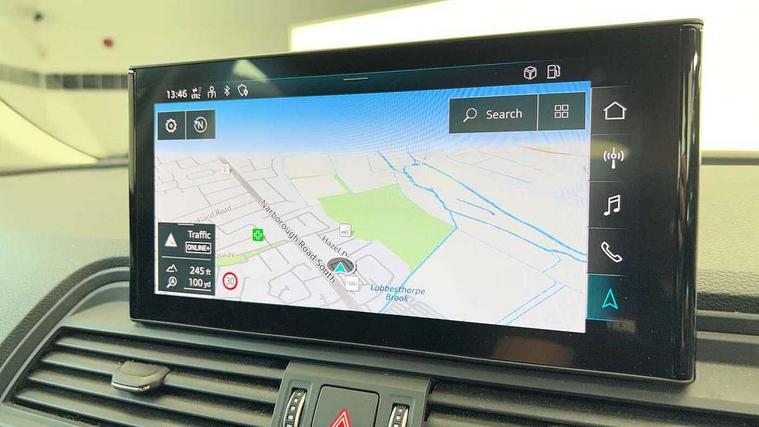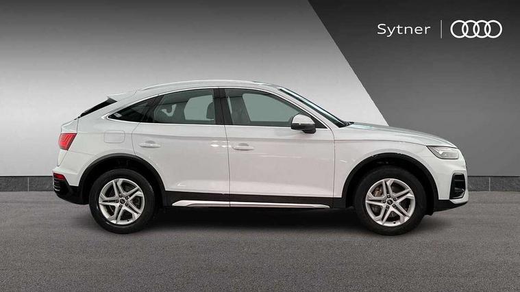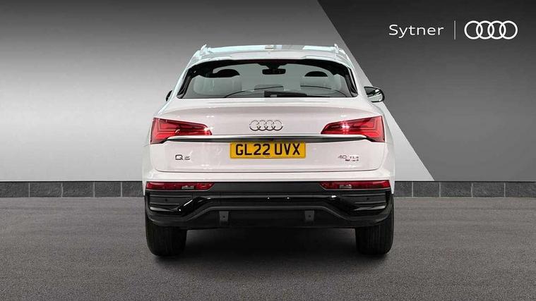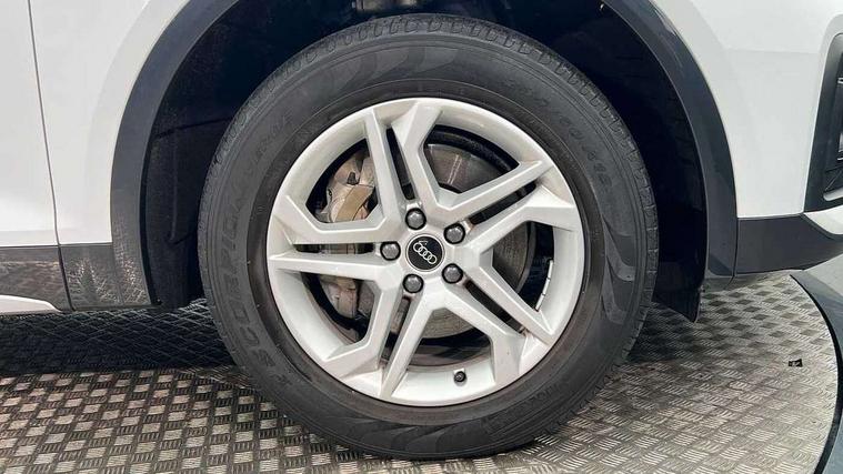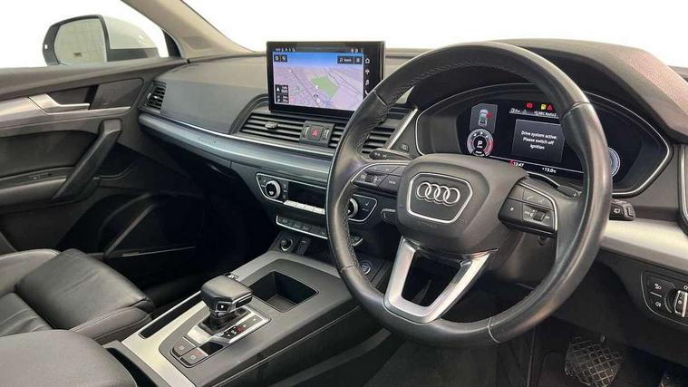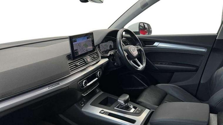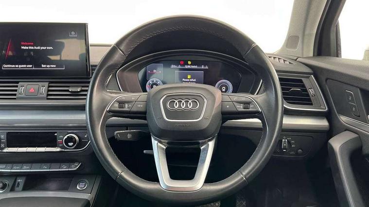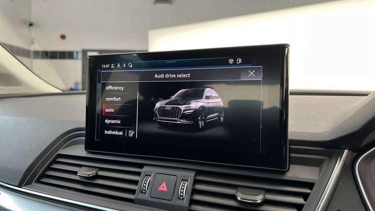 Audi connect safety and service (e-call), Audi connect with Amazon Alexa Integration, Audi drive select, Audi virtual cockpit plus with 12.3" screen and three different layout designs, Audi wireless smartphone interface, Automatic start-stop system with coasting functionality and efficiency programme, Bluetooth interface, Cruise control + speed limiter, Electro - mechanical power assisted steering, MMI navigation plus with 10.1" touch screen, Power tailgate, Reversing camera, Service interval indicator, Voice control system with Audi hotword activation "Hey Audi", Diesel particulate filter, Dynamic suspension, Quattro on demand, DAB Digital radio, Acoustic windscreen, Air inlets in matt titanium black with blades in matt aluminium silver, Aluminium roof rails, Auto dimming door mirrors, Auto dimming rear view mirror, Automatic headlights and windscreen wipers, Body colour door mirrors, Chrome plated exhaust trims, Daytime running lights, Door sills in Selenite silver, Electric adjustable/heated/folding door mirrors, Front and rear electric windows, High level LED brake light, LED headlights and LED tail lights, Lower bumpers painted in contrast Manhattan grey, Matt selenite silver underbody protection, Matt twilight grey radiator grille with chrome vertical struts, Rear chrome trim strip below lights, Rear diffuser strip in selenite silver, Rear side wing doors, Rear spoiler, Rear wiper, Roof bars, 2 x USB charging port with aux input socket, 3 rear headrests, 3 spoke multifunction leather steering wheel with shift paddles, 40:20:40 split folding 3 rear bench seat in 2nd row with rear centre armrest, Comfort front centre armrest, Deluxe 3 zone electronic climate control, Door sills trims with aluminium inlays, Front head restraints, Front/rear floor mats, Heated front seats, Height/reach adjustable steering column, ISOFIX child seat mounting and top tether, Manual seat adjustment with 4-way electric lumbar support, Removable luggage compartment floor, Silver cloth headlining, Single front passenger seat, Sunvisors with vanity mirrors, Trunk roller cover, Twin leather upholstery + front sports seats, High gloss pack - Q5, LED interior light pack - Q5, 3 point seatbelts on all seats, 6 airbags - Driver, front passenger, curtain and side airbags, Electrically operated child locks on rear doors, Electromechanical parking brake, Electronic stabilisation control including ABS, ASR and EDL, Front passenger airbag deactivation, Hill descent control, Hill hold assist, Multi collision brake assist, Pop-up bonnet for pedestrian protection, Pre sense city, Seat belt force limiter, Seatbelt monitoring, Tyre pressure warning, Warning triangle and first aid kit, Anti theft alarm, Anti-theft wheel bolts, Keyless Go access/ignition system, Remote central locking, Aluminium rhombus inlay,