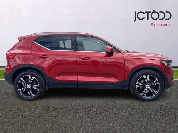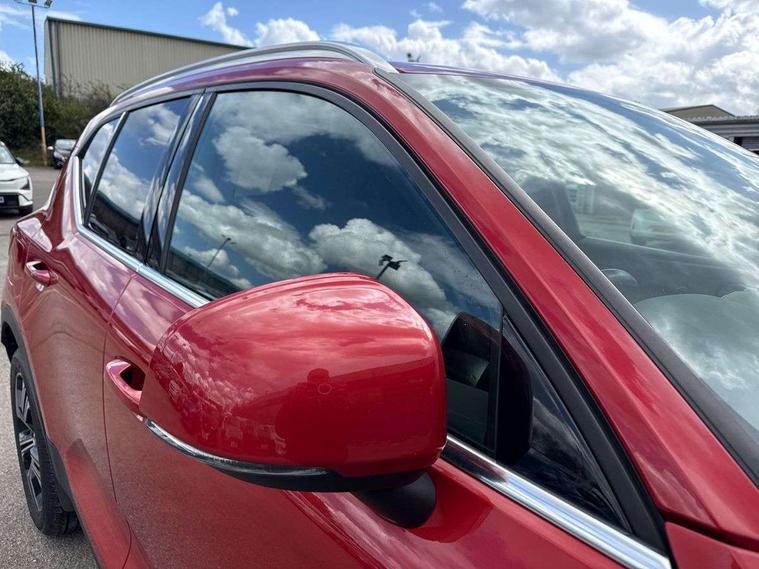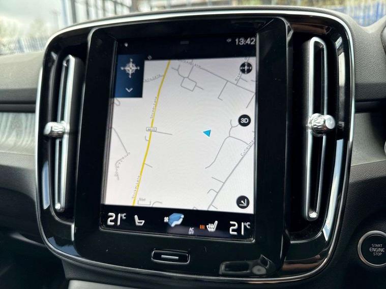 12.3" Active TFT crystal driver's instrument display, 9" centre console portrait touch screen, Adjustable steering wheel force, Bluetooth hands free telephone kit, Drive mode selector, Lane keep assist with driver alert control, Oncoming Lane Mitigation, Sensus navigation with European mapping and traffic information, Speed limiter, Speed sensitive steering, Voice activated control for key functions, Volvo on call, Dynamic chassis, DAB Digital radio, Steering wheel mounted remote controls, Active bending headlights, Adaptive brake lights with high level LED brake lights, Auto dimming interior mirror, Automatic headlamp levelling, Chrome window surround, Colour coordinated auto folding and heated power door mirrors, Dual exhaust pipes, Front aluminium tread plates, Front and rear electric windows, High gloss black front grille with chrome inserts, High gloss black sensus surround deco, High Gloss silver front and rear skid plate, Home safe and approach lighting, LED front fog lights with static cornering light function, LED Headlights + Active high beam incorporating daytime running lights, Rain sensor with automatic windscreen wiper activation, Rear side wing doors, Rear wiper, Roof antenna, Roof spoiler, Silver roof rails, Visible VIN plate, 12V socket in front tunnel console and cargo compartment, 2 zone electronic climate control and rear air vent, 3 seat bench in 2nd row, 3 spoke leather steering wheel with chrome trim, 60/40 split folding rear seat, Ambient front door and instrumental panel lighting, Bright metal luggage threshold, Centre console cupholders and storage, Driver's side lower dashboard credit card storage compartment, Front door pocket and front cupholder illumination, Front footwell illumination, Front headrests, Front reading light and theatre lighting, Front tunnel net pocket and integrated waste bin, Glovebox bag hook, Height/reach adjustable steering column, High gloss centre tunnel deco, Illuminated glovebox, Illuminated luggage compartment, Illuminated tailgate, Illuminated vanity mirrors, Isofix attachments on rear seats, Key integrated remote, Leather faced upholstery, Load protection net, Luxury floor mats, Multi directional lumbar support, Multicolour theatre lights, Orrefors Crystal Gear Lever Knob, Rear armrest / integral cup holders / storage tray, Rear coat hook, Rear reading and courtesy lights, Single front passenger seat, Underfloor cargo storage, Power seat pack - XC40, 3x3 point rear seatbelts, City safety includes pedestrian, cyclist and large animal detection and front collision warning with full auto brake, Drivers knee airbag, Dual stage driver/passenger airbags, Electronic parking brake with auto hold, First aid kit, Front and outer rear seatbelt reminder and pretensioners, Front seats SIPS airbags, Hill descent control, Hill start assist, Inflatable curtain, Passenger airbag cut-off device, Road sign information display, Run off Road Mitigation, Run off Road Protection, SIPS (Side Impact Protection System), Slippery road and hazard light alert, Stability and Traction Control with Spin control, Engine Drag Control and Corner Traction Control, Tyre pressure monitoring system, Vehicle deceleration control with Anti-lock Brake System, Electronic Brake Distribution and Emergency Brake Assist, Warning triangle, WHIPS whiplash protection system - front, Anti-theft alarm including immobiliser/volume sensor + level sensor, Care key with user defined top speed, Key integrated remote control central locking + fuel flap with deadlocking system and auto open/close power windows, Locking wheel nuts, Private locking for tailgate, Driftwood inlays,
