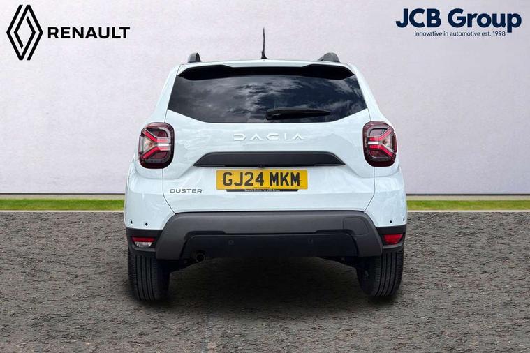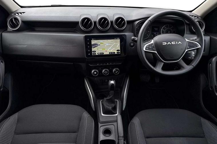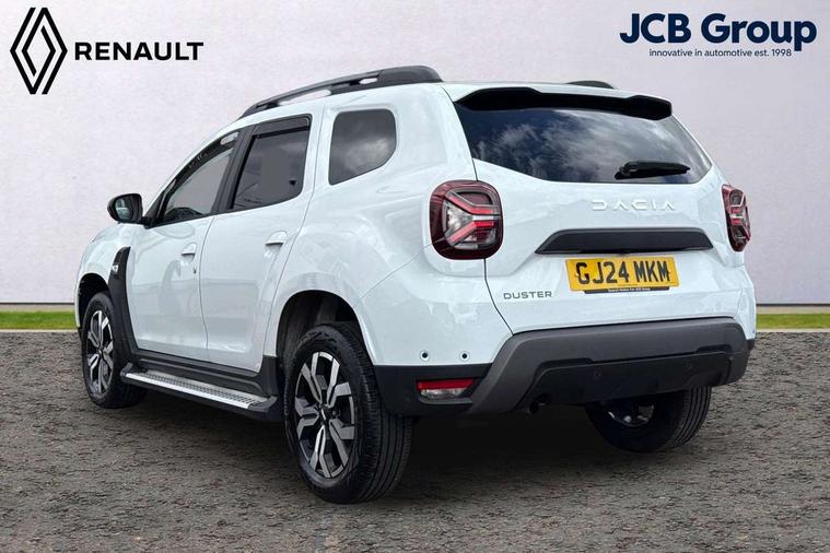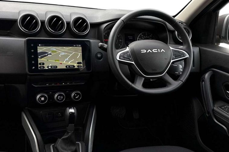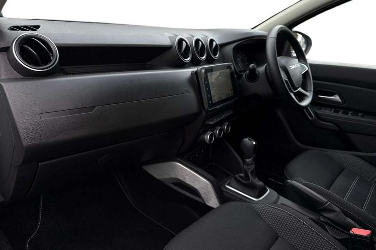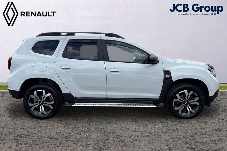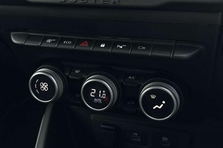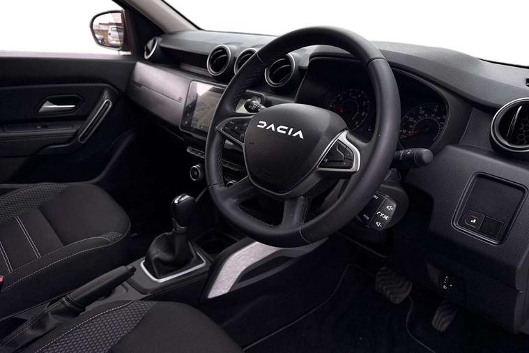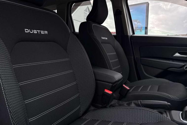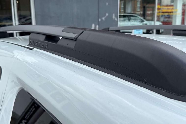 Blind spot warning, Cruise control and speed limiter, eCall emergency system, Eco mode, Electric power assisted steering, Multi view camera, On board computer, odometer, trip computer, average fuel consumption, average speed, service indicator, outside temperature gauge, Rear parking sensors, Rev counter, Reversing camera, Stop/start system, 8" Media Navigation with wireless smartphone replication, Dacia plug and radio/MP3/USB/bluetooth/DAB/steering wheel control, 3 speed windscreen wipers, Acoustic windshield, Automatic front wipers, Black side sills, Black/satin chrome tailgate trim with Duster inscription in black background and lettering, Body coloured door handles, Chrome front grille with hot stamping, Chrome logo surround on steering wheel, Dark glass on lateral rear windows, Daytime running lights, Drivers window one touch up/down, Dusk sensor, Electric adjustable/heated door mirrors, Electric folding door mirrors, Electric front windows, Electric rear windows, Front and rear body coloured bumpers, Front door sill protection strip, Front fog lights, Grey quartz longitudinal roof bars with Duster inscription, Heated rear window, High level third rear brake light, Modular roof bars, Rain sensor, Rear side wing doors, Rear spoiler, Rear wash/wipe, Satin chrome door mirrors, Underbody protection skid plates, Y shaped LED headlights with rear LED lights, 3 rear height adjustable headrests, 3 seat bench in 2nd row, 60/40 split folding rear seat, Automatic air conditioning, Backlighted steering wheel buttons, Boot light, Driver seat lumbar adjustment, Fabric decorative insert on door panels, Fabric upholstery, Front head restraints, Front passenger reading light, Gear shift indicator, Glovebox light, Heated seats, Height adjustable driver seat, Height adjustable front and rear headrests, Height and depth adjustable steering wheel, High centre console with driver armrest, Isofix points for child seats in both outer rear seats, Map pocket on front seat backs, Passenger sunvisor with vanity mirror, Rear passenger reading light, Satin chrome gear lever cap insert, Satin chrome interior door handles, Satin chrome lower steering wheel insert, Single front passenger seat, Soft feel leather steering wheel, 3x3 point rear seatbelts, ABS and Emergency brake assist, ASR traction control with Electronic stability control, Child locks on rear doors, Door open visual and audible warning, Driver airbag, Driver and passenger seatbelt not fastened - visual and audible warning, EBD - Electronic brakeforce distribution, Front passenger airbag, Front passenger airbag deactivation, Front seatbelt pretensioners, Front side airbags, Height adjustable front seatbelts, Hill start assist, Tyre pressure monitor, Keyless entry, Remote central locking, Thatcham approved engine immobiliser, Charcoal grey central console surround, Matt black central console fascia, Matt black decorative insert on rear door panels, Piano black decorative insert on front door panels, Satin chrome air vent surround, Satin chrome instrument dial surrounds, 17" Alloy wheels,