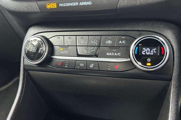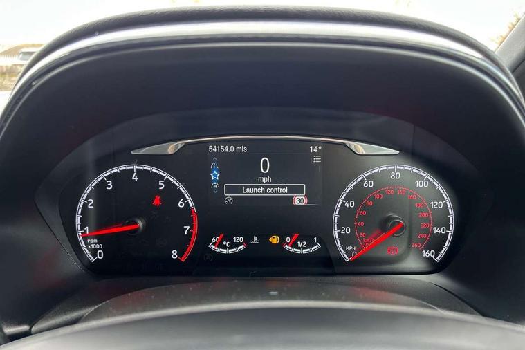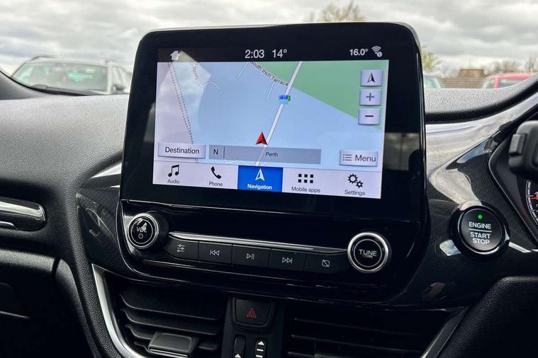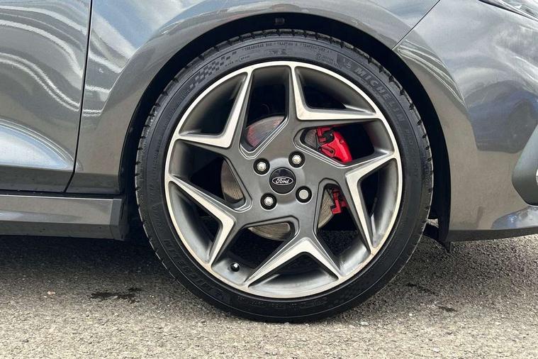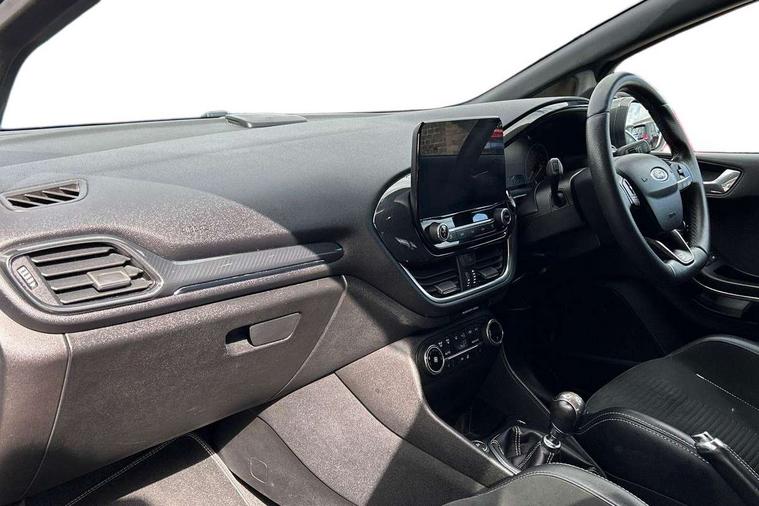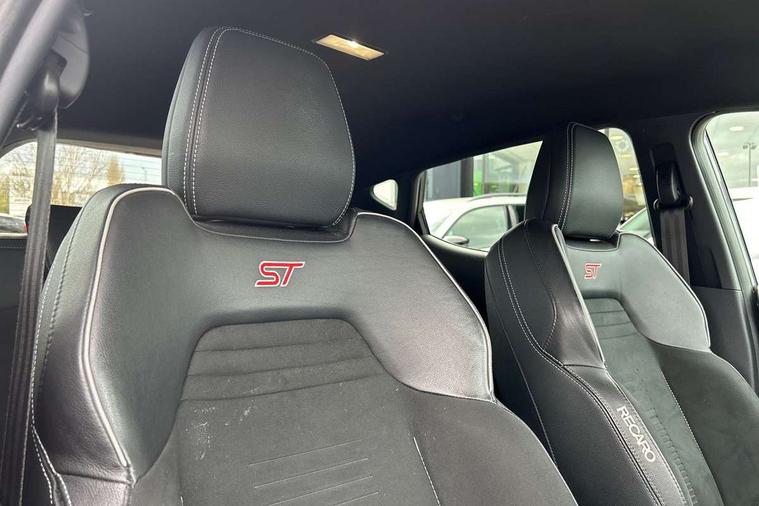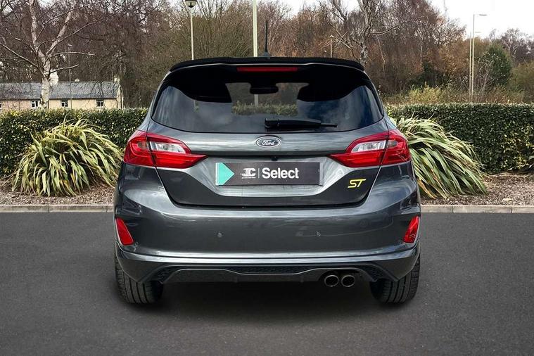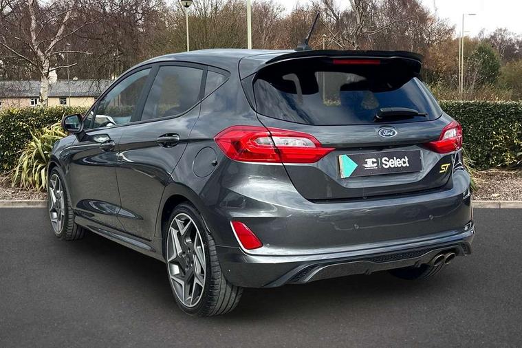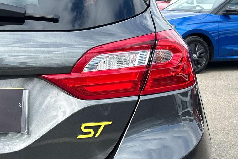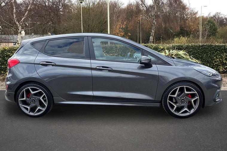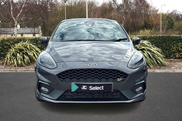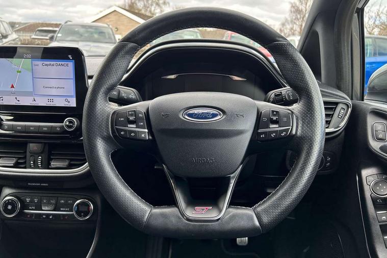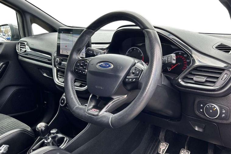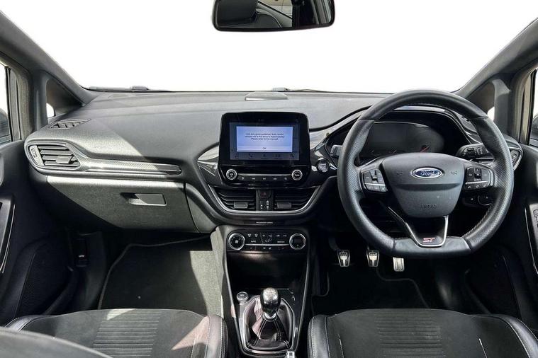Bluetooth system, Cruise control, Drive mode selector, Electric power steering, Ford easy fuel, Trip computer, Sports suspension, 2 USB ports, Auxiliary input socket, Steering wheel mounted controls, USB connection, Auto dimming rear view mirror, Automatic headlights, Body colour bumpers, Body colour door handles, Body colour electric adjustable heated door mirrors with integral indicators, Body colour large rear spoiler, Chrome lower window surround, Cornering front fog lights, Electric front windows/one touch facility, Electric rear windows, LED Night signature to rear lights, LED rear lights, Power foldable door mirrors with puddle lights, Quickclear heated windscreen, Rain sensing wipers and auto dimming rear view mirror, Rear privacy glass, Rear wiper, Rugged body styling kit with active front wing badges, Tinted glass, Unique ST-Line upper grille & full bodystyling kit with ST-Line wing badges, 12V Accessory socket in centre console, 3 spoke flat bottomed leather steering wheel with red stitching, 60/40 split folding rear seat, Adjustable head restraints, Ambient lighting, Black headlining, Boot carpet, Centre console with armrest and illuminated cupholders, Chrome inner door handles, Driver's lumbar support, EATC - Electronic Auto Temperature control, Floor mats with grey stitching, Footwell illumination, Front map reading lights, Front seat and rear pockets, Heated front seats, Heated steering wheel, Illuminated glovebox, Leather gear knob, Leather trimmed handbrake handle, Load area light, Overhead console with sunglasses holder, Passenger seat lumbar adjust, Pollen filter, Rake/reach adjustable steering wheel, Rear centre head restraint, Recaro part leather front sports seats, Recaro sports front seats, Sports pedals, Driver assistance pack - ST2/ST3/ST Performance Edition, NCAP Pack - Fiesta, Rear view camera pack - Fiesta, 3 point seatbelts on all rear seats, ABS+EBA, Curtain airbags, Driver and passenger airbags, Drivers knee airbag, Electronic stability control with hill start assist, Front passenger airbag deactivation, Front side airbags, Red brake calipers, Seatbelt warning, Tyre pressure monitoring system, Keyless entry and keyless start, MyKey system, Remote central locking & engine immobiliser, Thatcham Cat.1 alarm, 18" 5 spoke alloy wheels with Magnetic machined finish,