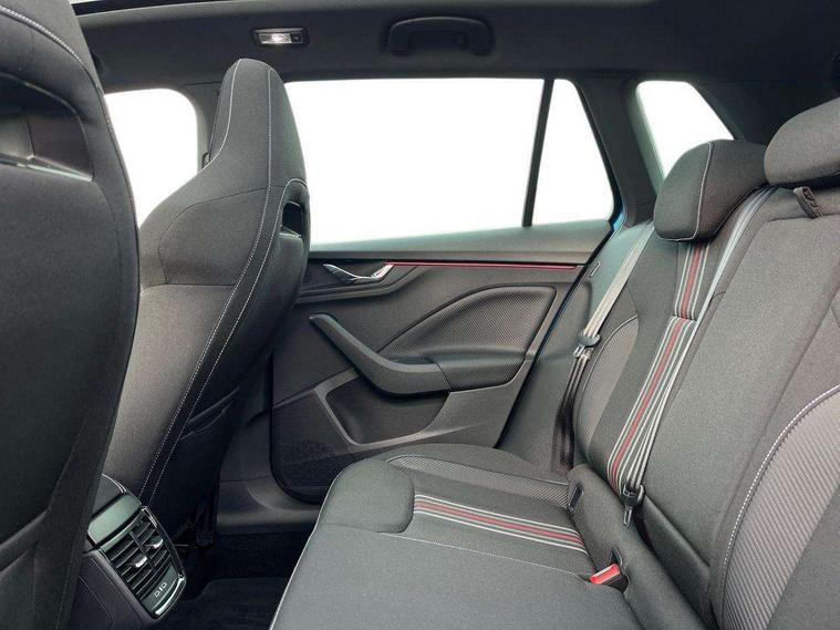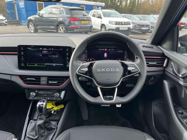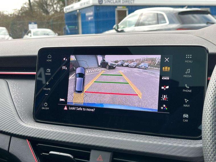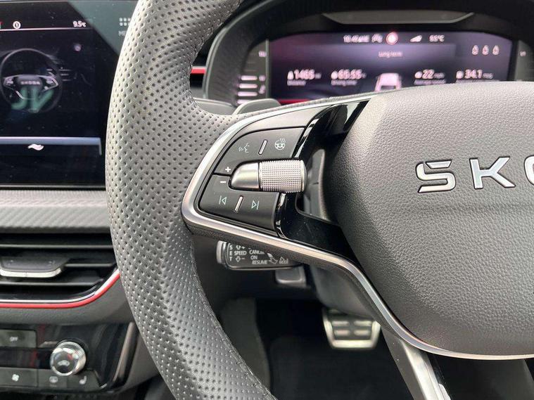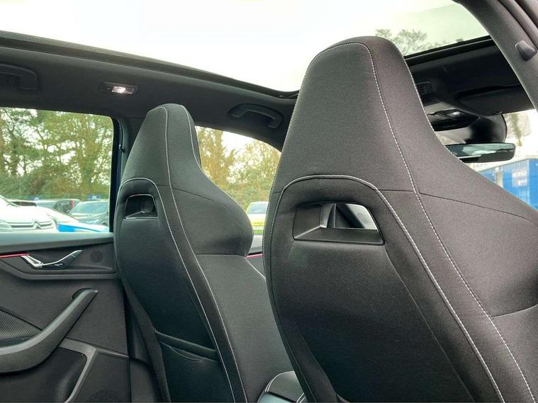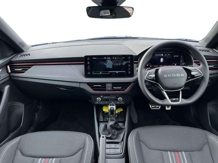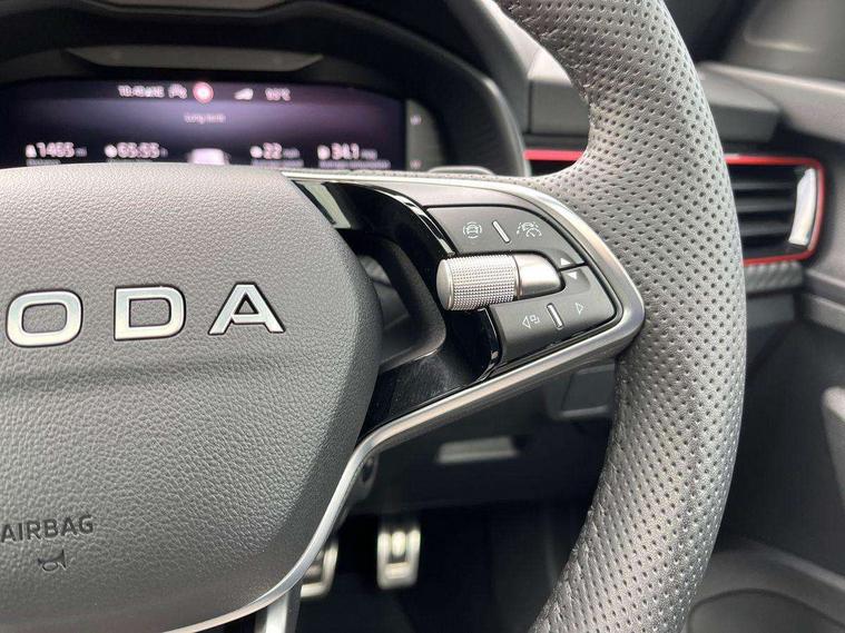 Advanced driver attention and drowsiness monitor, Bluetooth system, E-call, Front assist system, PAS, Rear parking sensors, Rear view camera, Service indicator, Speed limiter, Traffic sign recognition, Virtual cockpit with 10.25" display, Voice control system, Wireless smartlink, 4 USB C ports, 8 Speakers, 9.2" Skoda navigation display, DAB Digital radio, Auto dimming rear view mirror, Automatic headlight control with coming home and leaving home feature, Black door mirrors, Black radiator grille, Black rear diffuser, Black roof spoiler, Body colour bumpers, Body colour door handles, Boot lettering in black, Extended tailgate glass, Fixed panoramic sunroof with black roof rails, Front and rear electric windows, Heated rear window, LED daytime running lights, LED high beam, LED low beam, LED third brake light, Light sensors, Monte carlo plaque, Privacy glass, Rear side wing doors, Rear wiper, Ticket holder inside windscreen, 12V socket in luggage compartment, 3 seat bench in 2nd row, Aluminium pedals, Ambient lighting in white/red, Art leather carbon decor inserts, Art leather carbon door inserts, Black roof lining, Cargo elements, Chrome inner door handles, Driver and passenger sun visors with vanity mirror, Dual zone climate control, Front and rear roof lights, Front centre armrest, Front head restraints, Glove compartment with illumination, Height adjustable driver seat, Height adjustable front passenger seat, Ice scraper, Inner circulation control with pollen filter, ISOFIX on front passenger seat, Isofix preparation for back seats, Leather gearknob and handbrake lever, Manual lumbar support for front seats, Monte Carlo cloth upholstery, Net package and top tether hooks in boot space, Net under rear shelf, Pocket on the back of both front seats include mobile phone pockets, Rake/reach adjustable steering wheel, Reading lights, Rear centre armrests, Red hotstamping, Single front passenger seat, Sports seats, Textile floor mats, Third rear headrest, Top tether for front passenger seat, Umbrella in driver's door, Light and view plus package - Kamiq, 3x3 point rear seatbelts, Airbags - driver and front passenger, Disc brakes, ESP, Extended and predictive pedestrian/cyclist protection, Front passenger airbag deactivation switch, Front side airbags with curtain airbags, Hill hold control, Manual leather parking brake, Manual rear child locks, One tone horn, Seatbelt reminder for driver an co-driver, Traction control, Tyre pressure monitor, Anti-theft alarm system with interior monitoring, backup horn, towing protection and remote central locking with SAFE system, Anti-theft wheel bolts, Electronic engine immobilizer, 18" Ursa black diamond cut alloy wheels,