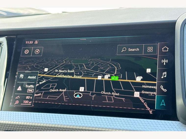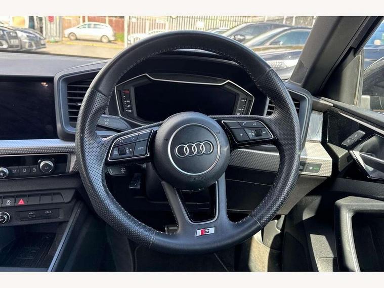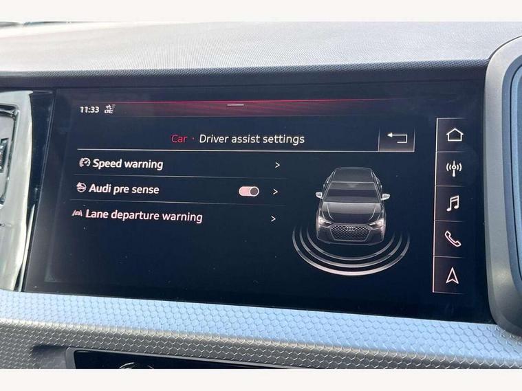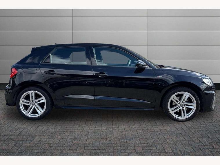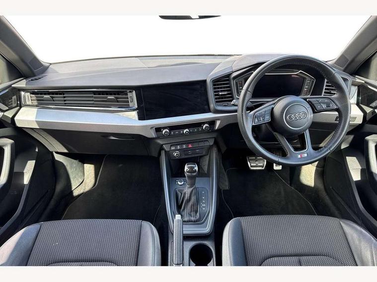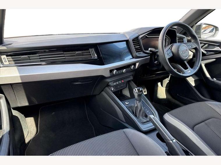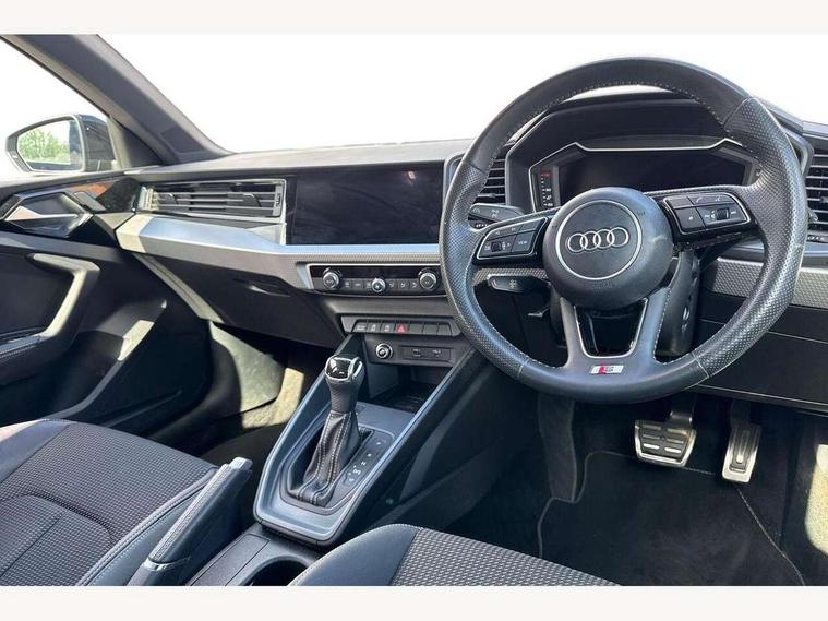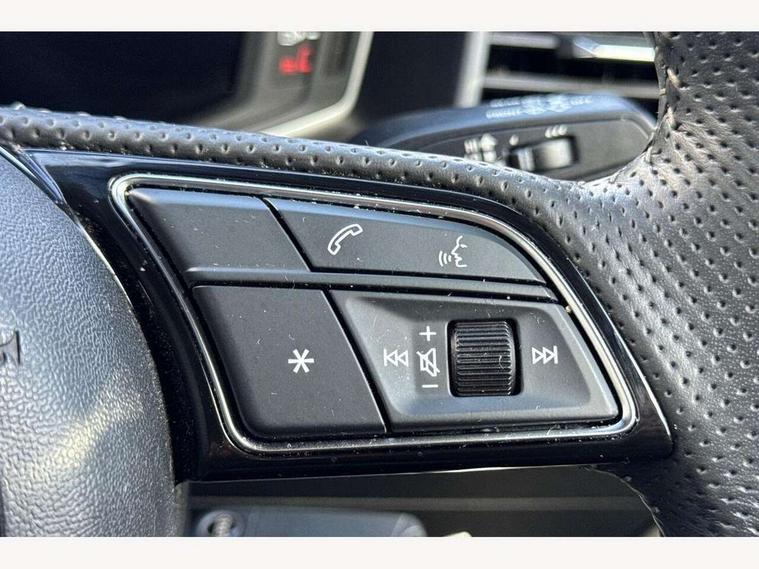 10.25" Digital instrument cluster display screen, Audi connect safety emergency and service including E-call, Audi drive select, Audi smartphone interface, Automatic start/stop system, Bluetooth interface, Driver's information system, Electromechanical power steering, Lane departure warning system, Service interval indicator, Speed limiter, Voice control system, Washer fluid level indicator, Sports suspension, 1 x SDXC card reader, 1 x USB type C and 1 USB type A charging points, Audi music interface, Bluetooth audio streaming, DAB Digital radio, MMI radio plus with 8.8" colour MMI display screen and MMI touch, Auto dimming rear view mirror, Body colour side sill mouldings, Body coloured bumpers, Body coloured door mirrors, Door sills with aluminium inlays and S Line logo, Electric front and rear windows, Front side air inlets in grained matt black and C frame in titanium black, Heat insulating glass windscreen and side windows, Heated rear windscreen, LED headlights with LED rear lights + dynamic rear indicators, Matt aluminium silver tailpipe trim, Matt black radiator grille frame, Matt platinum grey in front spoiler clip and rear diffuser clip, Rain and light sensors, Rear fog lights, Rear wiper, S line badges on front wings, S line exterior bumpers, S line roof spoiler, Side air inlet frames titanium black, Side front spoiler lips in grained matt black, 12V socket in centre console with two cup holders, 3 rear seats, Black cloth headlining, Driver and passenger seat with manual height adjust with forward and backwards adjustment, Front and rear black floor mats with contrast stitching in fine silver, Front head restraints, Height and reach adjustable steering wheel, ISOFIX child seat mounting in front passenger and rear outer seats, Leather gear knob with aluminium trim, Leatherette handbrake grip, Luggage compartment light with front and rear reading lights, Lumbar adjustment for front seats, Rear head restraints, Split folding rear seats, Stainless steel pedals, 3x3 point rear seatbelts, Audi pre-sense front with pedestrain and cyclist recognition, Brake assist function, Driver and front passenger airbag with front side and head airbags, Electronic Stability Control including ABS, EBD, ASR and EDL, Front and rear seatbelt reminder, Front passenger airbag deactivation switch, Hill hold assist, Seatbelt height adjustment for front seats, Seatbelt monitoring, Tyre pressure warning light, Warning triangle and first aid kit, Anti theft alarm, Anti theft wheel bolts and loose wheel warning, Immobiliser, Remote central locking with 2 remote folding keys, Aluminium trim for control switches, air vents and digital instrument cluster, Silver grey inlays polygon structure in diamond paint finish, Structured grey accent areas including air vents, door handle recesses and centre console in quartz paint finish,