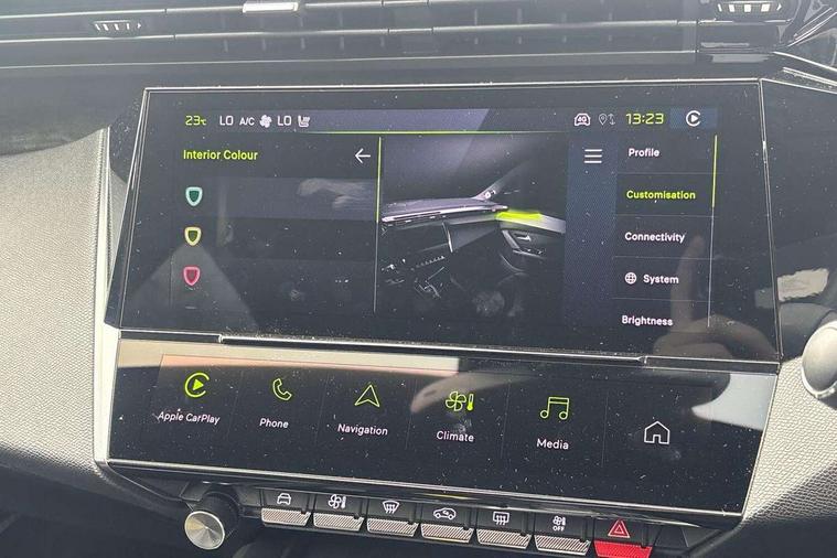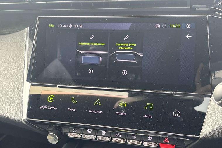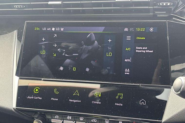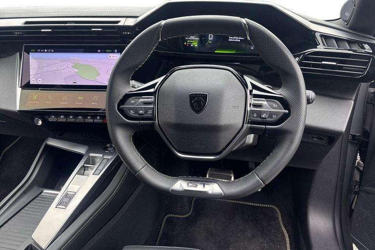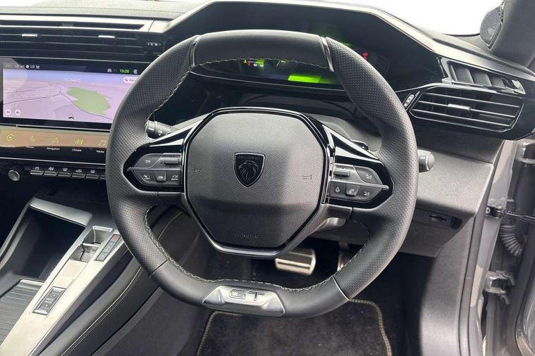Bluetooth telephone facility, Compact drive selector, Driver attention warning, Emergency call service, Exterior temperature indicator with ice warning, Front and rear parking sensors, Intelligent speed adaptation, Lane keep assist, Mirror screen with wireless apple carplay and android auto, Multi driving mode selector - Eco / Normal / Sport mode selector, Multi function trip computer, Peugeot connect advanced with connected 3D navigation, PEUGEOT i-Cockpit - compact steering wheel, 10" HD colour touchscreen with configurable 3D headup instrument panel, Service interval indicator, Speed limit recognition and recommendation, Sport pedals with foot rest, DAB Digital radio, Peugeot customisable iToggles, Voice recognition for radio, navigation and telephony features, 2 X LED rear number plate lights, Acoustic and tinted windscreen, Acoustic laminated front side windows, Automatic hazard light activation upon heavy brake application, Automatic triggered rear windscreen wiper in reverse gear, Body colour door handles, Body colour rear roof spoiler, Dark chrome chequered radiator grille, Dark tinted rear side and tailgate windows, Electric operated/heated door mirrors, Extended lower body sills to the front and side, Framed electrochromatic rear view mirror, Front and rear electric windows with one touch/anti pinch, Full LED matrix headlights with automatic adjustment, Gloss black finish B pillar, Gloss black rear cluster connecting strip, GT model designation badging on tailgate, High beam assist, LED 3rd brake light, LED side indicator lights integrated into door mirrors, Lion emblem badging on front wings, Model designation badges on front and rear, Nera black door mirrors, Peugeot aluminium door sills, Peugeot signature LED daytime running lights, Power folding door mirrors, Rear full LED 3D Peugeot new claw effect lights with sequential welcome sequence upon unlocking the vehicle, Rear lower bumper gloss black diffuser effect trim, Rear reversing lights, Rear side wing doors, Tailgate with heated rear windscreen and wiper blade, Twin exhaust pipes with chrome surround, 1/3 to 2/3 split folding rear seats, 12V socket, 2 front USB socket including 1 USB type c, 3 seat bench in 2nd row, 8 Colour personalisable ambient lighting, Automatic air conditioning with AQS 3, Belomka tri-material woven cloth with Isabella leather effect upholstery, Carpet mats, Central front armrest with storage compartment, Dynamic front seats, Electric power steering with reach and rake adjustable steering column, Front central console with two cup holders, LED Glovebox light, Manual driving mode - change gear manually via steering mounted paddles, Multifunction full grain leather steering wheel with admite green stitching & GT badging, Piano keys gloss black plated toggle switches to access main functions of the vehicle, Roof lining - Mistral black, Seatbelt unfastened on the move audible and visual alert for front and rear seats, Single front passenger seat, Ski hatch with central rear armrest with cup holder, Sunvisor with concealable mirrors and LED lighting, Twin USB charging ports in the rear (Type C), Driver sport pack with sports power steering - 308, Visibility pack with automatic magic wash windscreen wipers - 308, 2x Isofix child seat fitting on outer rear seats, 3x Rear three-point retractable seatbelts with force limiters in the outer rear seats, ABS + EBD + EBA, Active safety brake with night function/cyclists/pedestrians, Adaptive driver and front passenger airbags with passenger airbag deactivation function, Automatic post collision braking, Child locks on rear doors, Driver/front passenger side airbags, Electronic parking brake, ESP, Front and rear curtain airbags, Front optimised safety headrests and rear retractable headrests (x3), height adjustable, Front three point retractable seatbelts with force limiters, Front/rear disc brakes, Hill start assist, Tyre pressure sensor, Automatic door locking when moving off, Deadlocking system, Electronic code immobiliser, Locking wheel nuts, PEUGEOT Open and Go keyless entry system, Thatcham cat. 1 alarm with anti lift sensor,