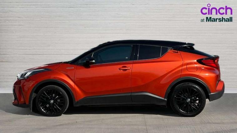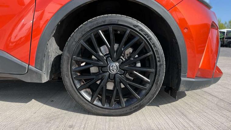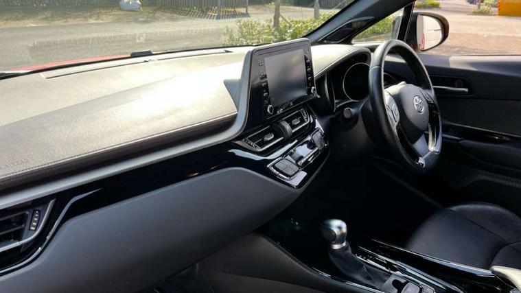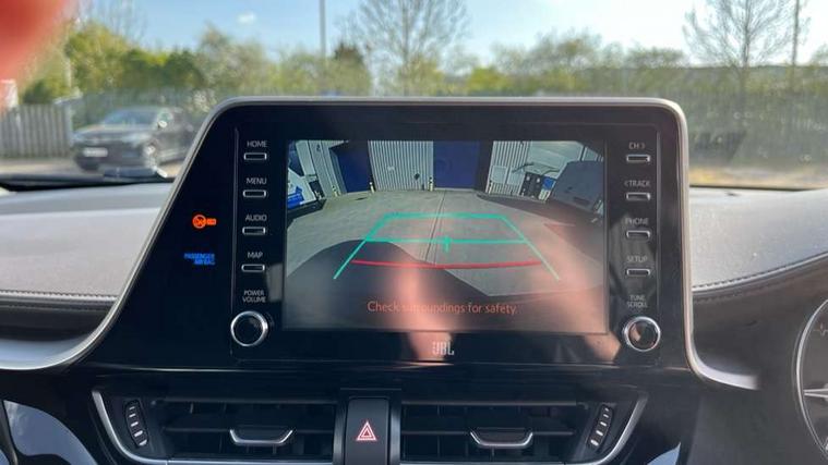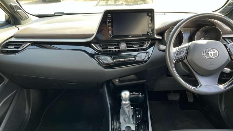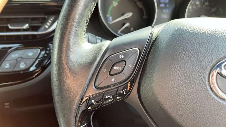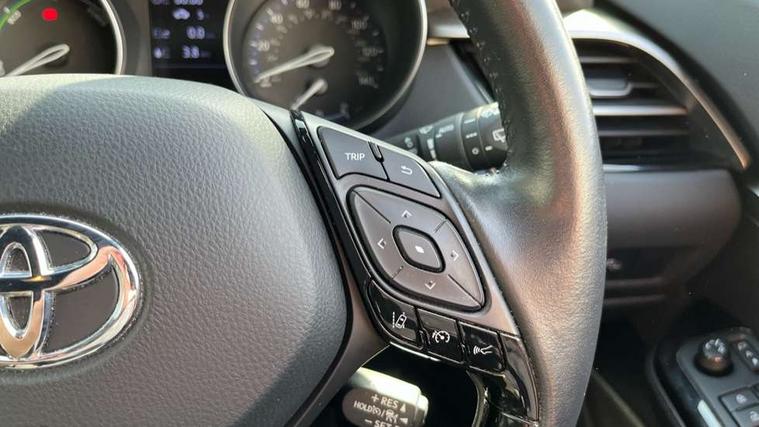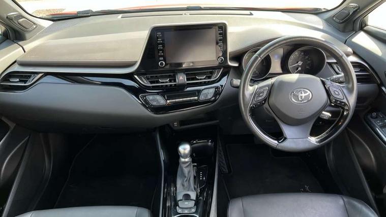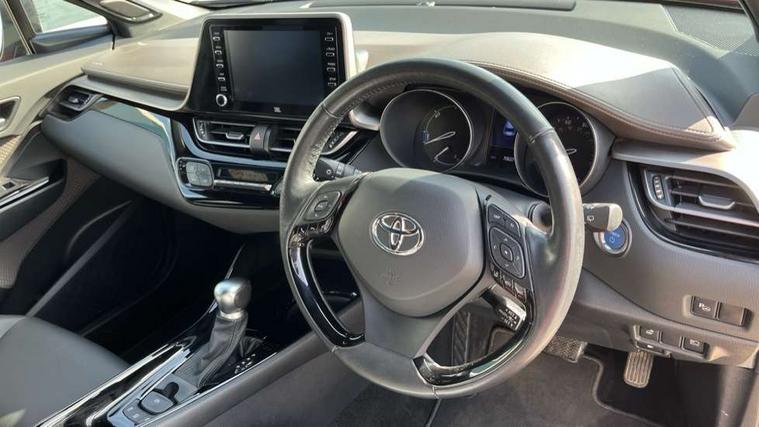4.2" coloured TFT screen for multi-information display, Adaptive cruise control, Bluetooth connectivity, Electric power steering, Hybrid system indicator, Lane departure alert with steering control, Remote boot door release in cabin, Remote boot door release in key, Reversing camera, Road sign assist - RSA, Simple Intelligent parking assist, Touch 2 Go navigation system, Trip computer, Voice recognition, Vehicle Stability Control (VSC), Aux connectors + 12V front outlet, DAB Radio (Digital Audio Broadcasting), JBL premium sound system with 9 speakers, Toyota touch 2 multimedia system with 8" display, USB connector integrated with radio and CD player, Wi-fi connectivity, Adaptive front light system, Adaptive LED Headlights, Anti-jam protection on power windows, Auto high beam, Auto up and down function on all power windows, Automatic headlight levelling, Automatic headlights, Automatic headlights cut-off, Automatic wipers with heated folding mirrors, Bi-tone black roof, Black and body coloured rear bumper, Black front bumper, Black upper front grille, Body colour door handles, Body colour door mirrors, Boot door release with push button, Electric heated door mirrors, Follow me home headlights, Front and rear power windows, Front spoiler, Honeycomb lower front grille, LED daytime running lights, LED fog lights, LED front light guide, LED High mounted stop light, LED rear brake lights, LED rear combination lights, Metallic paint, Noise reduction layer on front windows and windscreen, Power adjustable door mirrors, Privacy glass, Rear spoiler, Rear tailgate, Rear window defogger, Rear window wiper, Shark fin antenna, UV-filter on driver and passenger windows, UV-filter on rear windows, 12v power outlet - front, 3 rear headrests, 3 spoke leather steering wheel, 60/40 split folding rear seat, Adjustable rear headrests, Adjustable speed limiter switch on steering wheel, Assist grips front and centre pillar, Audio and telephone switches on steering wheel, Black front door assist grips, Blue ambient lighting on front cup holders, Blue ambient lighting on front doors, Boot light, Chrome interior door handles, Driver and front passenger personal light, Driver and front passenger Whiplash Injury Lessening seats, Driver and passenger seatback pockets, Dual zone automatic air conditioning, Floor mats, Front cupholders, Front head restraints, Front sports seats, Glovebox with internal light, Hard tonneau cover, Heated driver and front passenger seats, Heated steering wheel, Hooks for luggage holding net, Humidifying Nanoe air purifier, Illuminated entry system, Isofix attachments on outer rear seats, Leather gearshift, Leather upholstery, Light on driver sun visor, Light on passenger sun visor, Manual telescopic steering wheel, Manual tilt steering wheel, Manually height adjustable front passenger seat, Manually reclining front passenger seat, Manually sliding front passenger seat, Microphone on front personal light, Mirror on driver sun visor, Mirror on passenger sun visor, Multimedia switches on steering wheel, Pollen filter, Power adjustable lumbar support on driver seat, Power height adjustable driver seat, Power reclining driver seat, Power sliding driver seat, Power tilting cushion on driver seat, Shopping bag hooks, Slow opening on lower glovebox, Voice recognition switch on steering wheel, Leather pack - C-HR, Tech with parking sensor pack - C-HR, 16 Disk front wheel brake, 3x3 point rear seatbelts, ABS+EBD+Brake assist, Electronic parking brake, ESP + traction control, Front and rear seatbelt reminder, Front passenger airbag on/off switch, Hill start assist control (HAC), Pre collision system with pedestrian detection, Pre-tensioners and force limiters, Rear door child safety locks, SRS Airbags - Driver + Front passenger, front side, front and rear curtain and driver's knee airbags, Toyota safety sense, Tyre pressure monitoring system, Glass-breaking alarm sensors, Immobiliser, Intrusion alarm, Intrusion sensor, Motion sensor alarm, Power door locks, Power passenger window lock, Remote central locking, Remote door lock, Black lower dashboard, Black lower driver dashboard, Dark brown upper dashboard, Piano black console, Silver deco line on upper dashboard, 18" Matt black alloy wheels with matt black centre cap, Tyre repair kit,