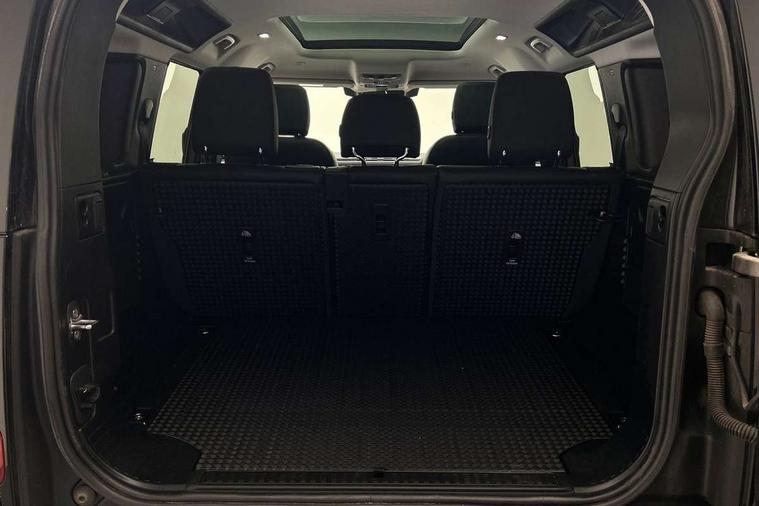 360 degree parking aid, 3D Surround Camera with 360 View, 180 Rear View, Front Traffic Detection, Forward Vehicle Guidance, Tow Hitch Assist and clear sight Ground View, Adaptive cruise control, Android Auto, Apple CarPlay, Assisted tailgate with soft close, Blind spot assist, Bluetooth system, Brake pad wear indicator, Clear exit monitor, Connected navigation pro, Driver condition monitor, Electric power assisted steering (EPAS), Interactive driver display, Lane keep assist, Push button start, Rear traffic monitor, Traffic sign recognition with adaptive speed limiter, Trip computer, Wade Sensing, 8 speed automatic transmission, All wheel drive system, Twin speed transfer box, DAB Radio (Digital Audio Broadcasting), Pivi pro connected, Automatic headlight levelling, Automatic headlights, Centre high mounted stop light, Electric heated/power fold door mirrors with approach lights and auto dimming driver side, Electric windows with one touch open/close and anti-trap, Follow me home lighting, Heated rear window with timer, Heated windscreen, LED tail lights, Puddle lights, Rain sensing windscreen wipers, Rear fog lights, Rear side wing doors, Rear wiper, Side hinged tailgate, Trailer stability assist, 12V power socket in loadspace, 3 seat bench in 2nd row, Alpine lights, Durable rubber cabin flooring, Durable rubber loadspace flooring, Footwell lights, Front passenger isofix child seat attachment, Loadspace cover, Loadspace Hook, Multifunction steering wheel, Overhead stowage for sunglasses, Premium cabin lighting, Rear headrests, Rear ISOFIX, Rear reading lights, Single front passenger seat, Standard seat configuration, Storage glovebox, Sunvisors with illuminated vanity mirrors, Online pack with data plan - Defender, 5 x 3 point seatbelts, ABS, Brake hold function, Cornering brake control (CBC), Customer configurable autolock, DSC - Dynamic Stability Control, EBD - Electronic brakeforce distribution, Electric parking brake (EPB), Emergency brake assist, Emergency braking, ESP + traction control, Front airbags with passenger seat occupant detector, HDC - Hill descent control, Hill launch assist, Low traction launch, Power operated child locks, Remote for (e-Call, Optimised assistance call, InControl app, Climate, beep and flash and door), RSC - Roll stability control, Seat belt reminder, TPMS (Tyre pressure monitoring system), Alarm, Immobiliser, Intrusion sensor, Keyless entry, Locking wheel nuts,